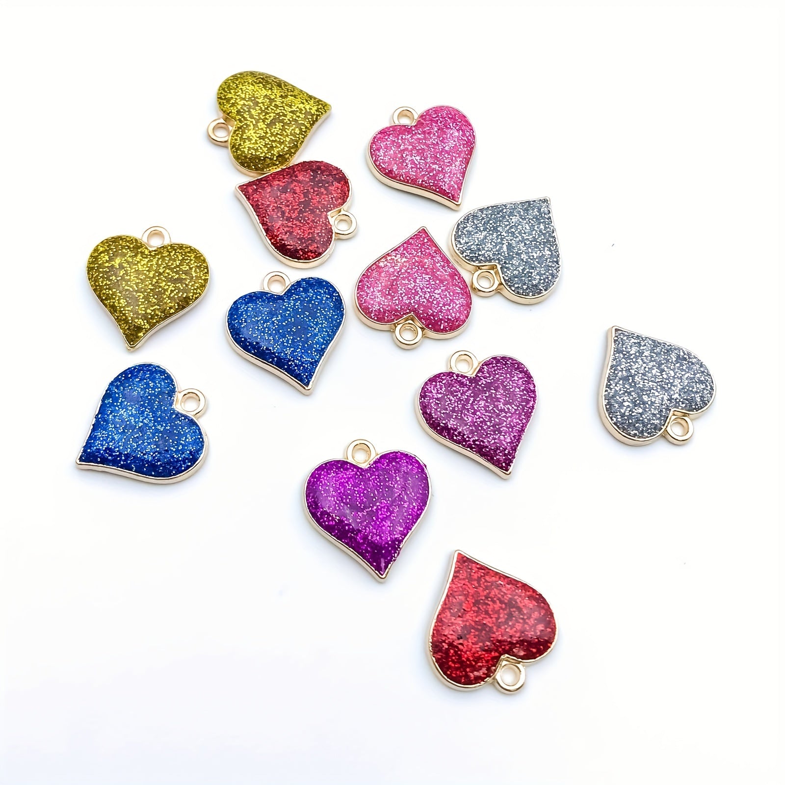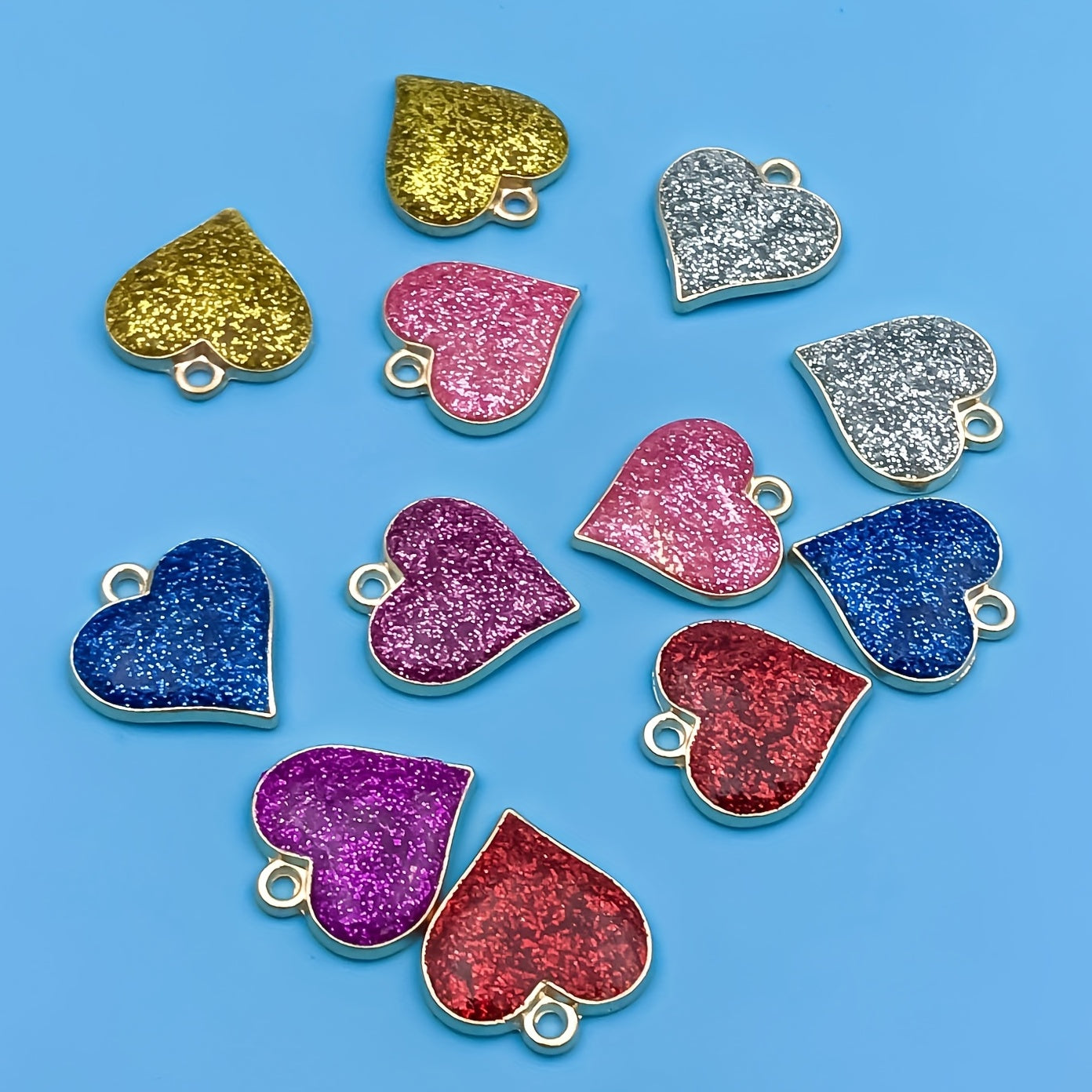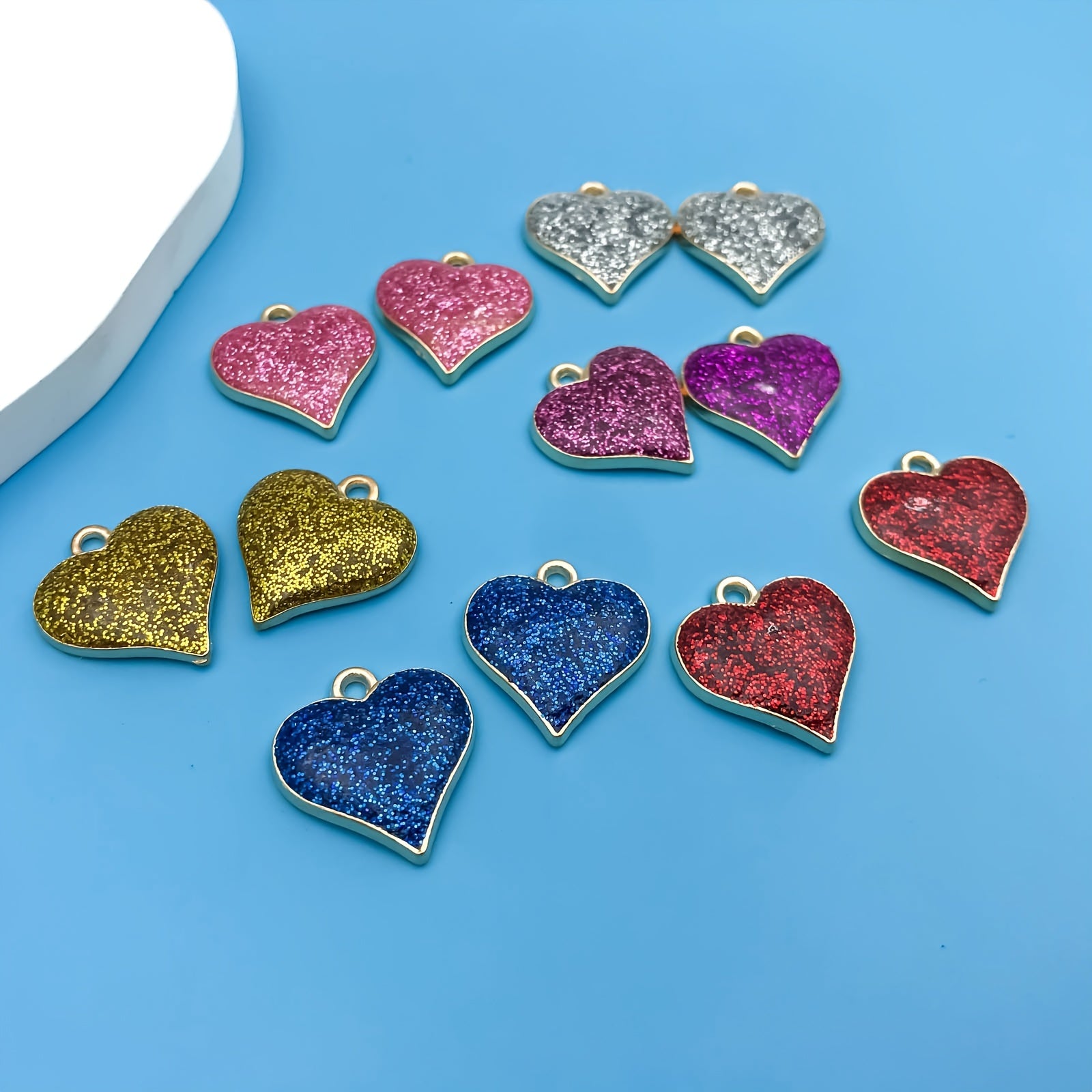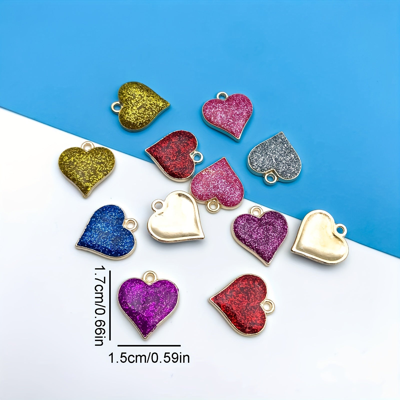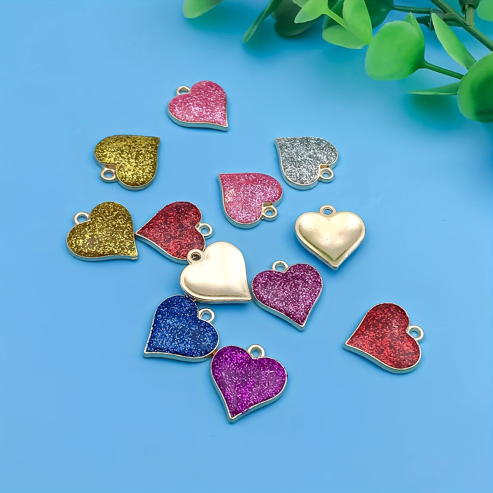 Assortment of heart-shaped zinc alloy metal charms pendants for DIY necklace, bracelet, earring and more. Perfect for creating personalized jewelry pieces.
