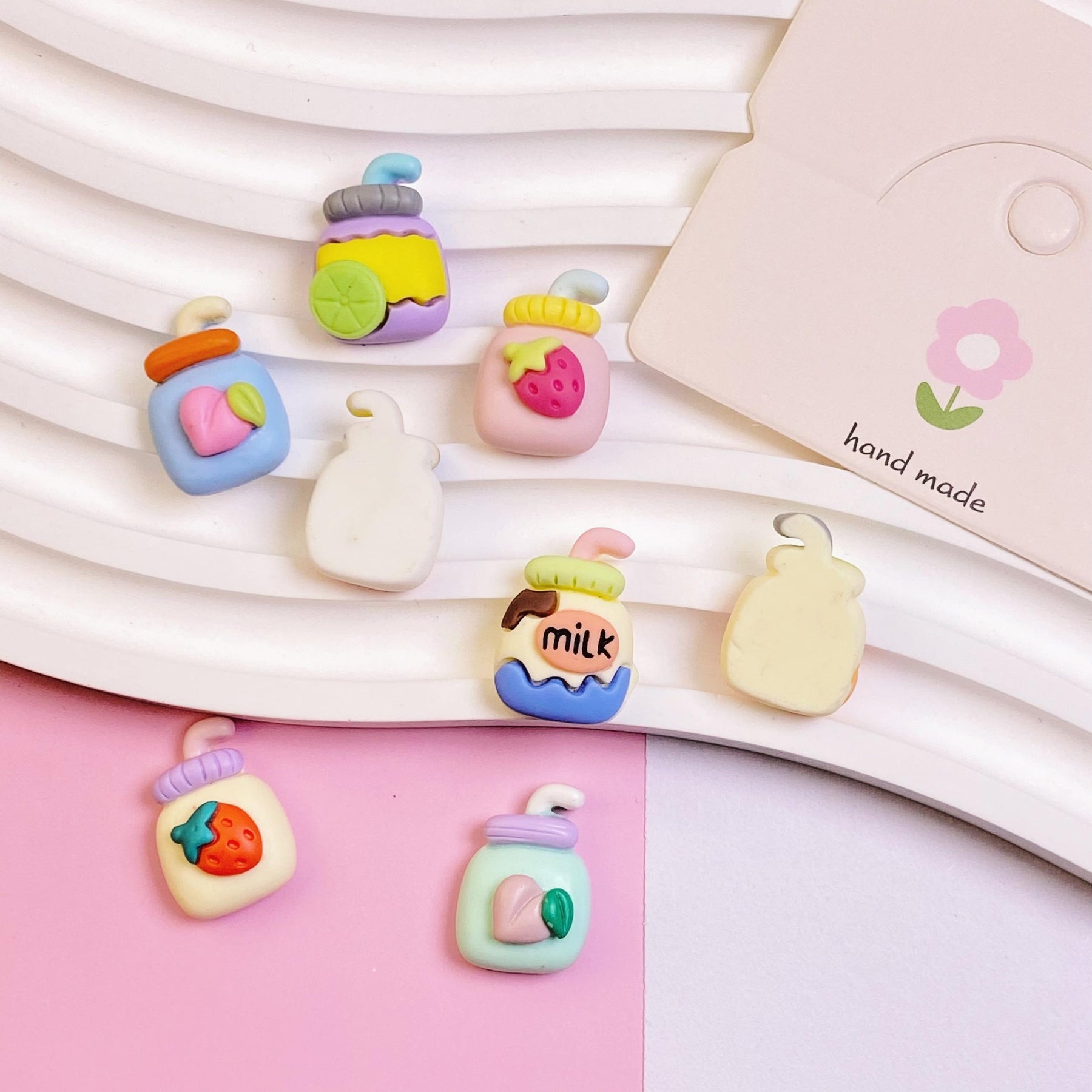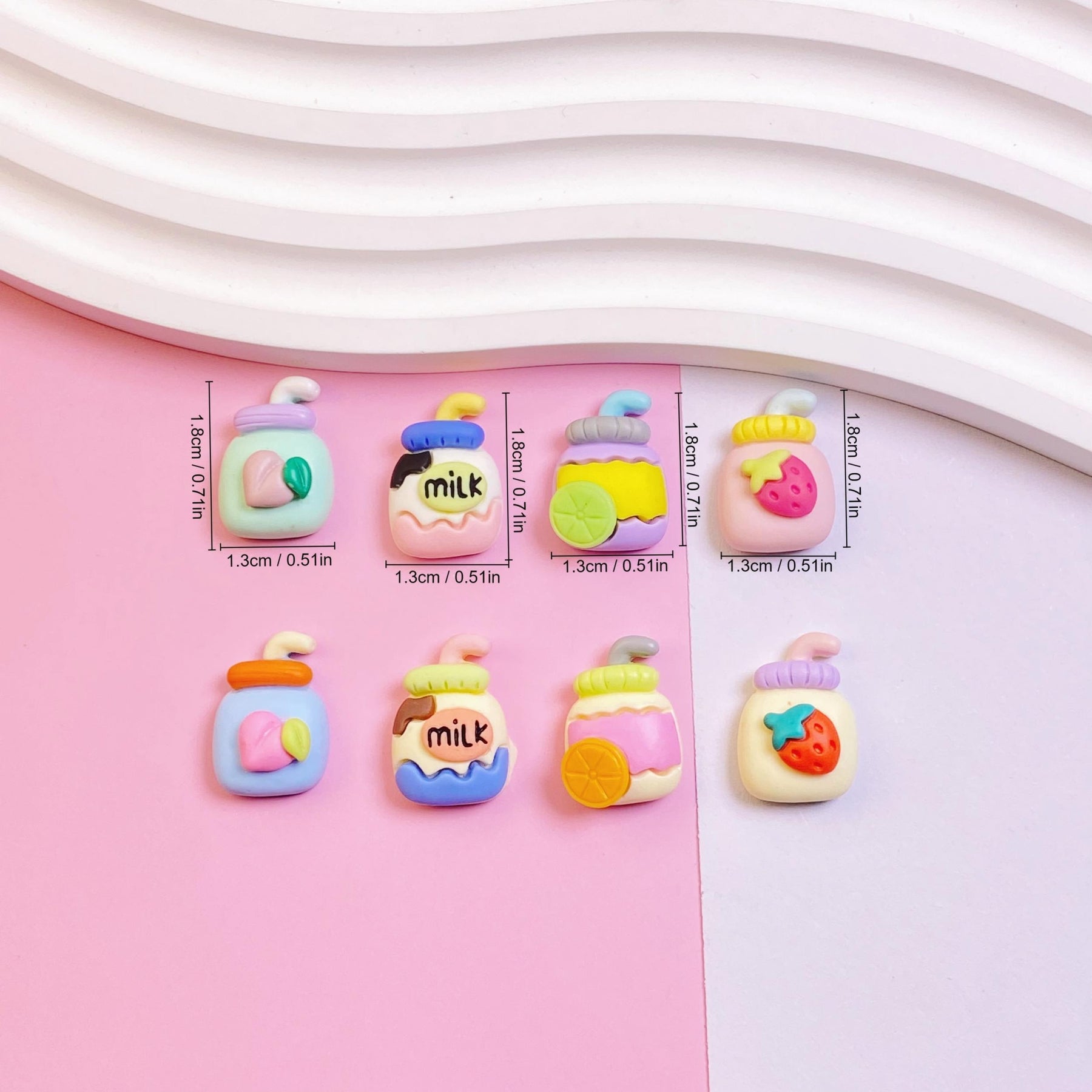 Enhance your DIY projects with this 12pcs set of resin cartoon drink bottle accessories. Perfect for hair clips, phone cases, photo frames, wall decorations, and scrapbook crafts.
