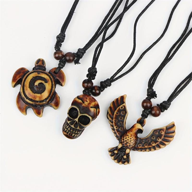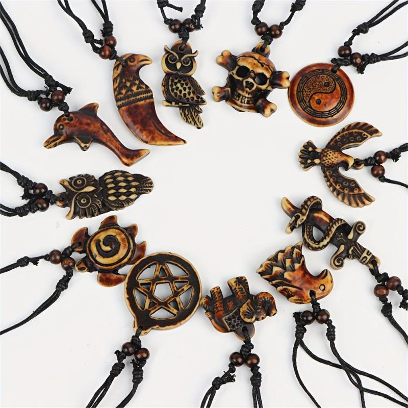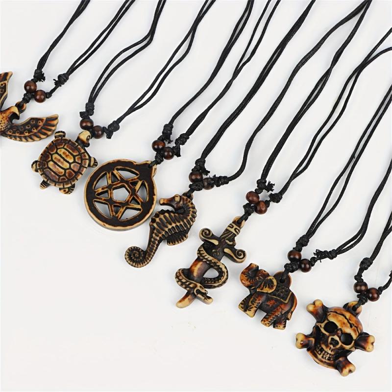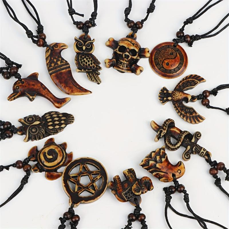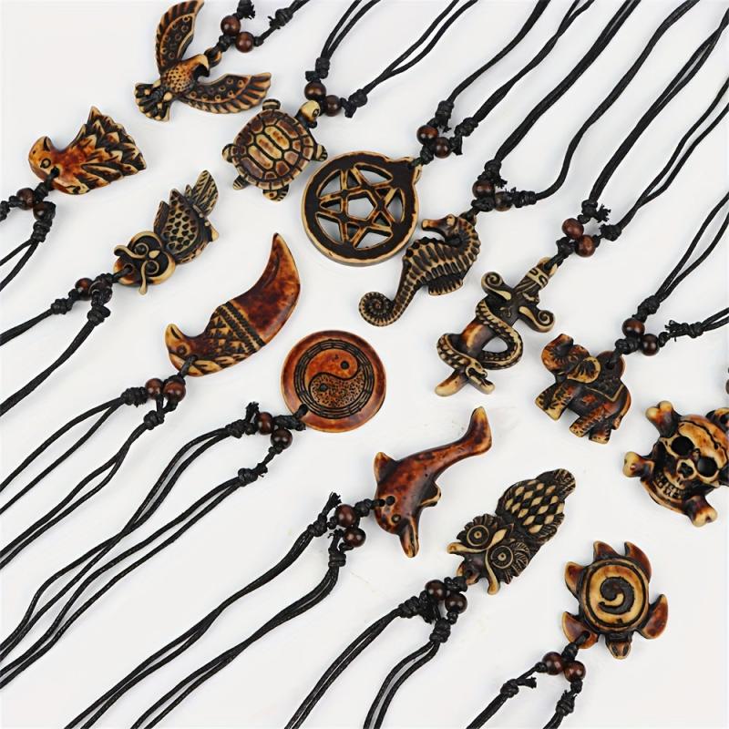 Enhance your style with this pack of 12 retro punk resin pendant necklaces featuring turtle, eagle, and elephant designs. Perfect for daily wear, holidays, and parties.