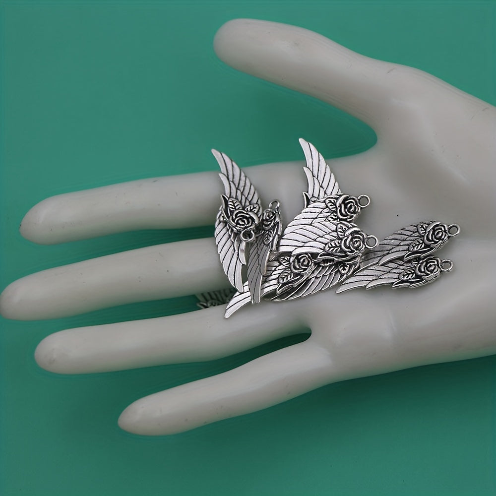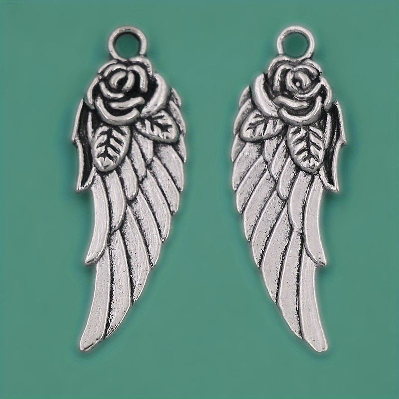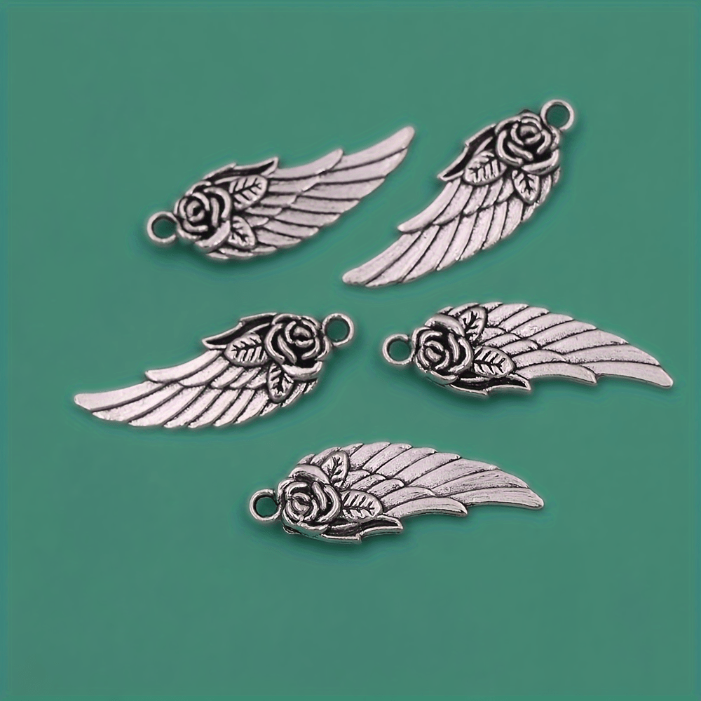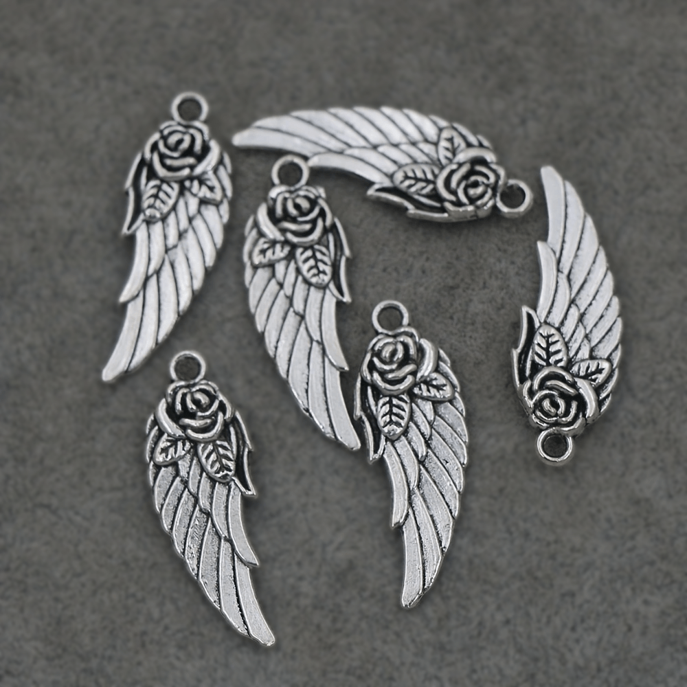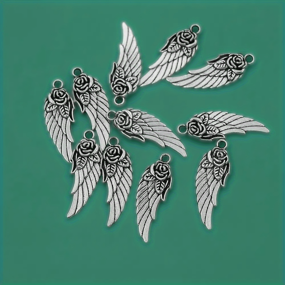 Enhance your DIY jewelry projects with these silver rose pattern wing alloy pendants. Perfect for earrings, bracelets, and necklaces.