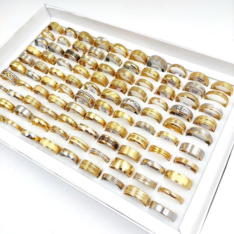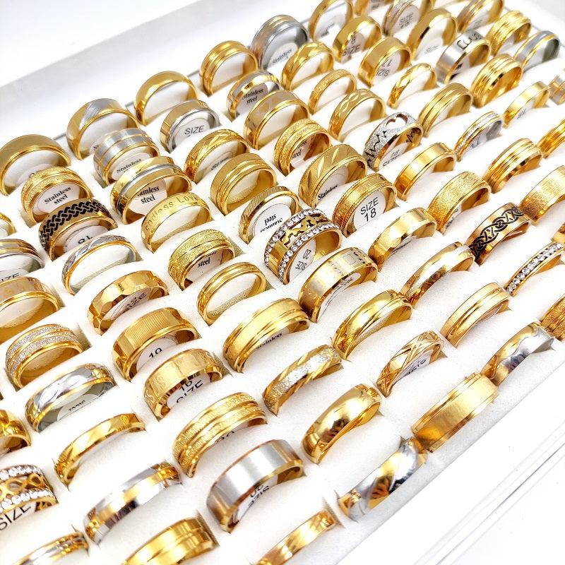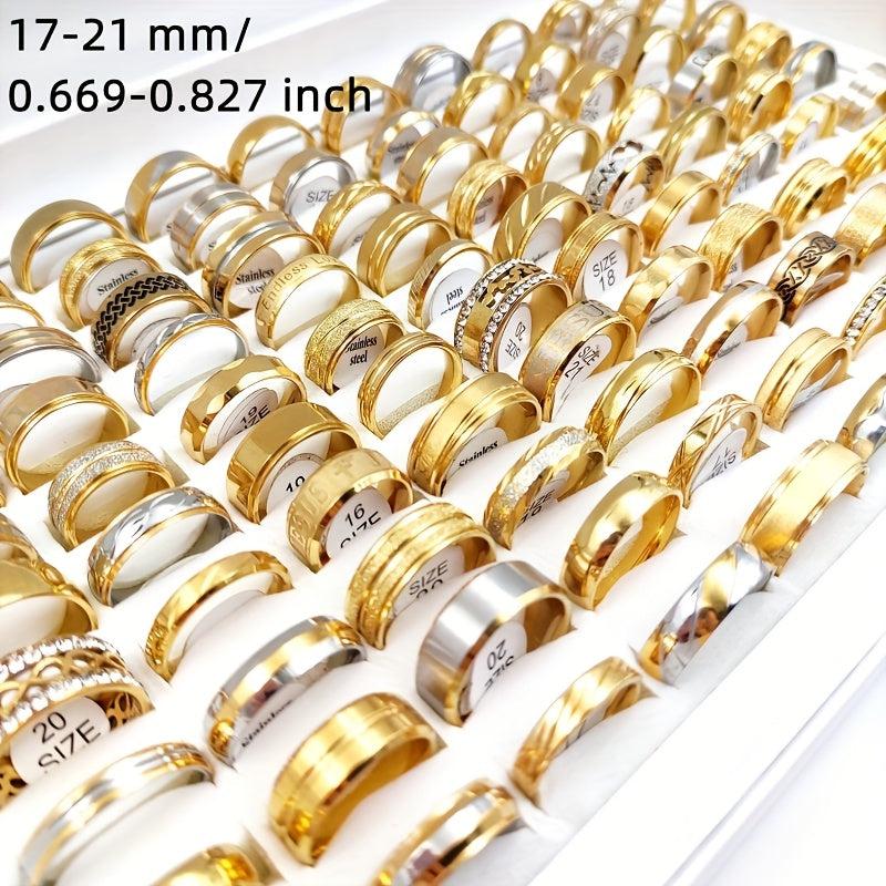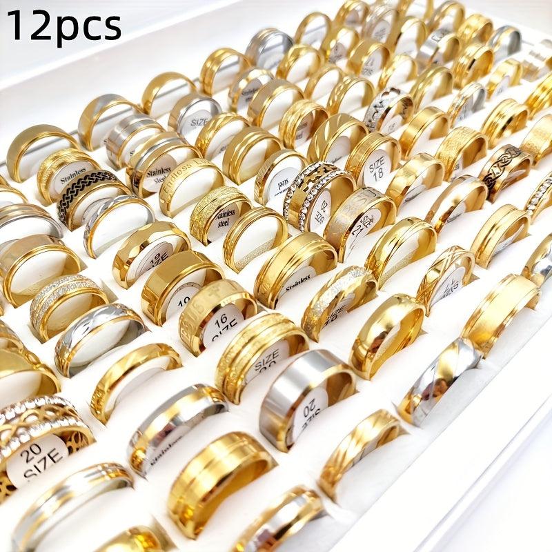 Elegant set of 12 stainless steel rings in gold tone. Perfect for casual wear and as an anniversary gift. Suitable for both men and women.