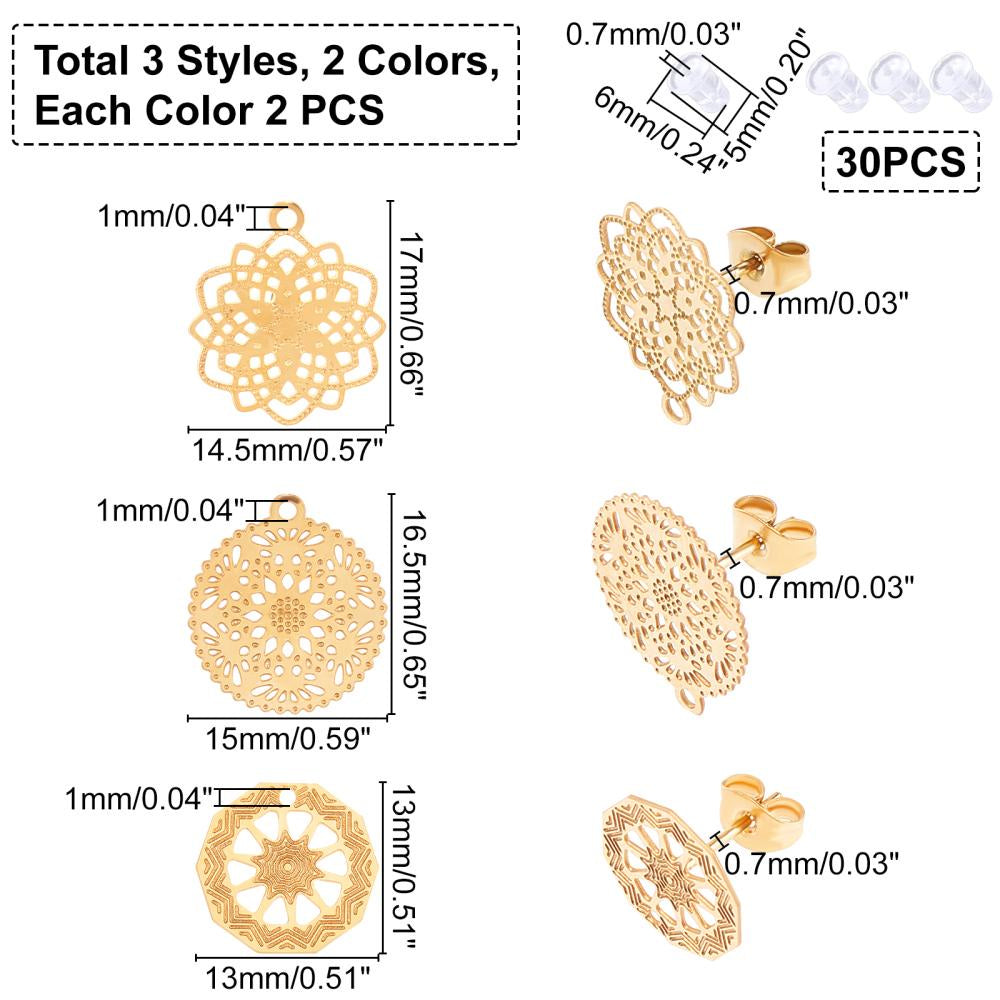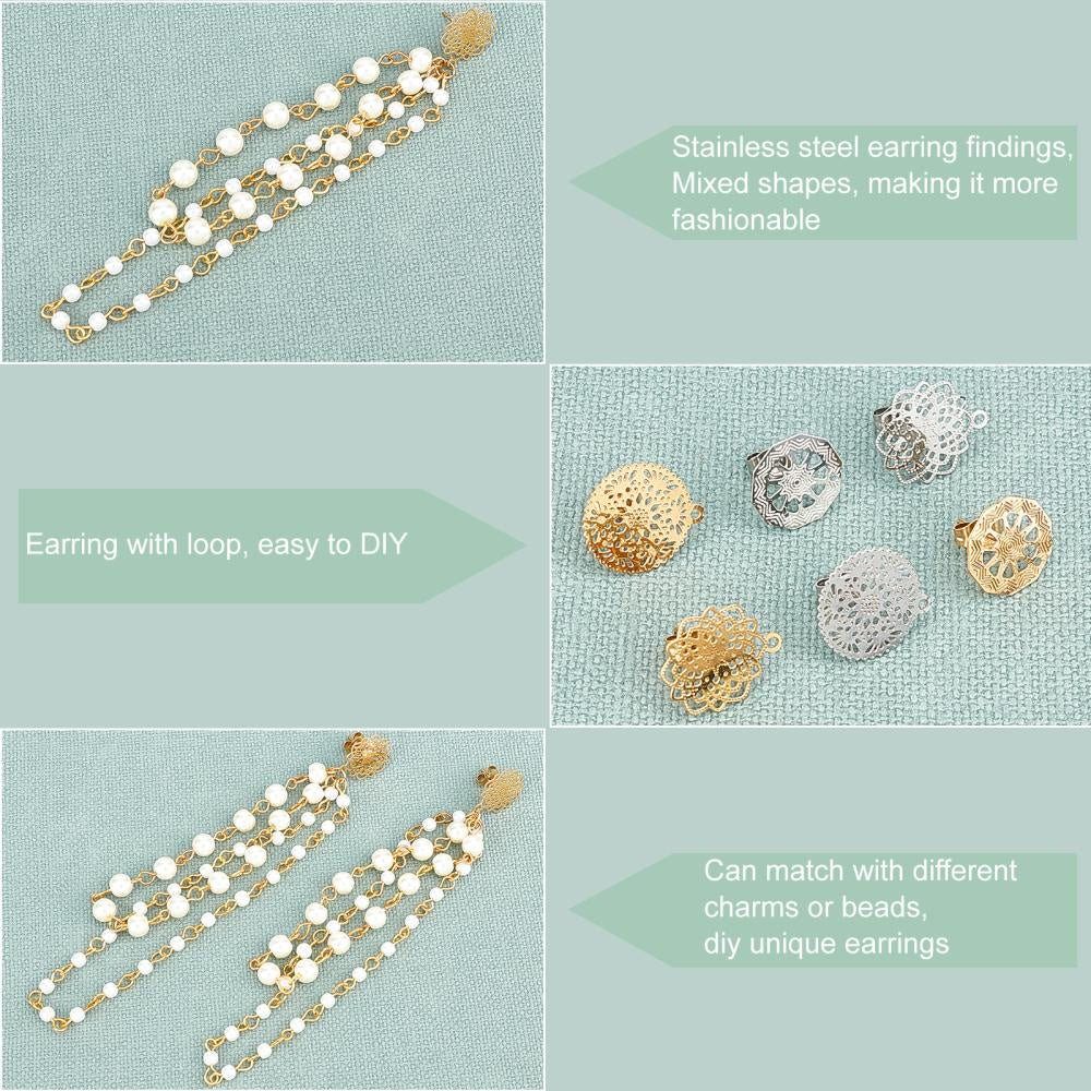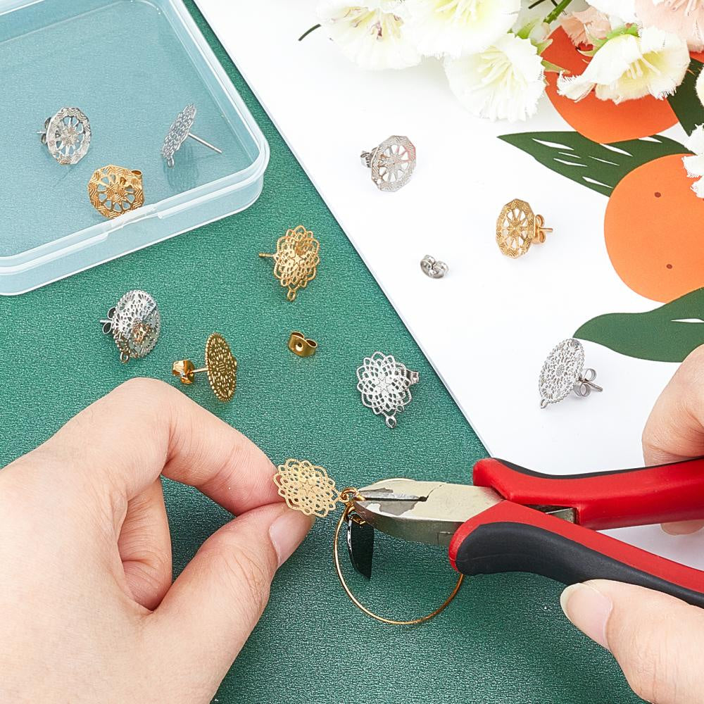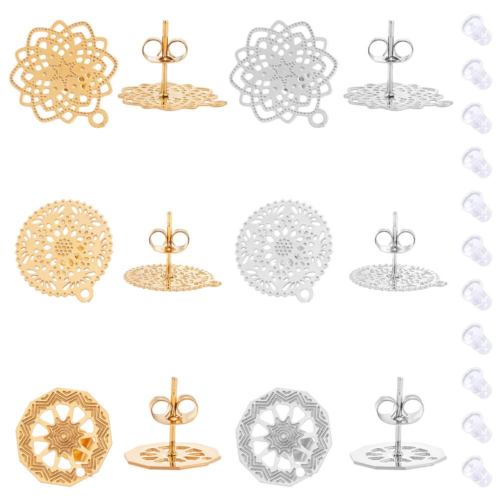 Get this set of stainless steel stud earring findings with loops and silicone ear nuts. Perfect for making your own earrings! Mix of golden and stainless steel earrings included.