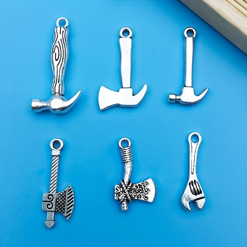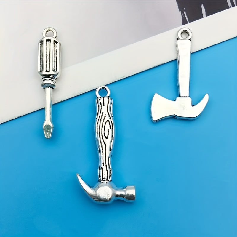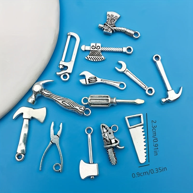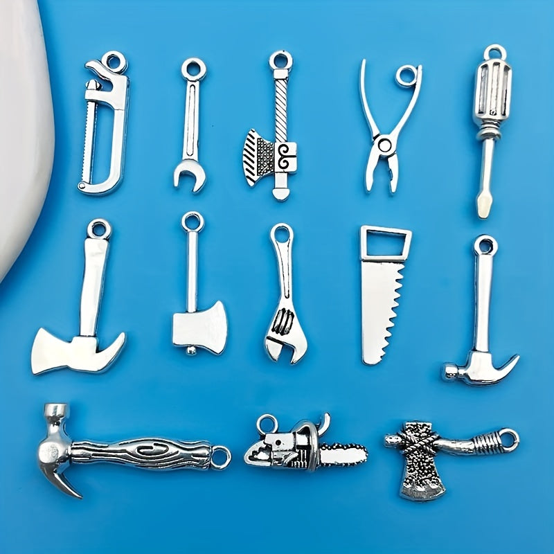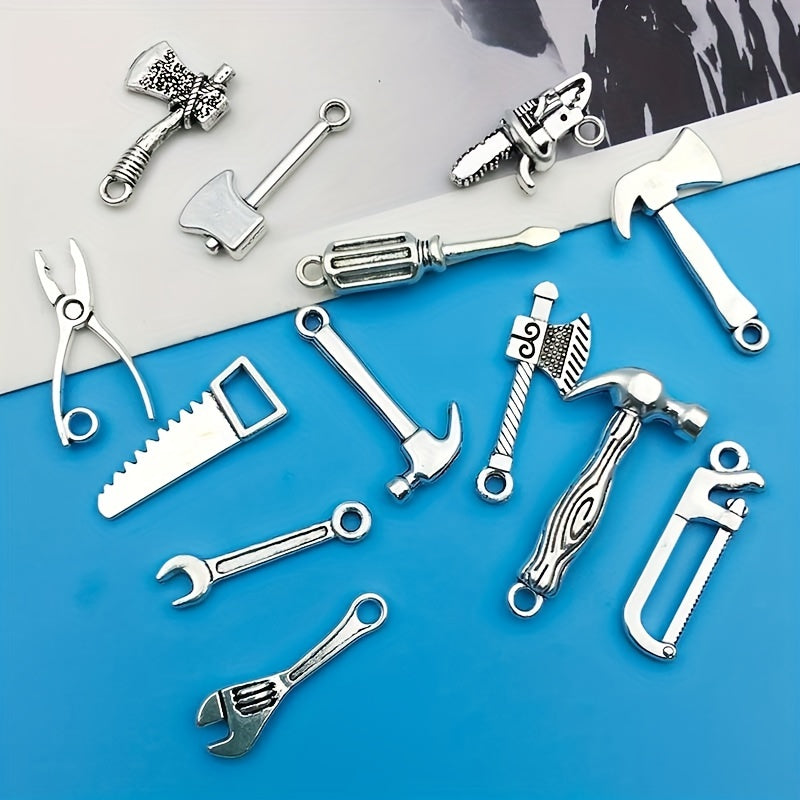 Add a touch of vintage charm to your jewelry creations with this set of 13 zinc alloy antique silver tools pendants. Featuring hammer and pliers shapes, these charms are perfect for necklaces, bracelets, and earrings.