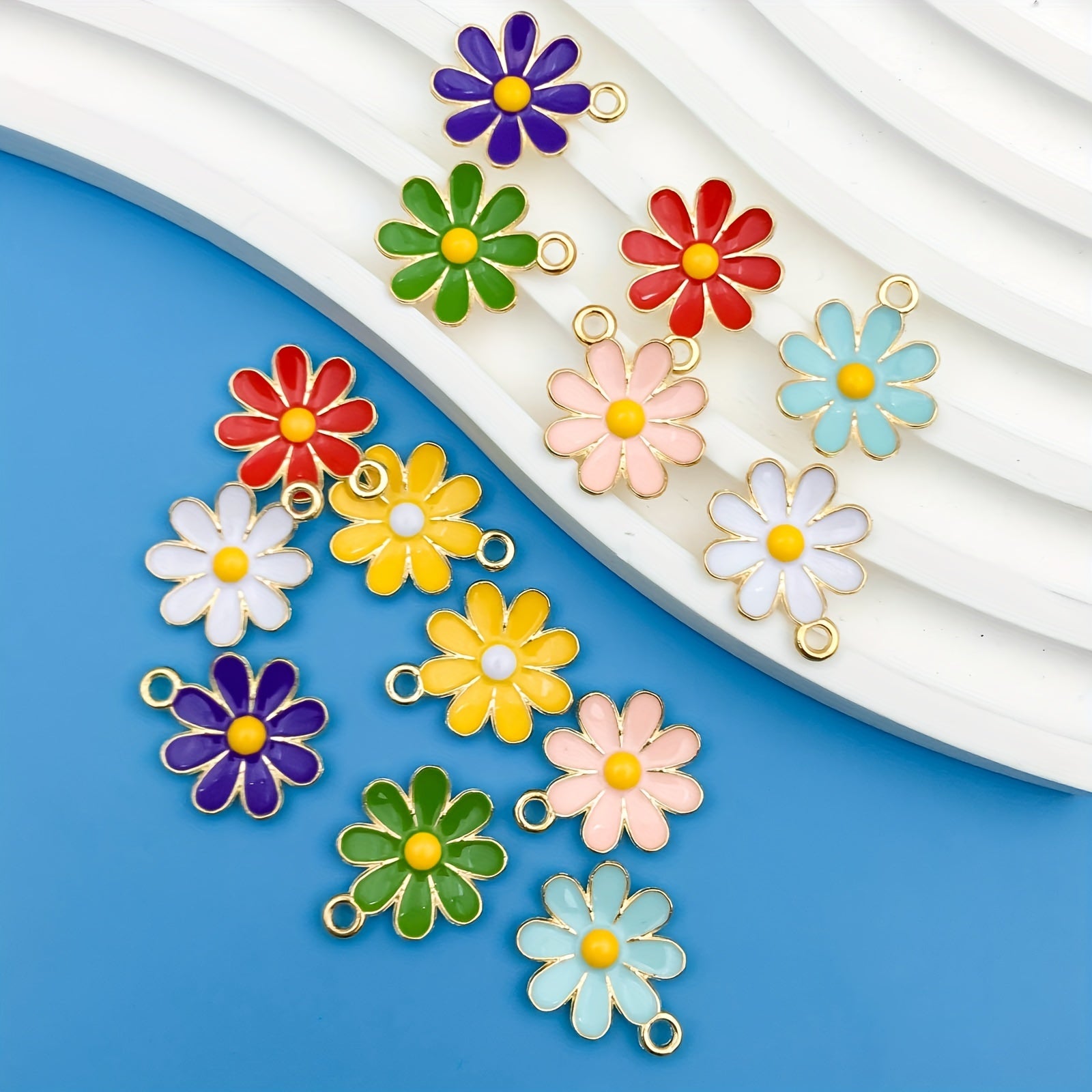 This set includes a variety of zinc alloy enamel charms in flower and leaf shapes, perfect for creating necklaces, bracelets, and earrings. Add a touch of nature to your handmade jewelry with these colorful pendants.