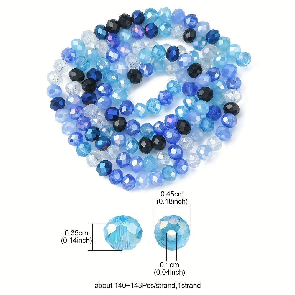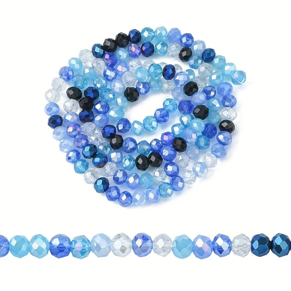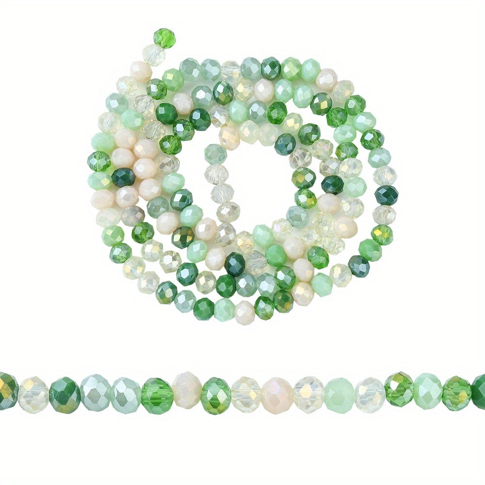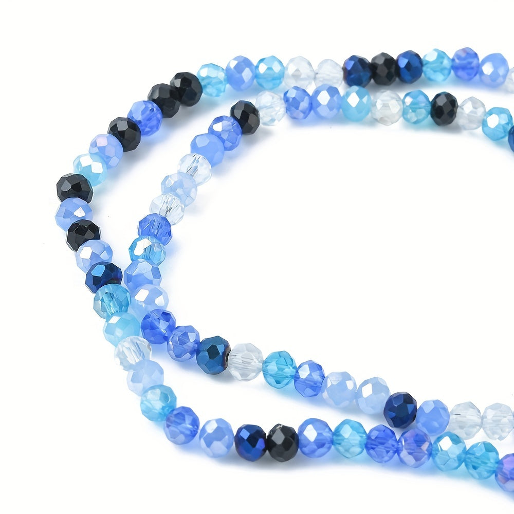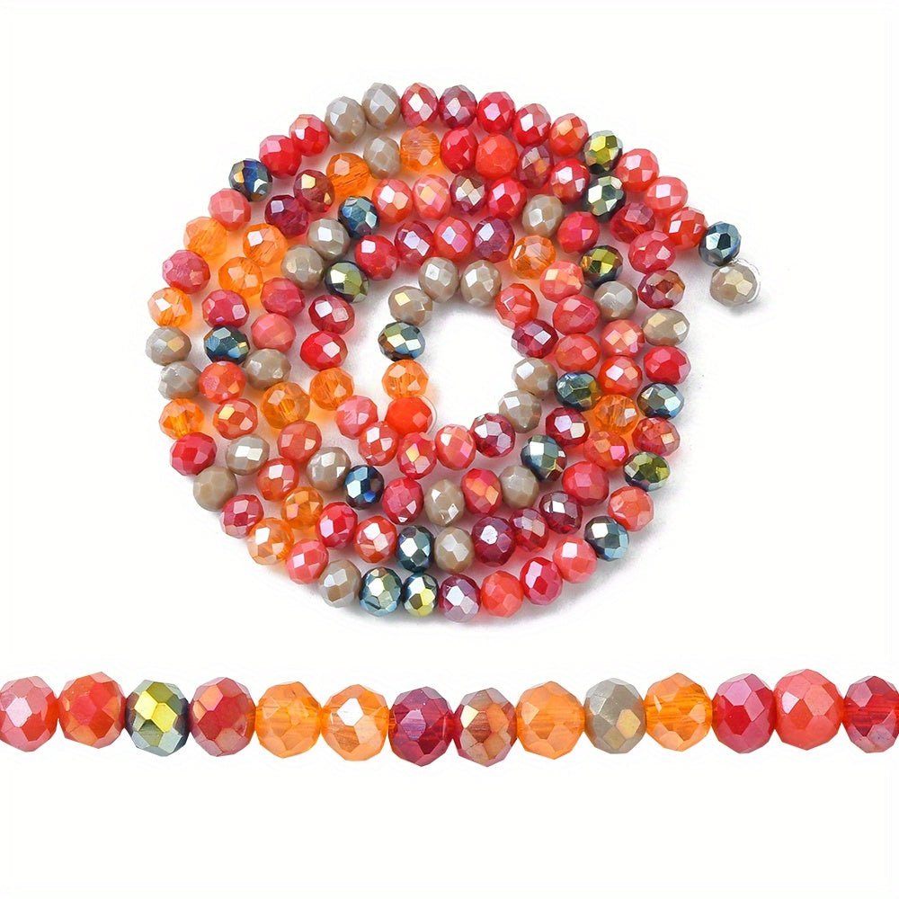 This strand contains 143pcs of 4mm colorful faceted glass beads perfect for creating earrings, bracelets, necklaces, and other accessories.
