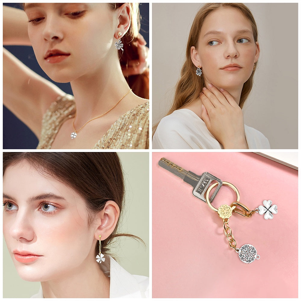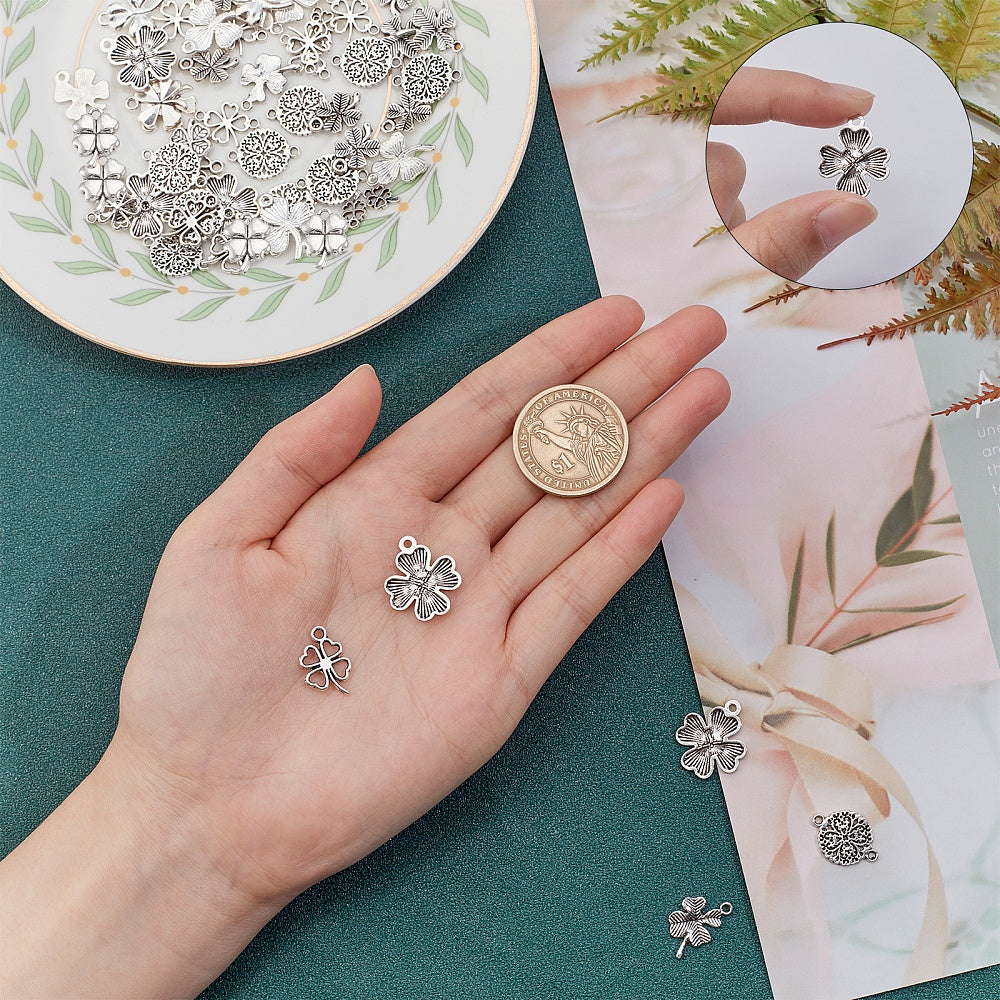Get lucky with these antique silver four-leaf clover pendants perfect for DIY jewelry projects.