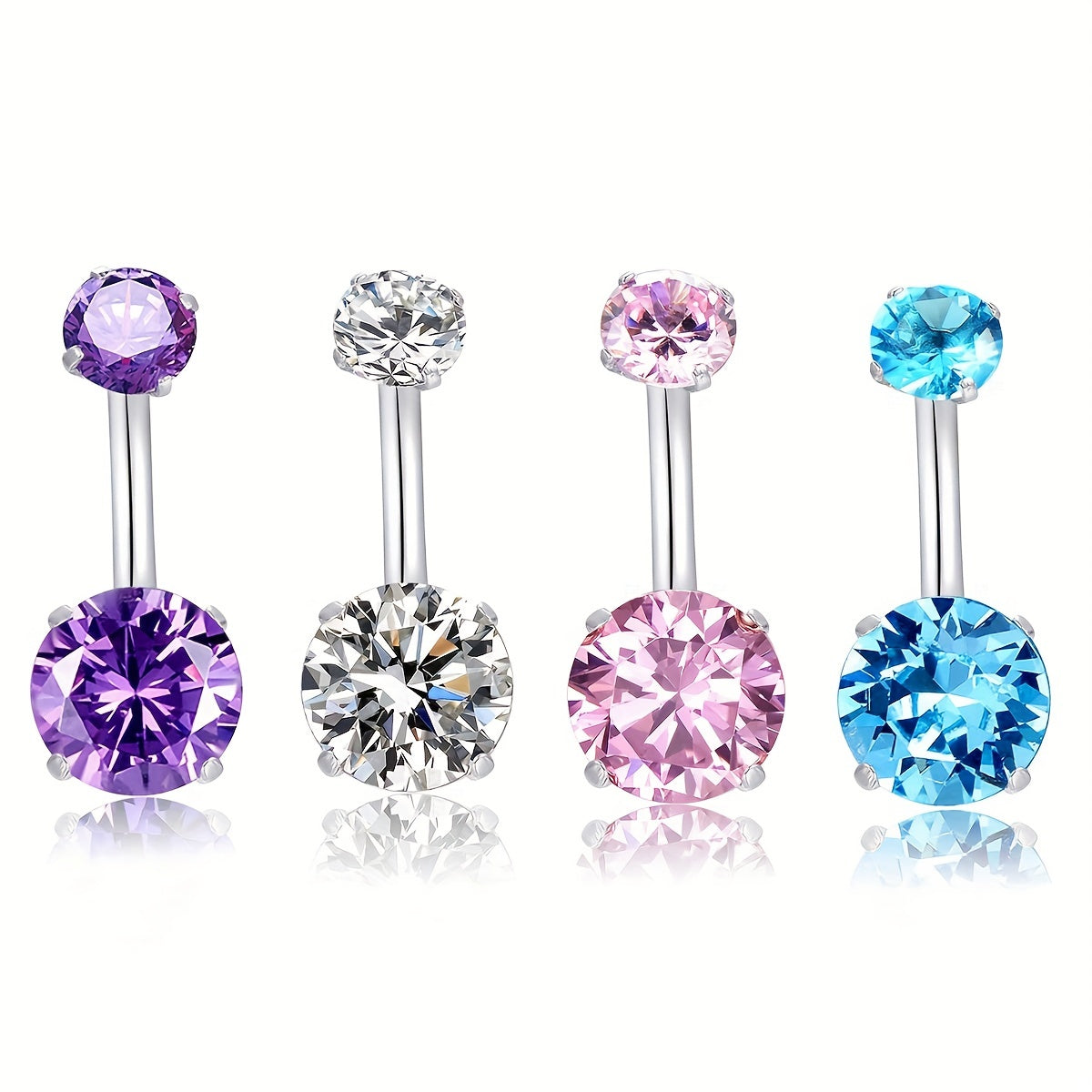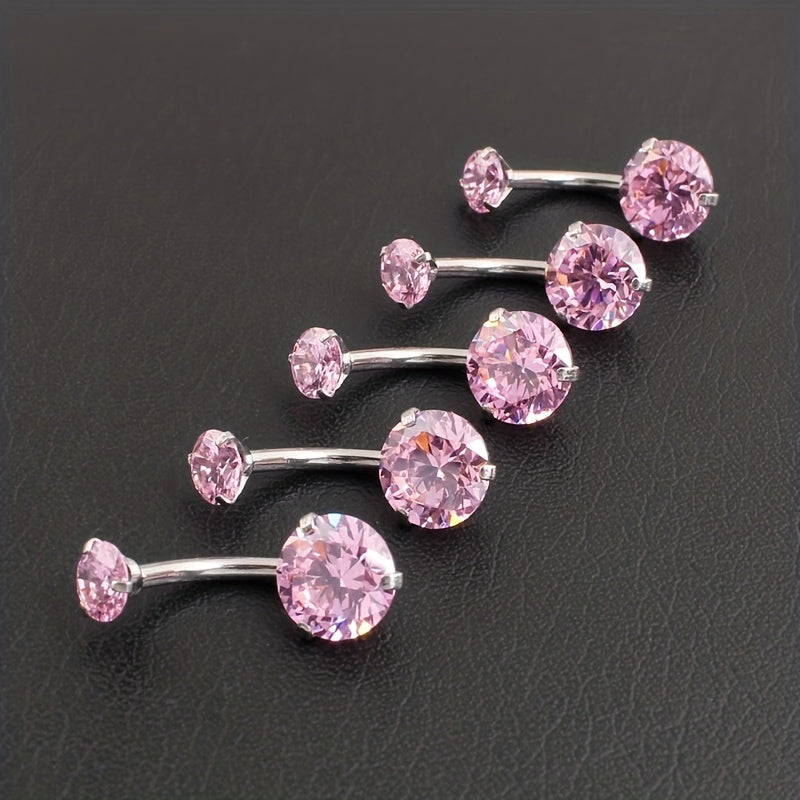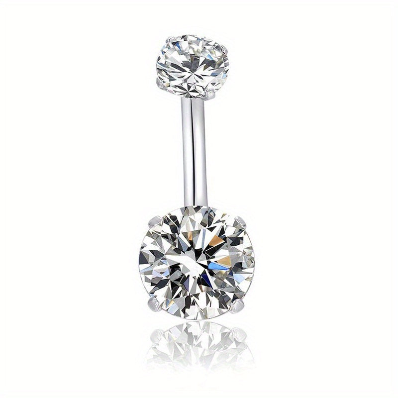 Add a touch of sparkle with this 14 gauge belly button ring featuring a round cubic zirconia. The navel barbell stud is perfect for adding some glam to your body piercing collection.