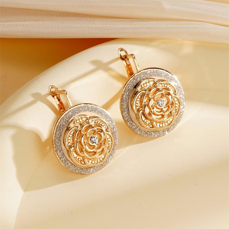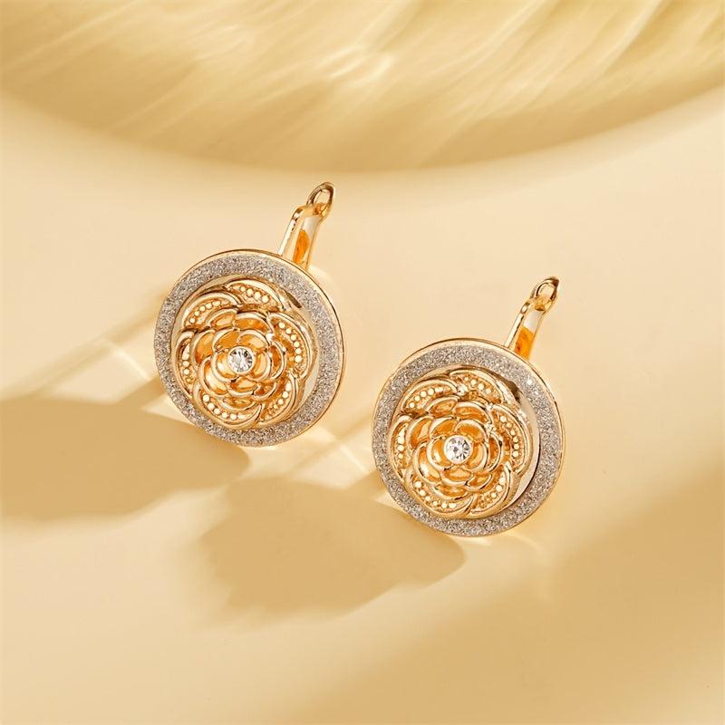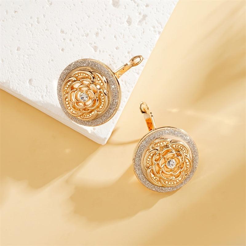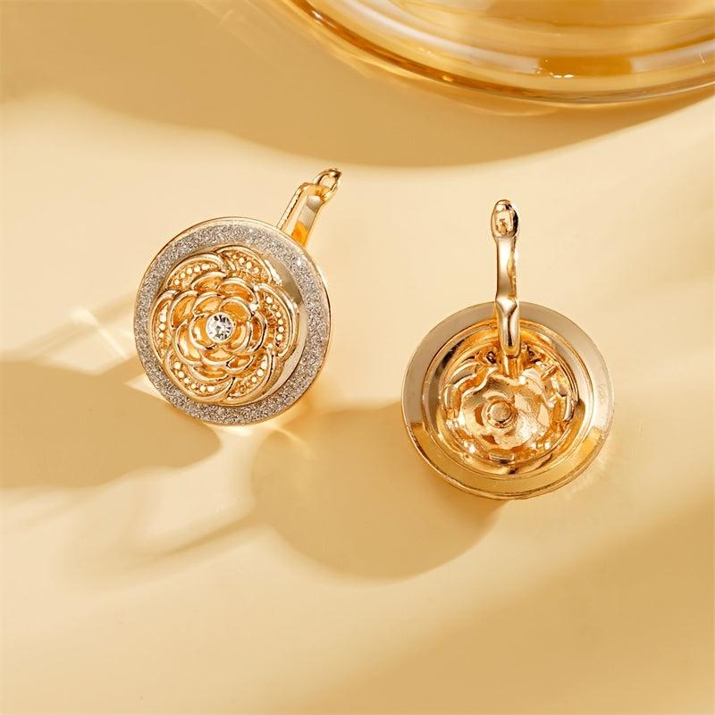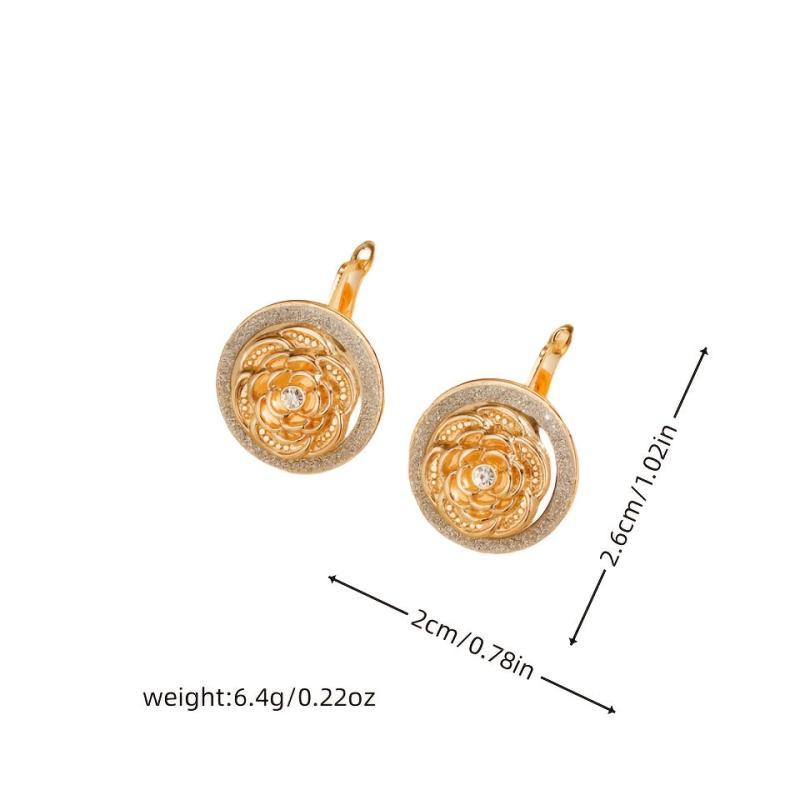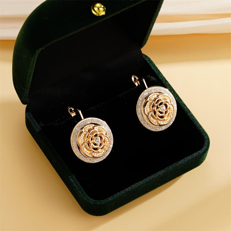 Elevate your look with these stunning camellia flower drop earrings crafted from high-quality copper plated with 14K gold. Adorned with sparkling synthetic zirconia accents, these earrings are perfect for both casual wear and special occasions.
