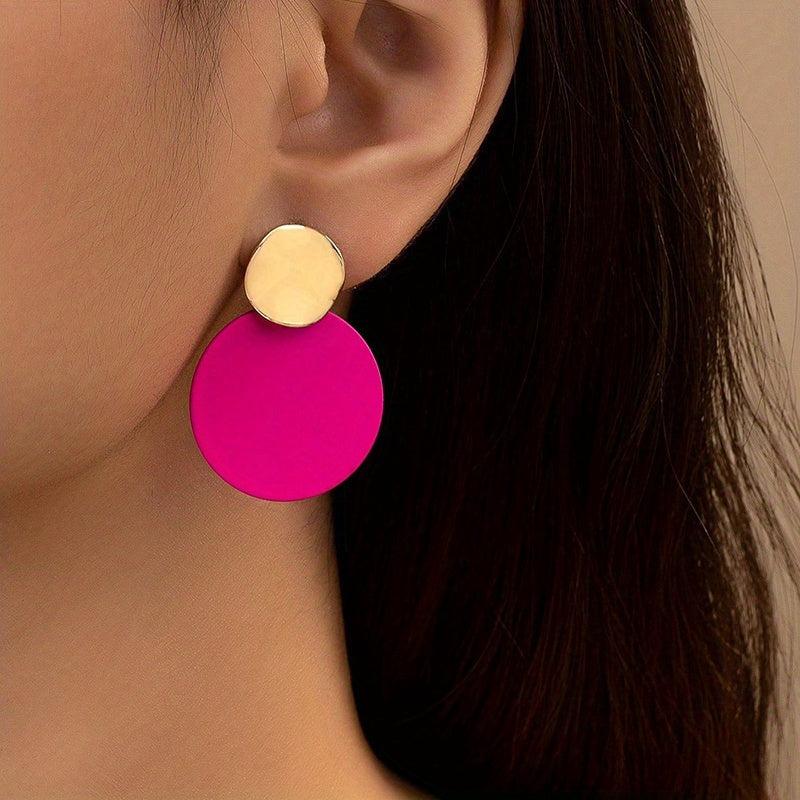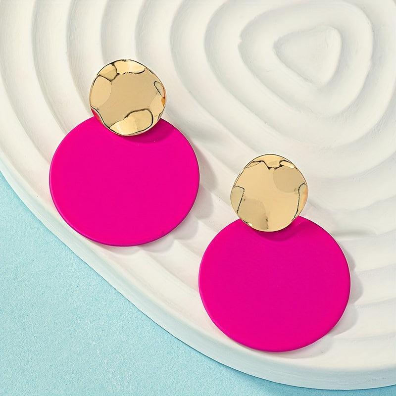 Add a pop of color to your outfit with these vibrant pink and golden irregular circular earrings. Perfect for daily wear, music festivals, and all seasons!