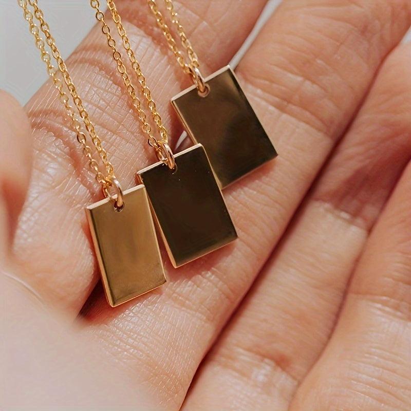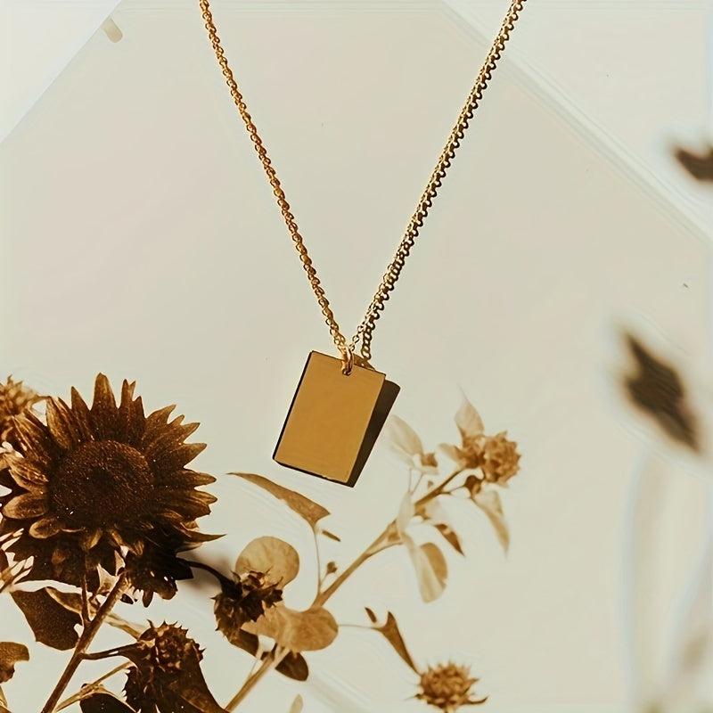 Elegant square pendant necklace made of durable 316L stainless steel with 14K gold plating. Perfect for daily and formal occasions. Minimalist design for versatile wear.