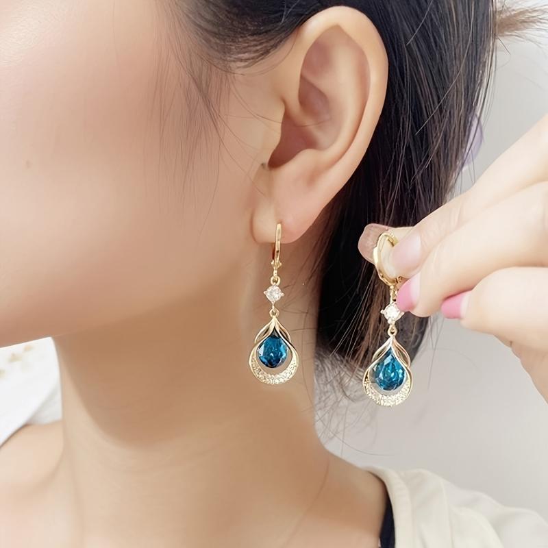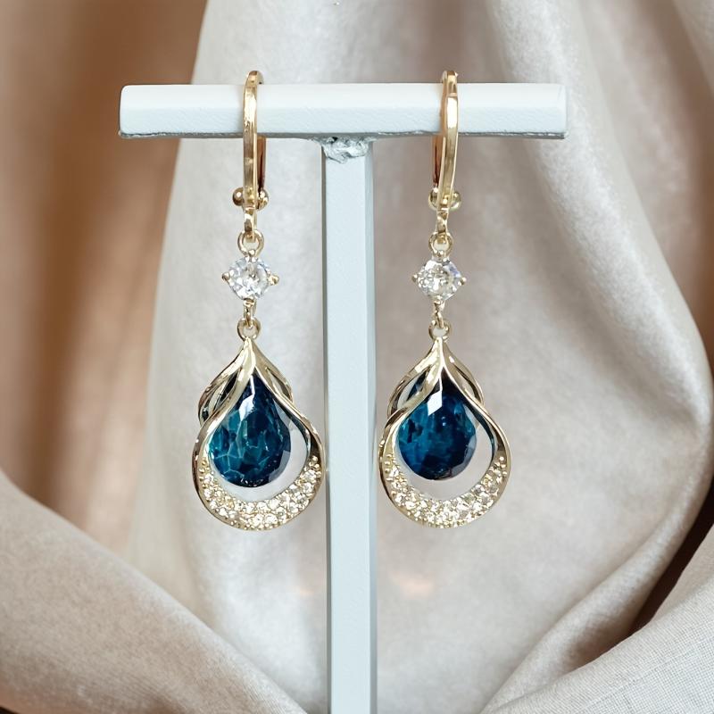 Elegant teardrop earrings with synthetic cubic zirconia in a Japanese copper style. Perfect for daily wear or parties.