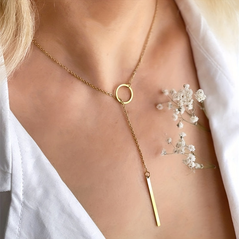 Elegant 14K gold plated circle pendant necklace. Adjustable length perfect for a clavicle chain. Versatile piece suitable for any occasion.
