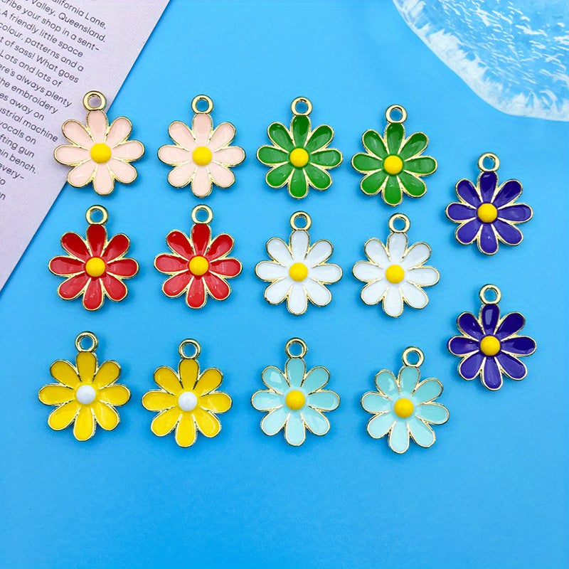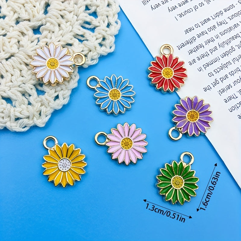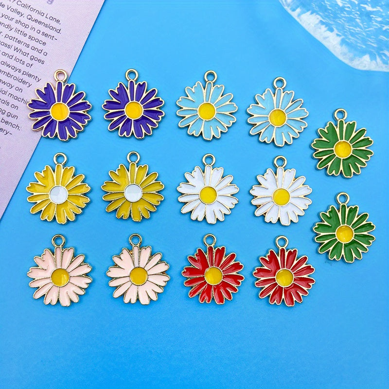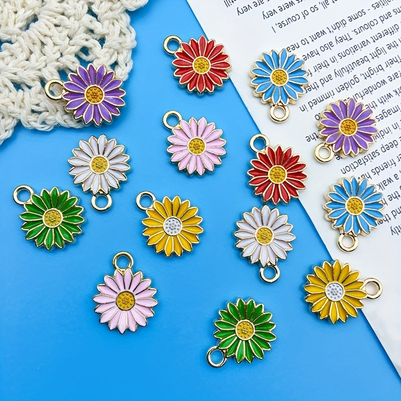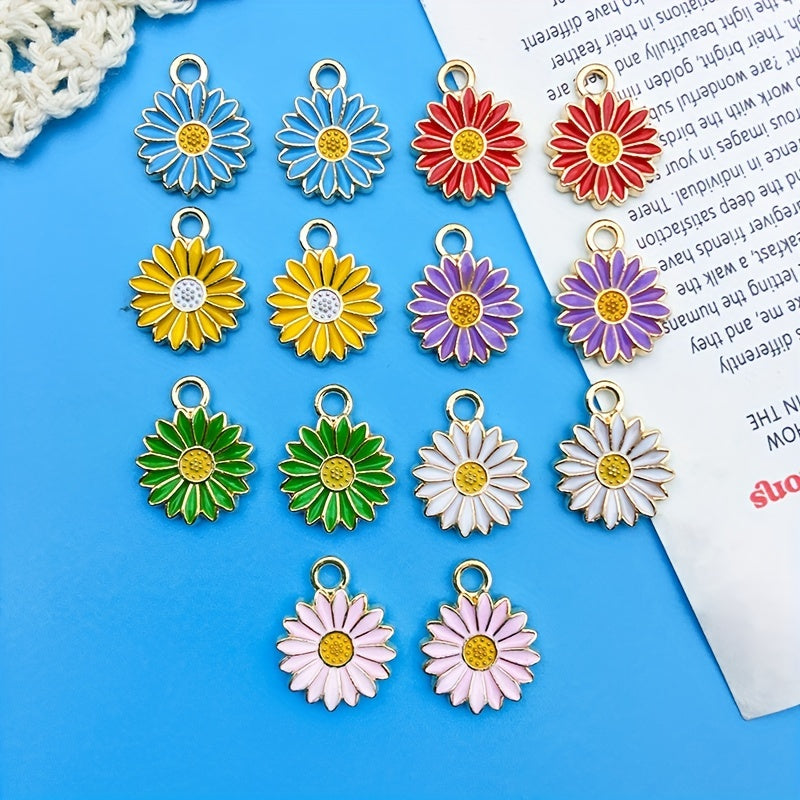 Add a touch of nature to your jewelry creations with this set of 14 sunflower pendants. Perfect for making necklaces, bracelets, and earrings.