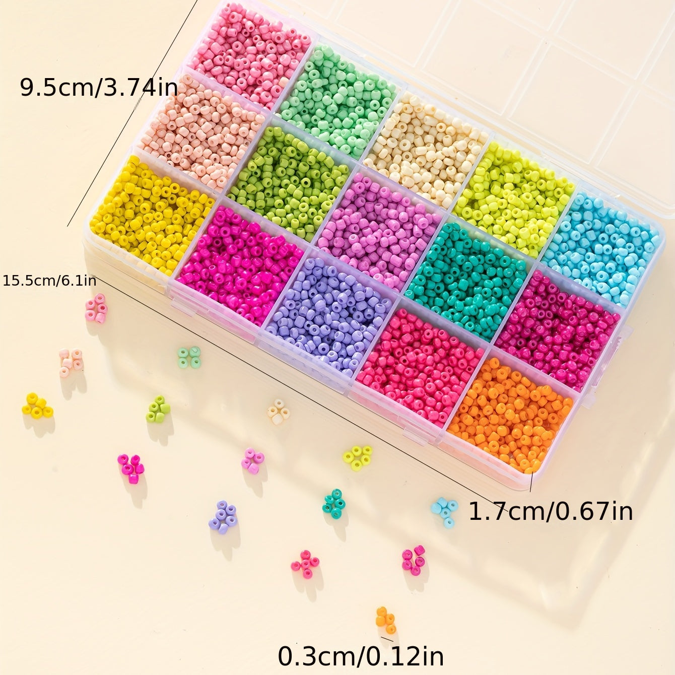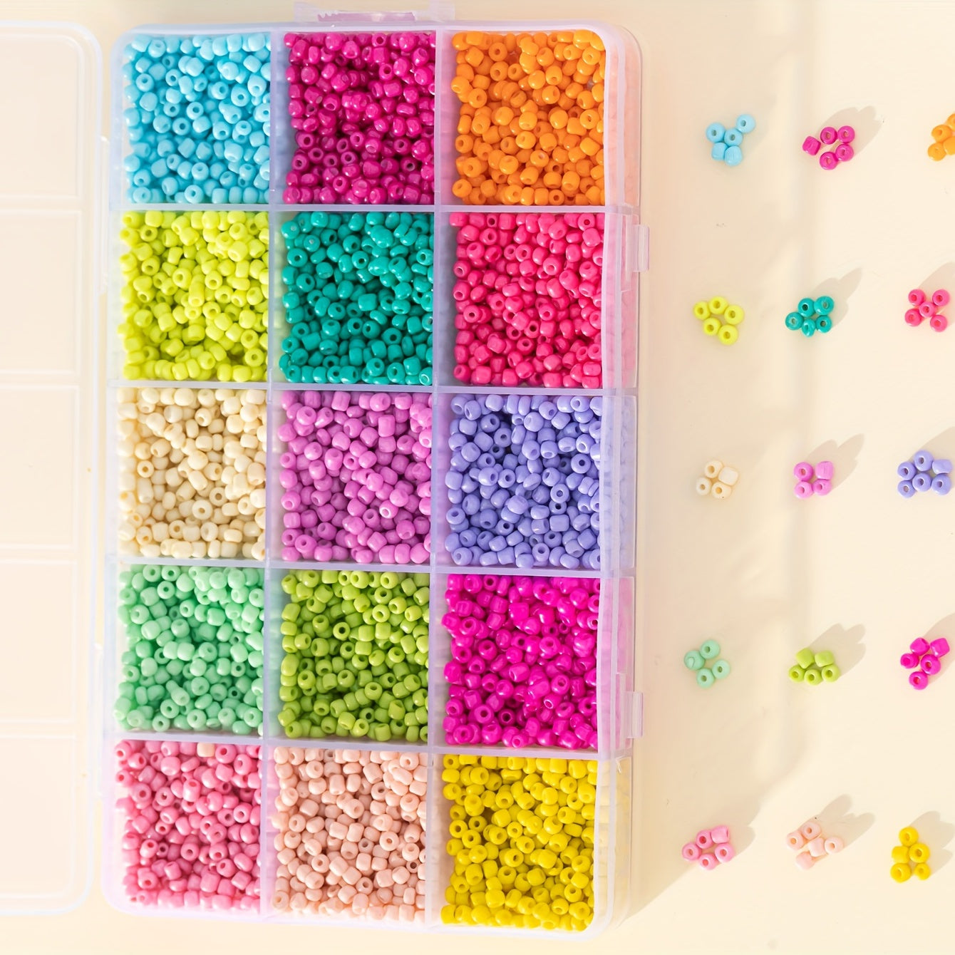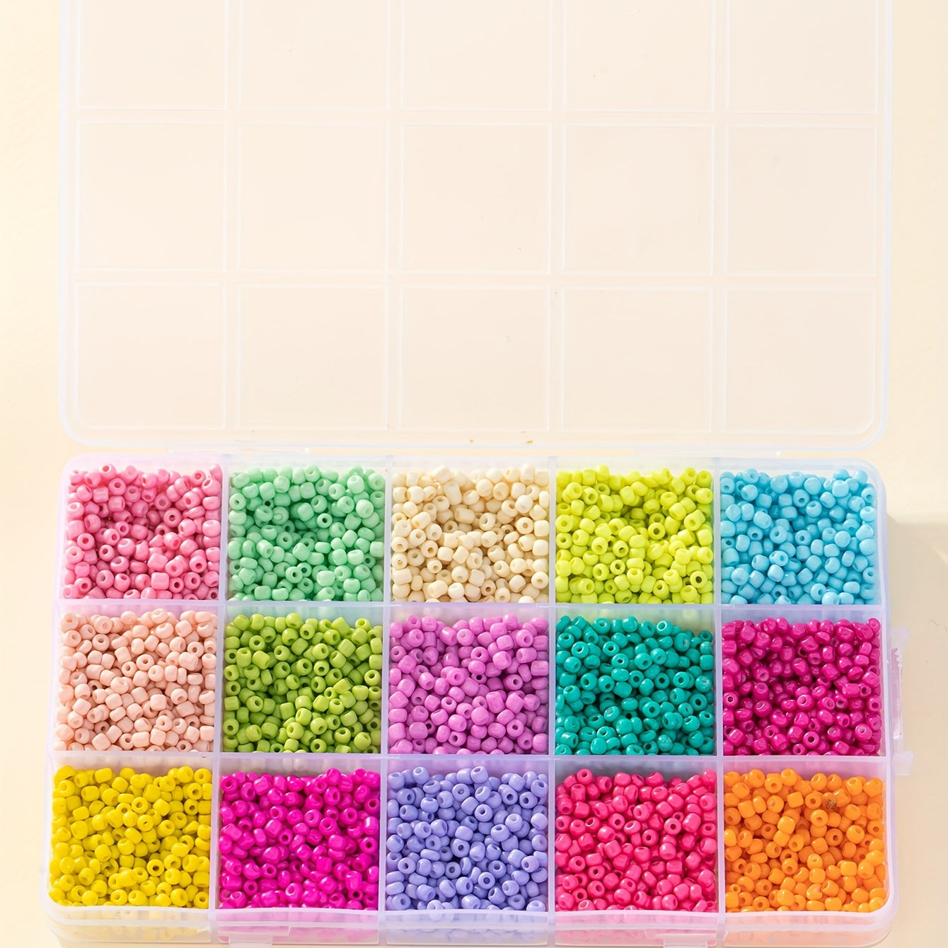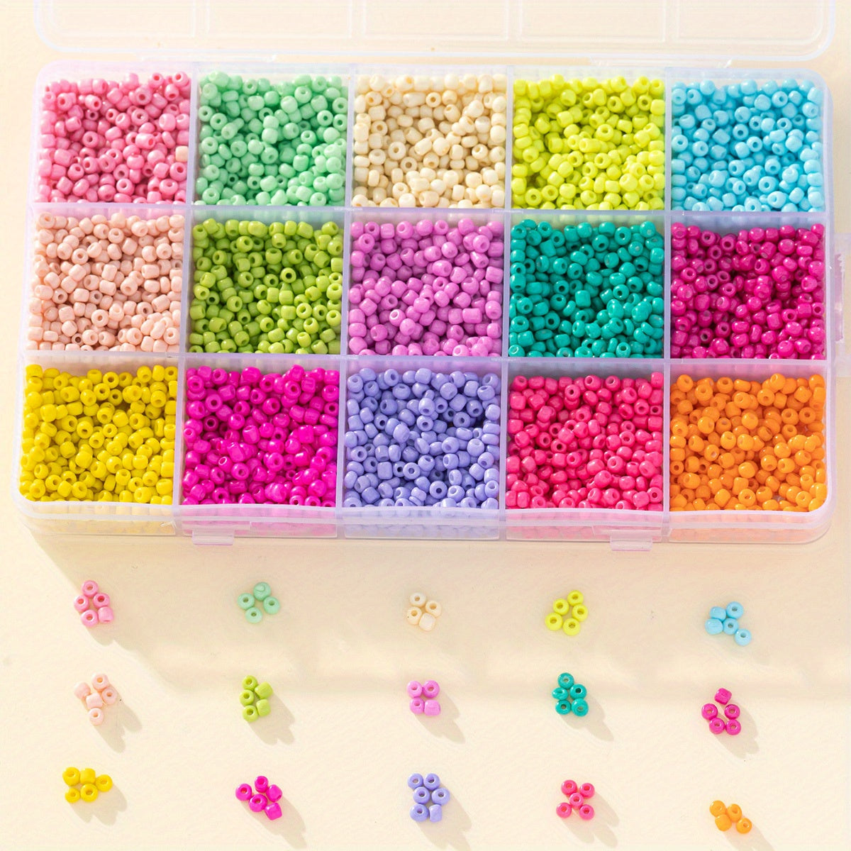 Get creative with this set of 15 grid glass pony beads in 3mm size for bracelet, necklace, and waist chain making. Includes small seed beads in 15 vibrant colors with a convenient plastic storage box.