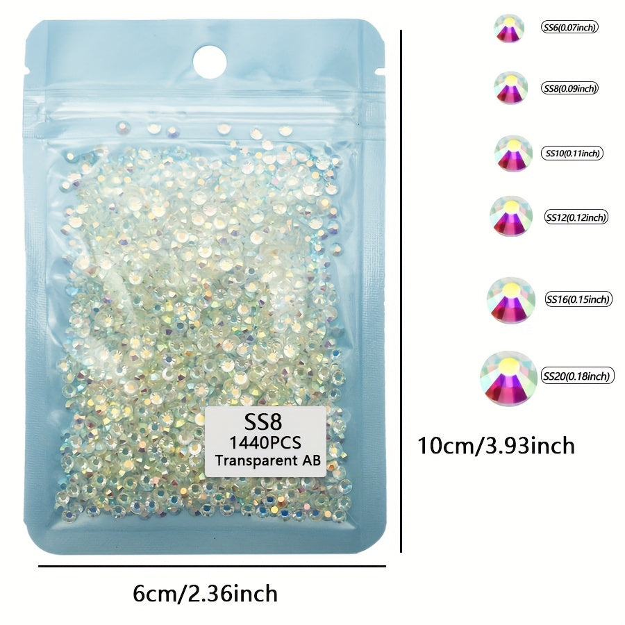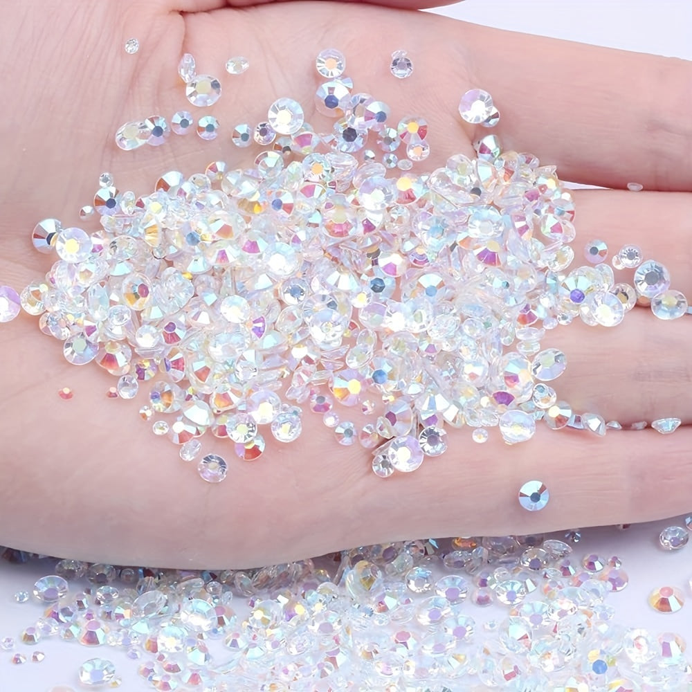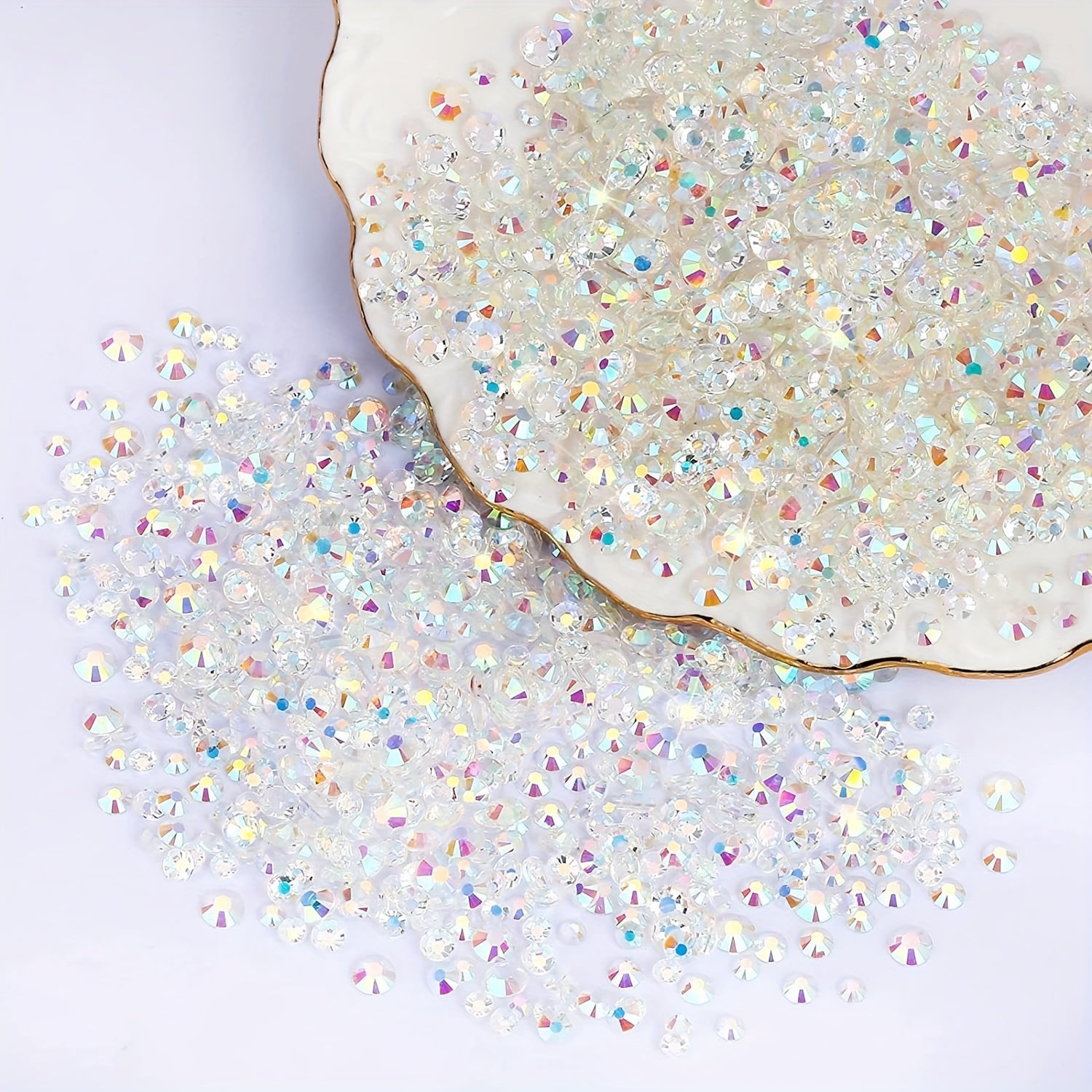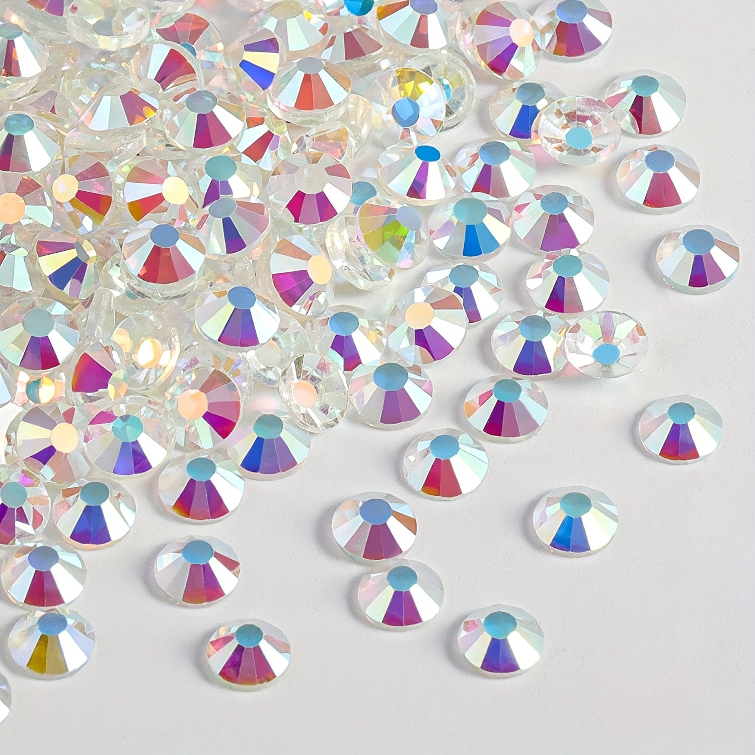 These clear AB glass rhinestones are perfect for DIY crafts, mugs, clothes, makeup, and nail art. The flat bottom design makes them easy to apply.
