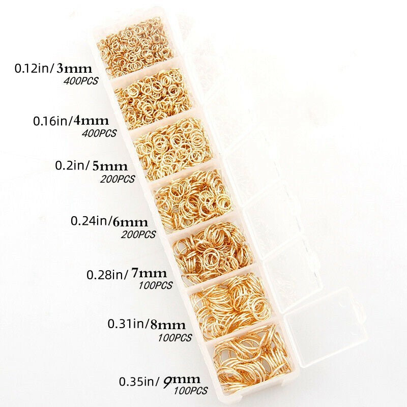 This set includes 1500 mixed color iron jump rings with a convenient storage box. Ideal for DIY jewelry making projects.