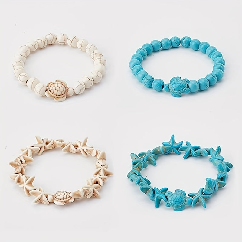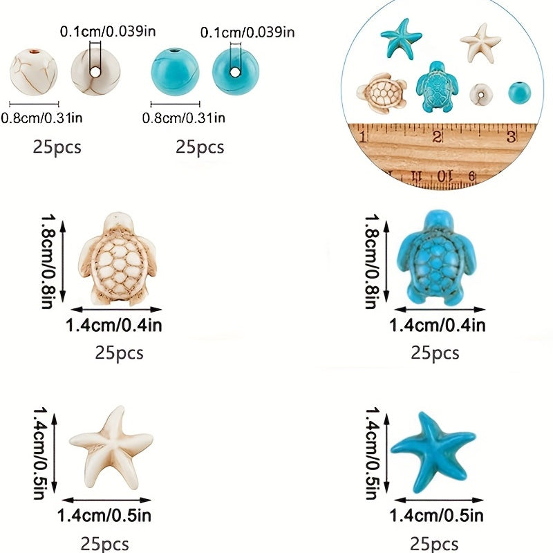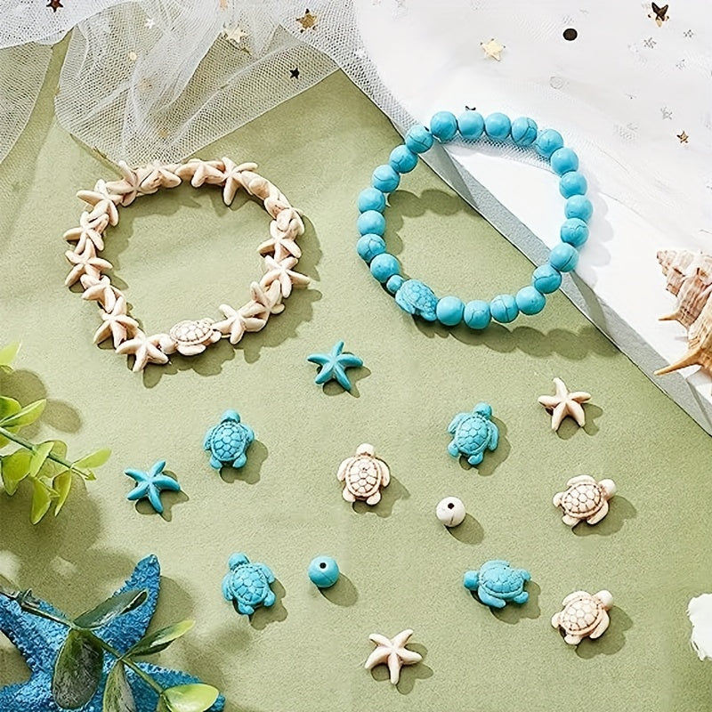 Create stunning jewelry pieces with this pack of 150 turquoise bead strands. Featuring 4 styles of turtle and starfish gemstone spacer beads, perfect for DIY bracelets and necklaces.