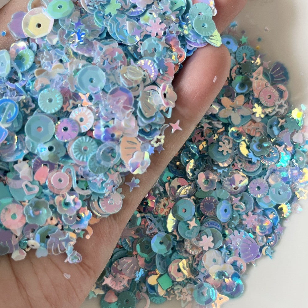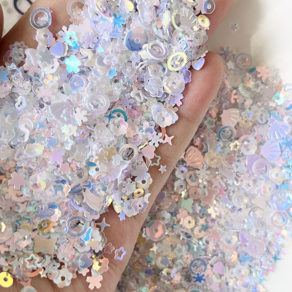 Enhance your nail art with these 15g Mermaid Princess Sequins. Featuring pentagram and peach shell designs, these accessories add a touch of elegance to your manicure.