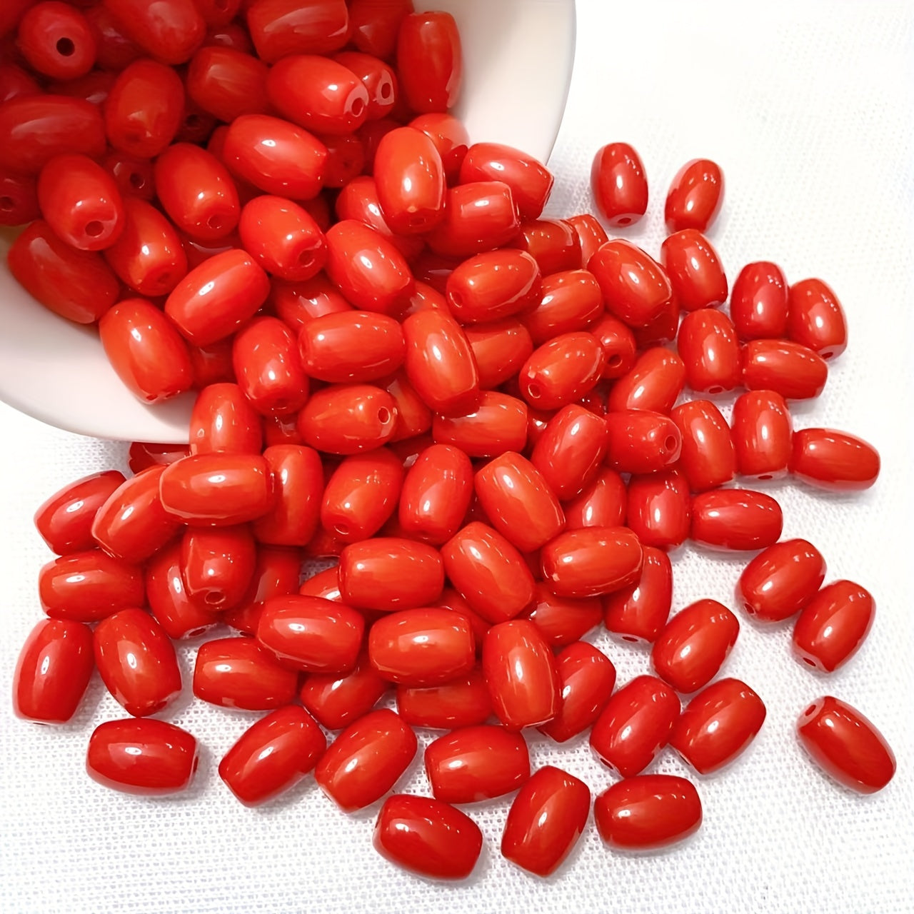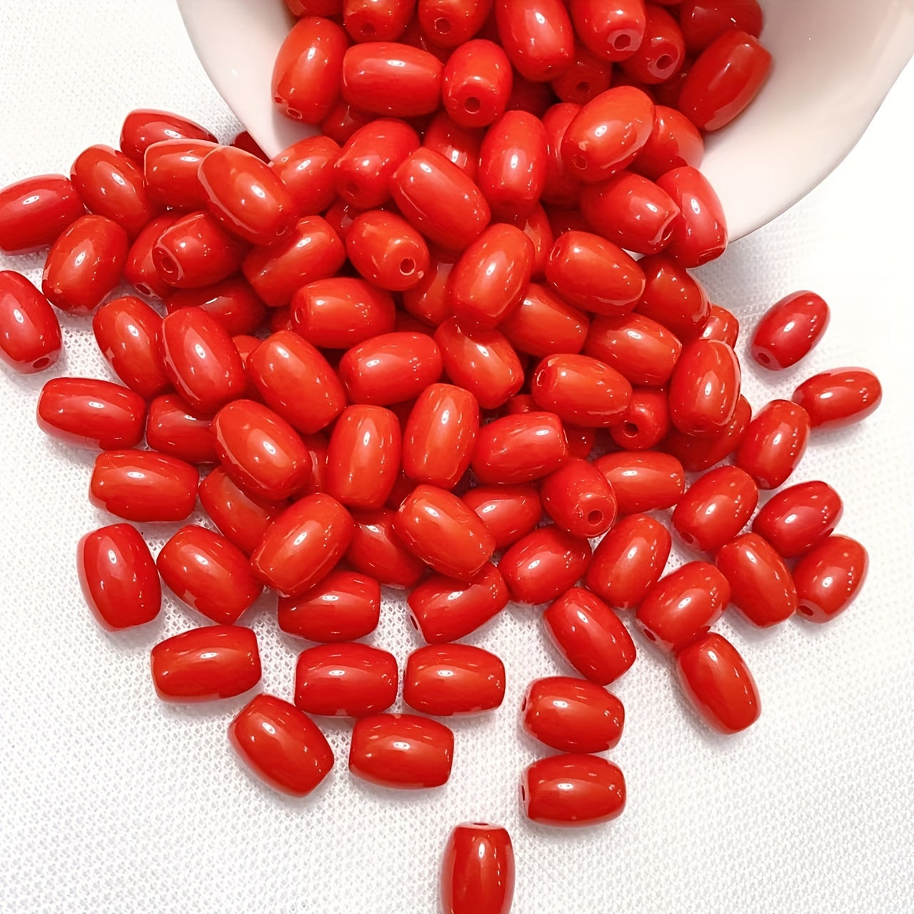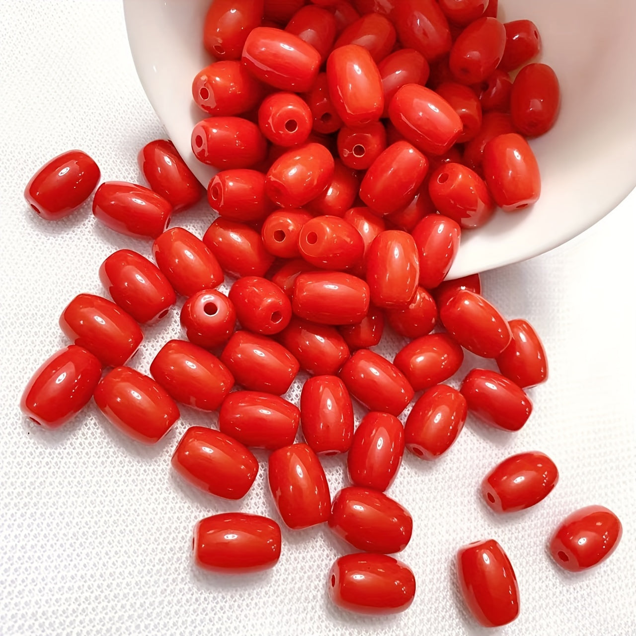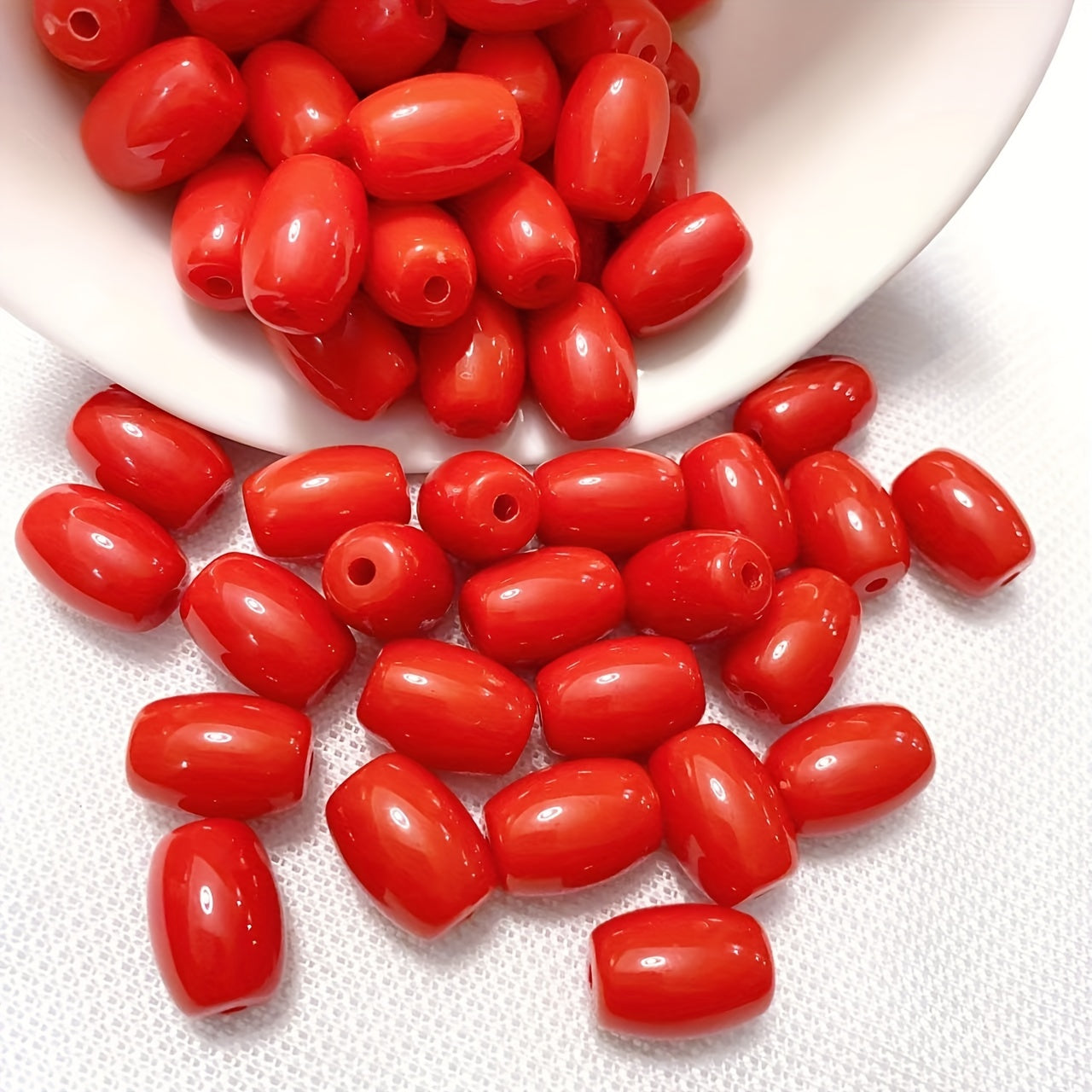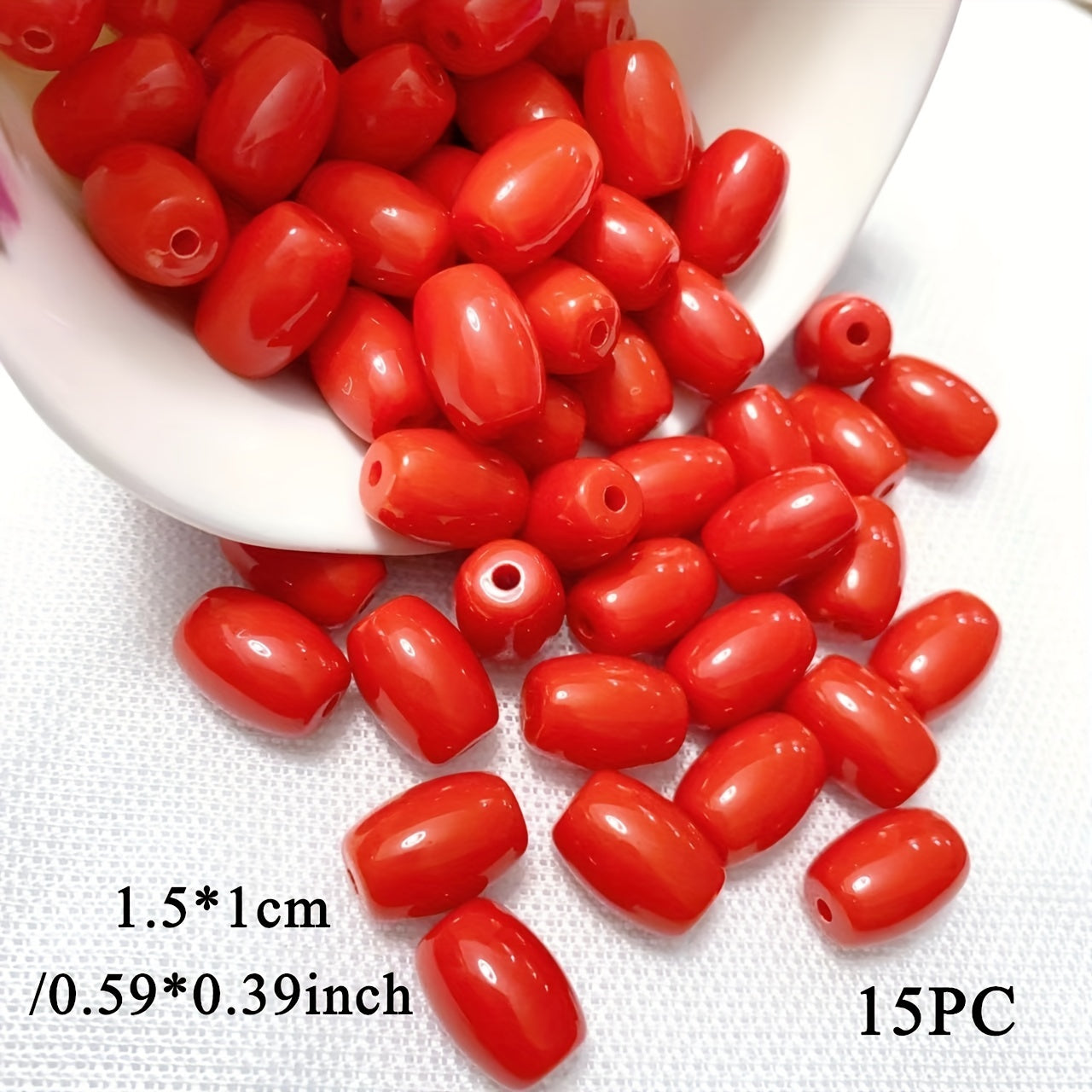 This set includes 15 round red barrel beads perfect for creating jewelry and clothing accessories. The beads are 10mm in size and can be used for various crafting projects.