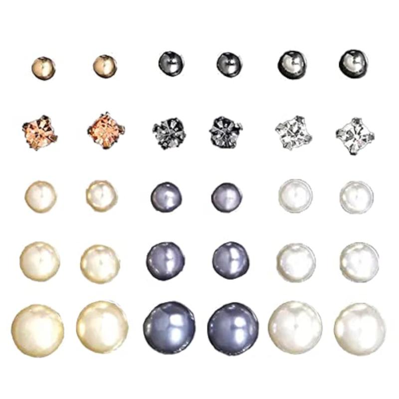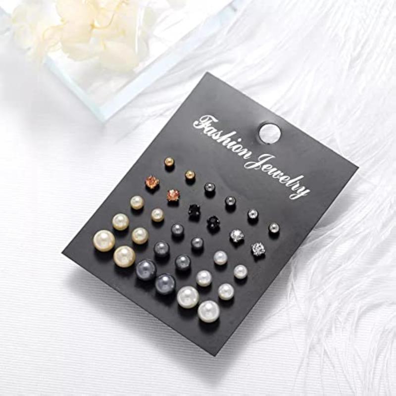 Add a pop of color to your look with this set of 15 stud earrings in various vibrant shades. Perfect for mixing and matching with different outfits.