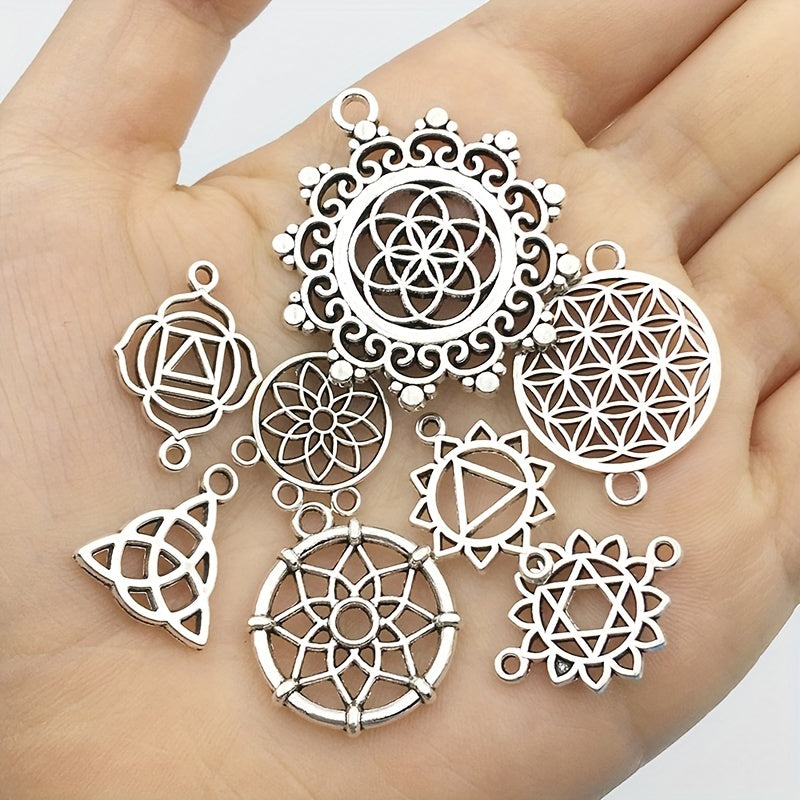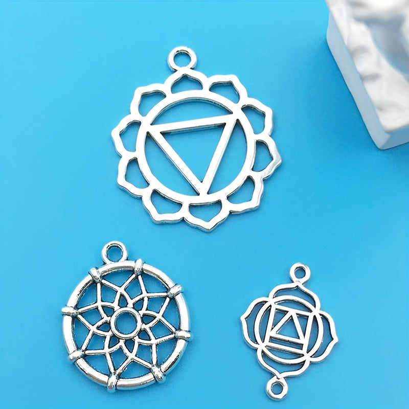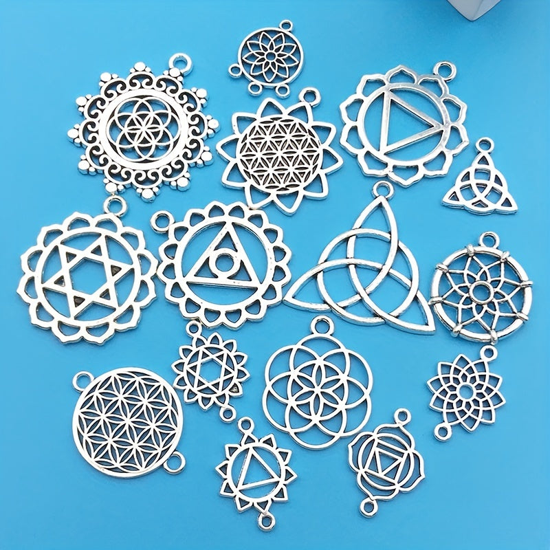 Enhance your jewelry making with this set of 15 silvery alloy hollow out pendants. Perfect for creating unique necklaces, bracelets, and earrings.