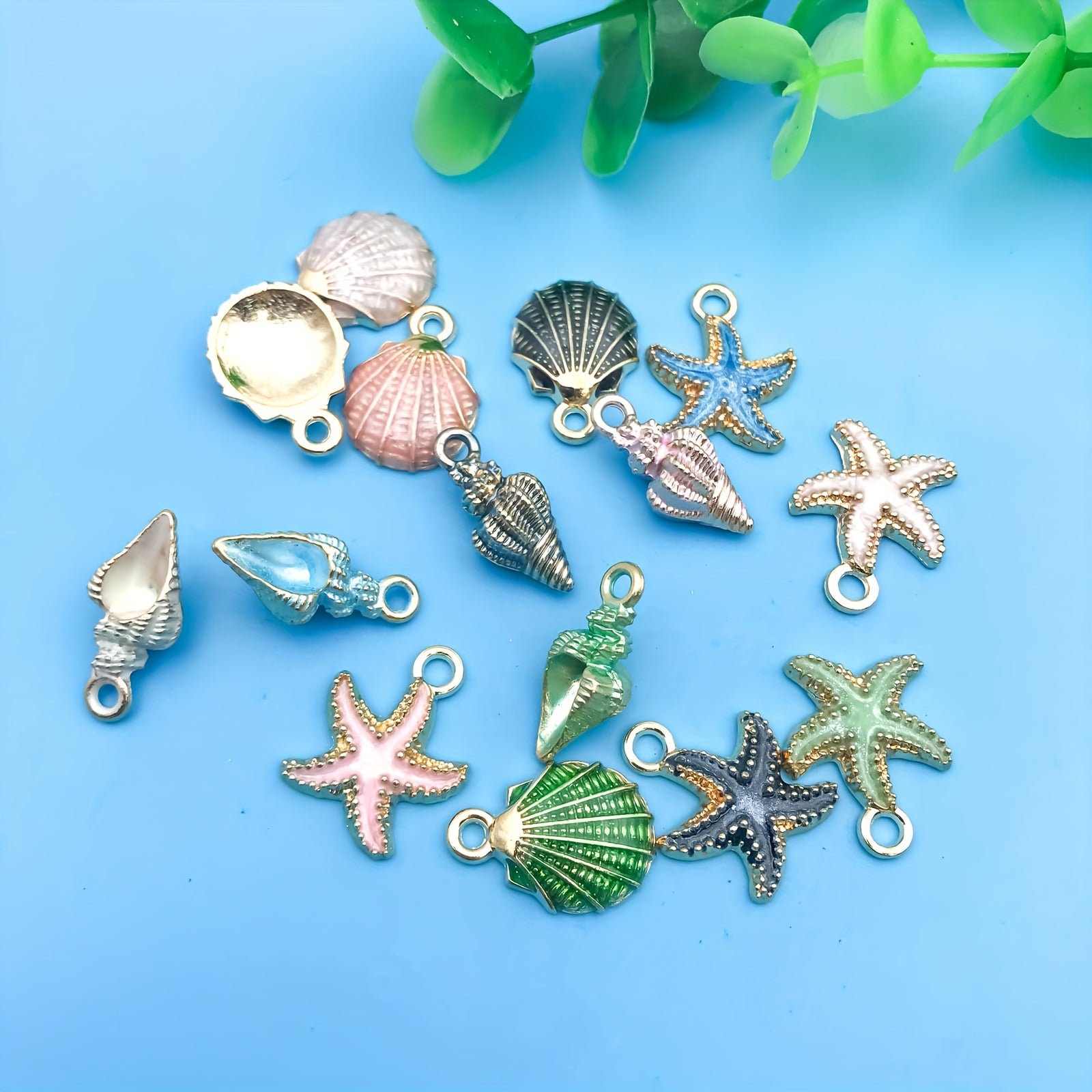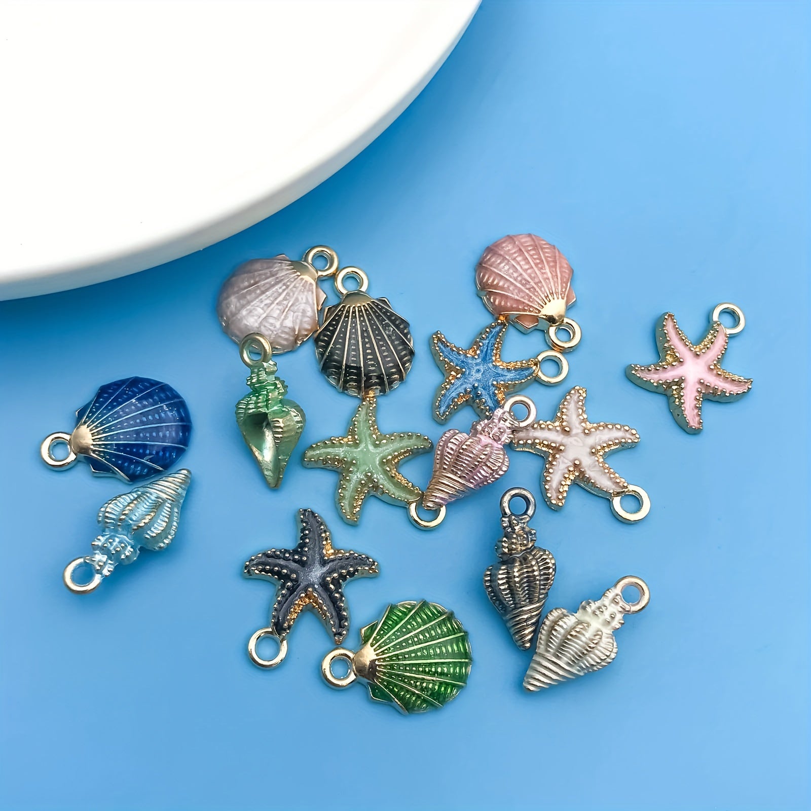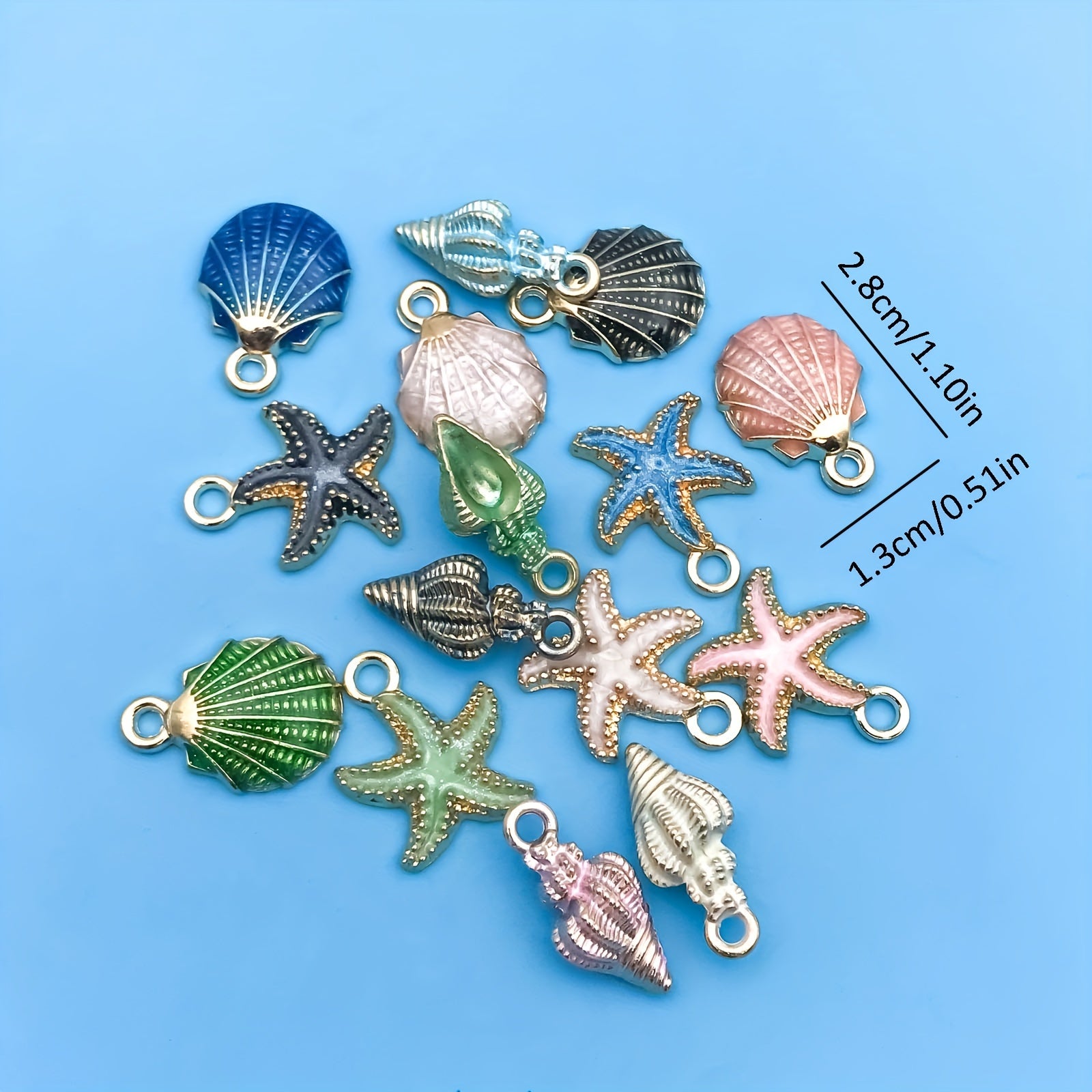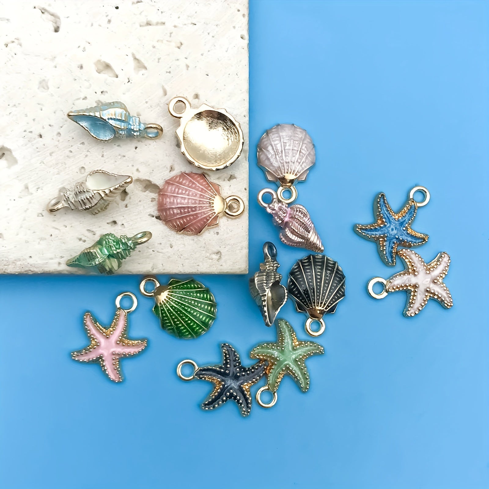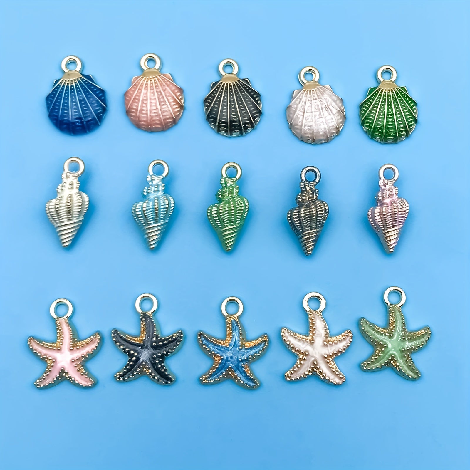 Create stunning jewelry with this set of 15 enamel marine life charms in shell, conch, and starfish shapes. Perfect for necklaces, bracelets, and earrings.