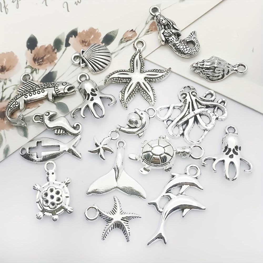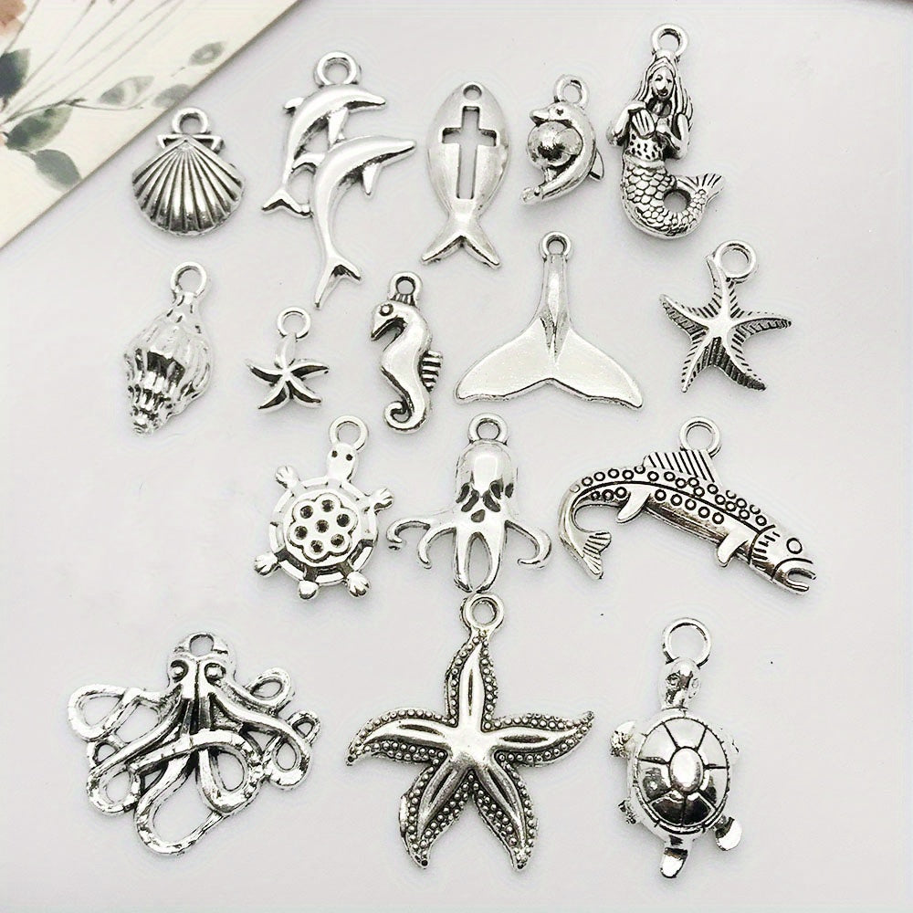 Enhance your jewelry making projects with this set of 15 Tibetan silver metal charms. Perfect for creating unique necklaces and bracelets, these charms are a must-have for any crafting enthusiast.