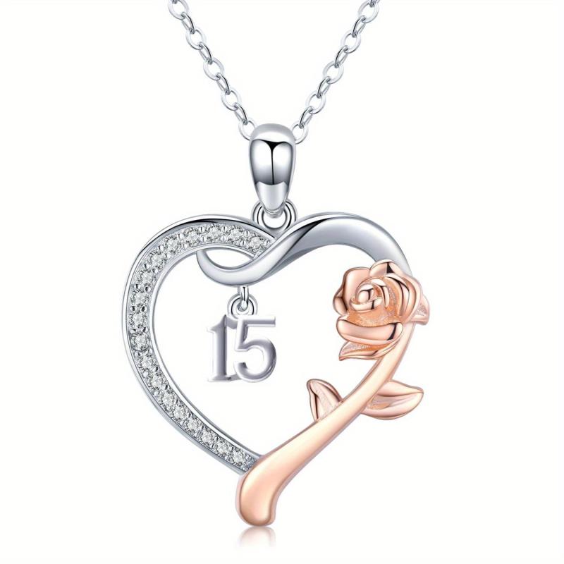 15th Birthday Necklace Roseflower Heart 925 Sterling Silver