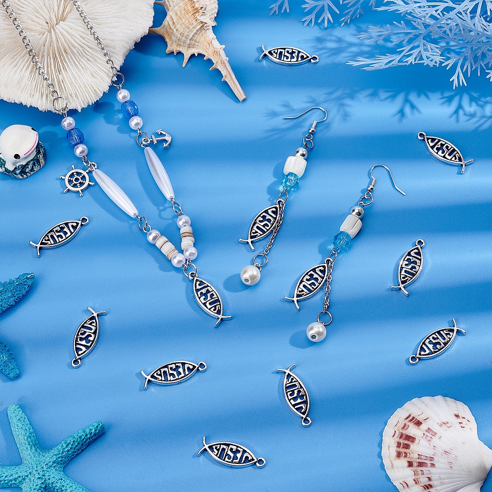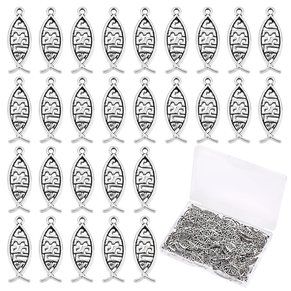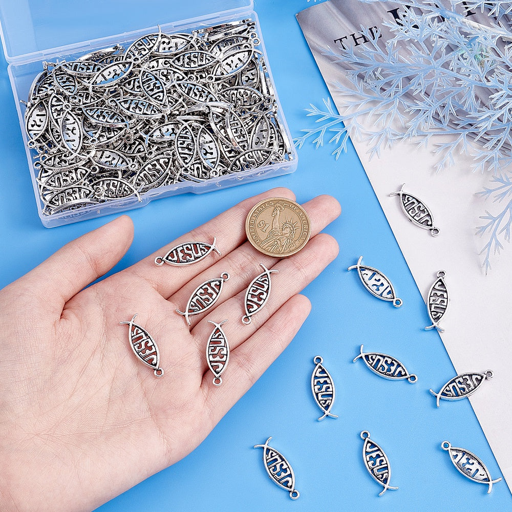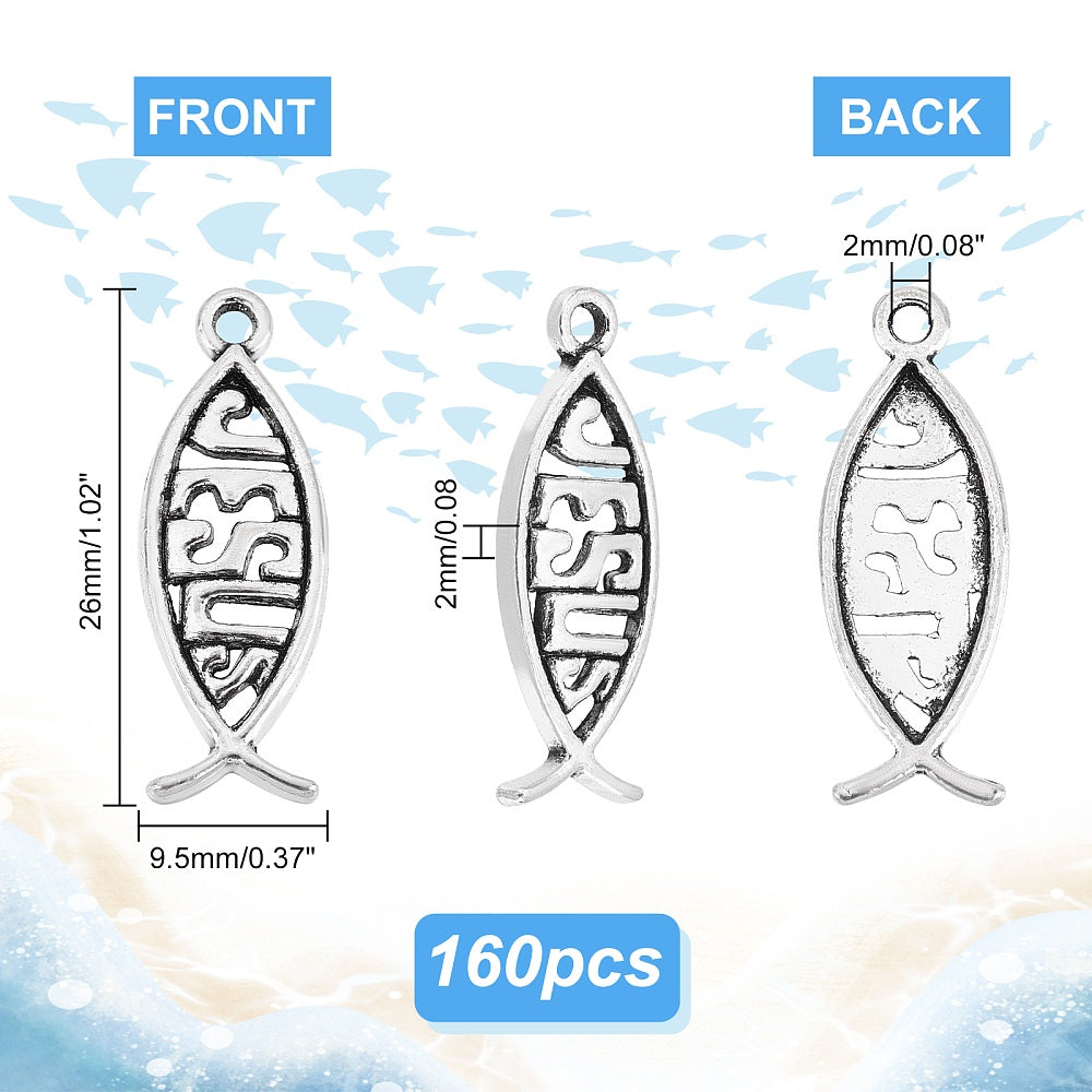 Enhance your jewelry creations with this set of 160 antique silvery hollow fish alloy pendants. Perfect for earrings, bracelets, necklaces, and more.