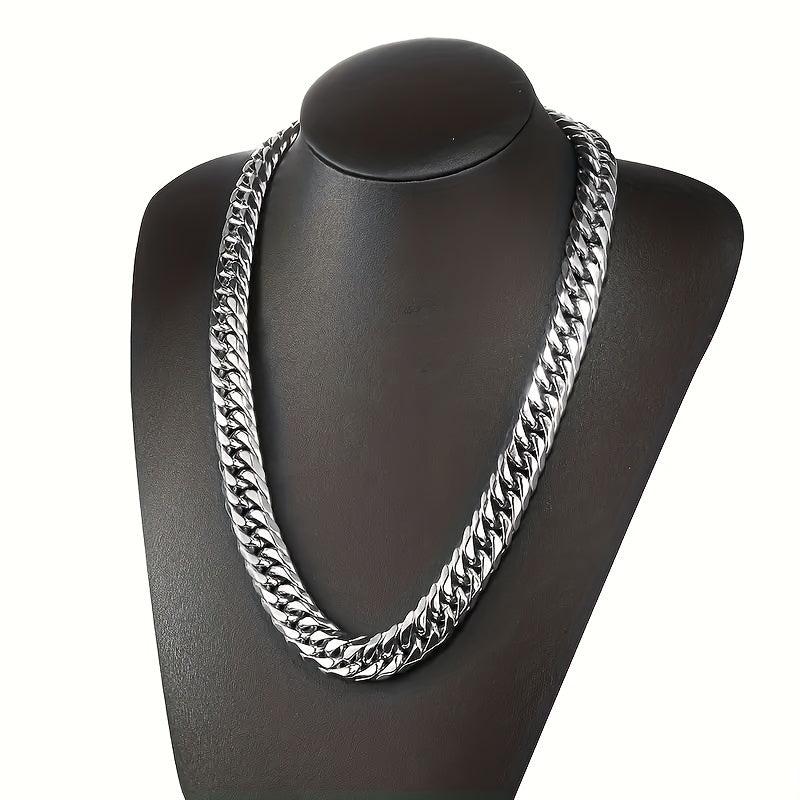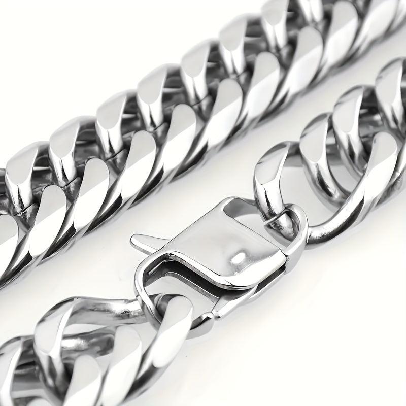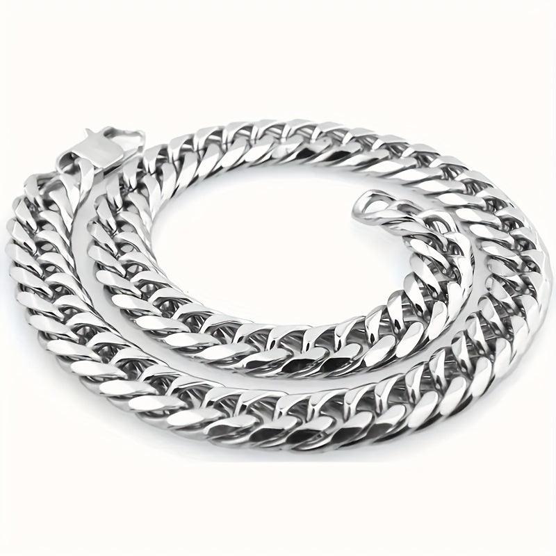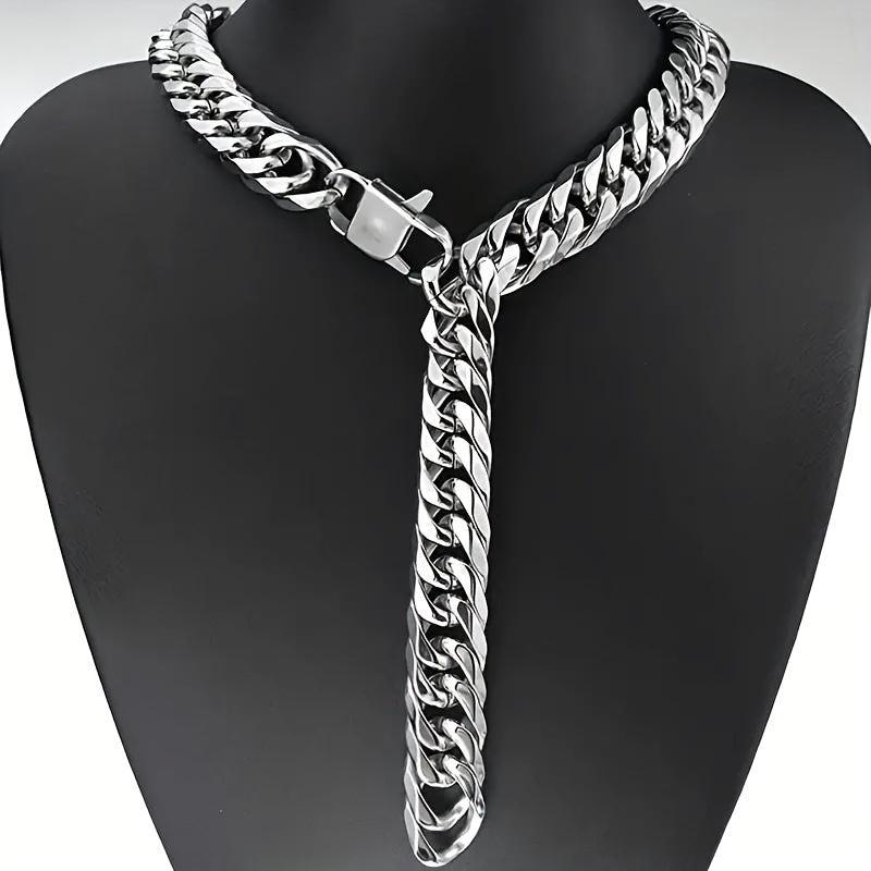 This stainless steel chain necklace is a durable and versatile accessory that adds a touch of hip hop style to your look. Suitable for both men and women, this silvery chain is a stylish addition to any outfit.