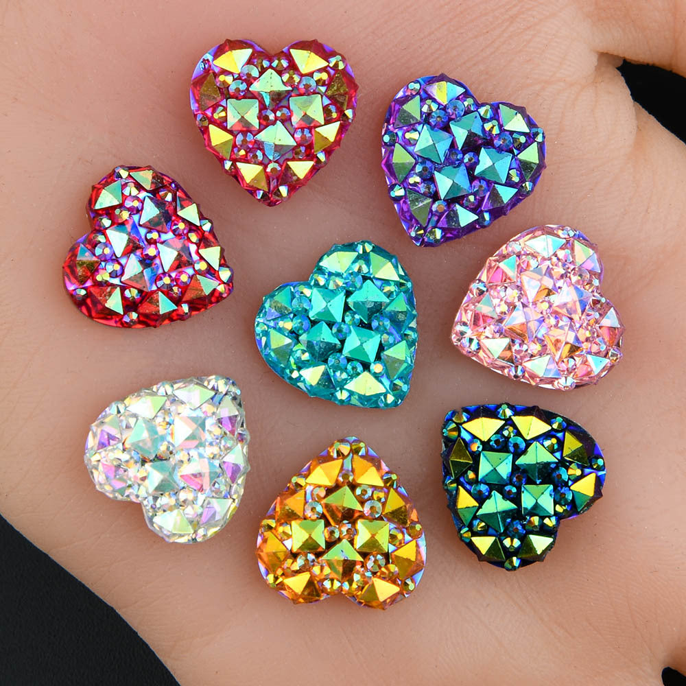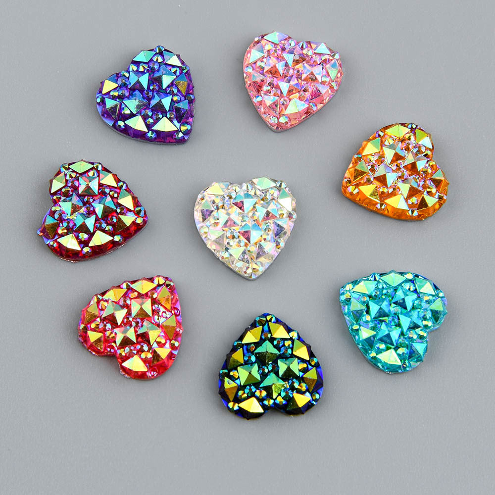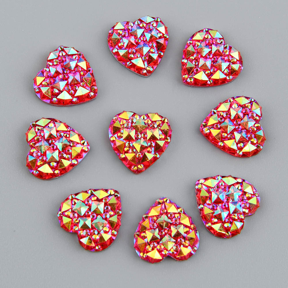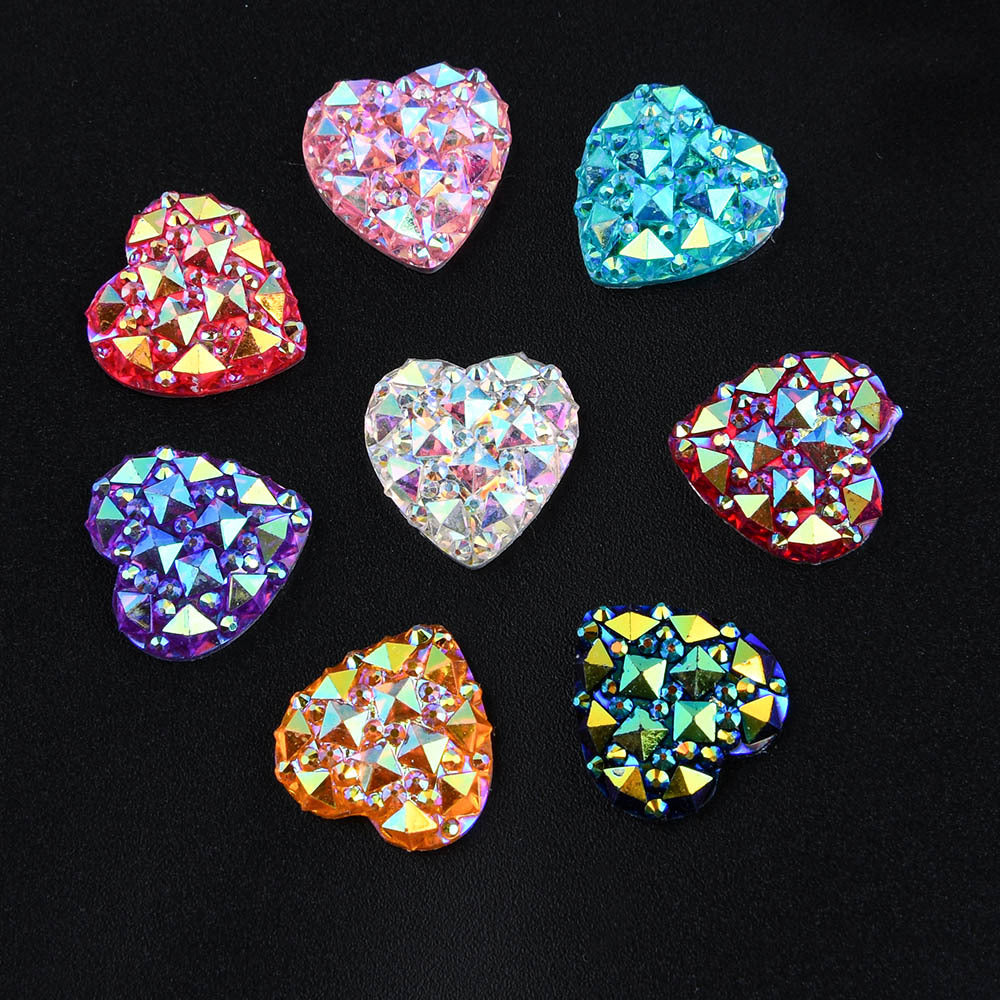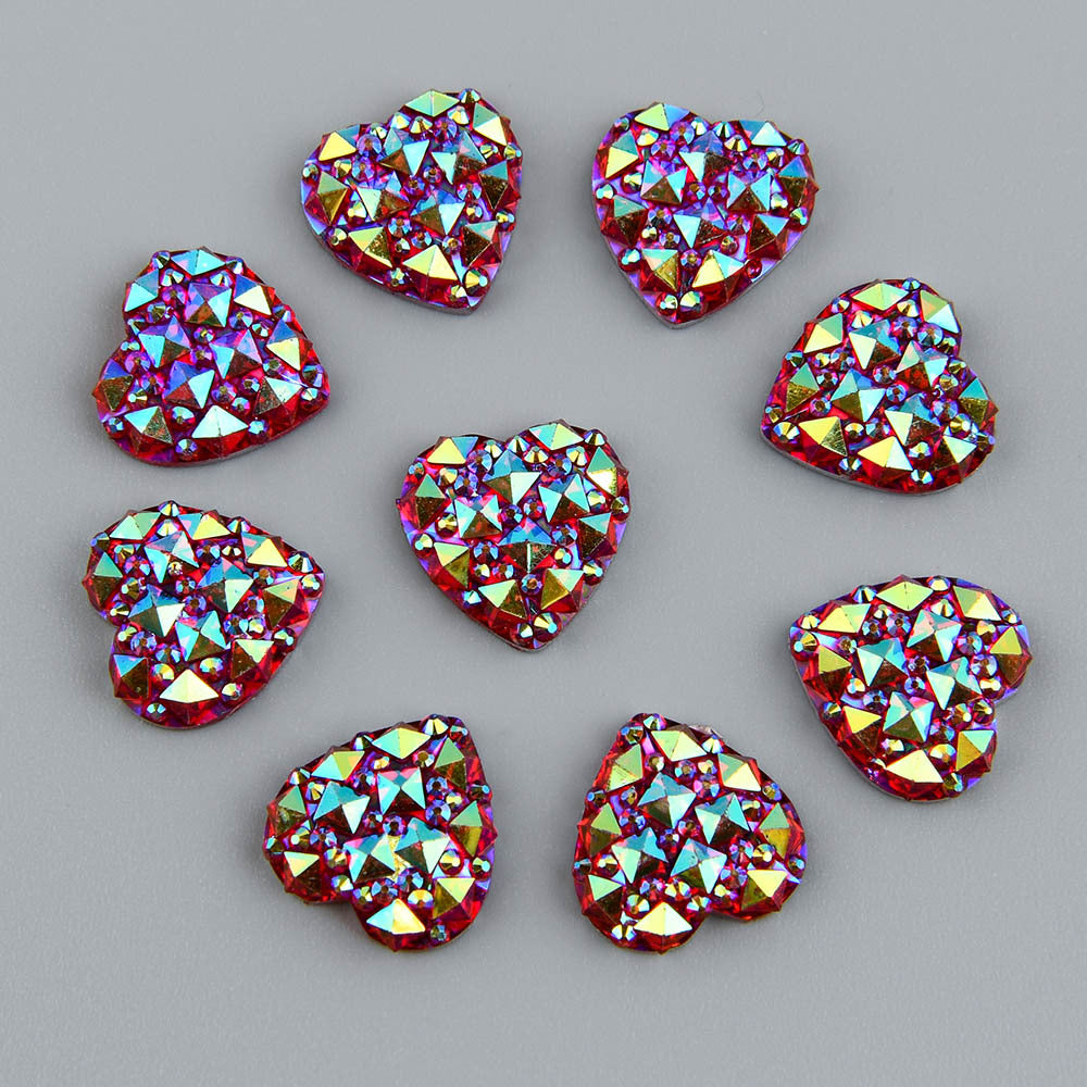 These 1.0in resin rhinestones feature an ore surface heart shape, ideal for crafts, jewelry making, wedding embellishments, DIY appliques, setting in bezel trays, and pendants.