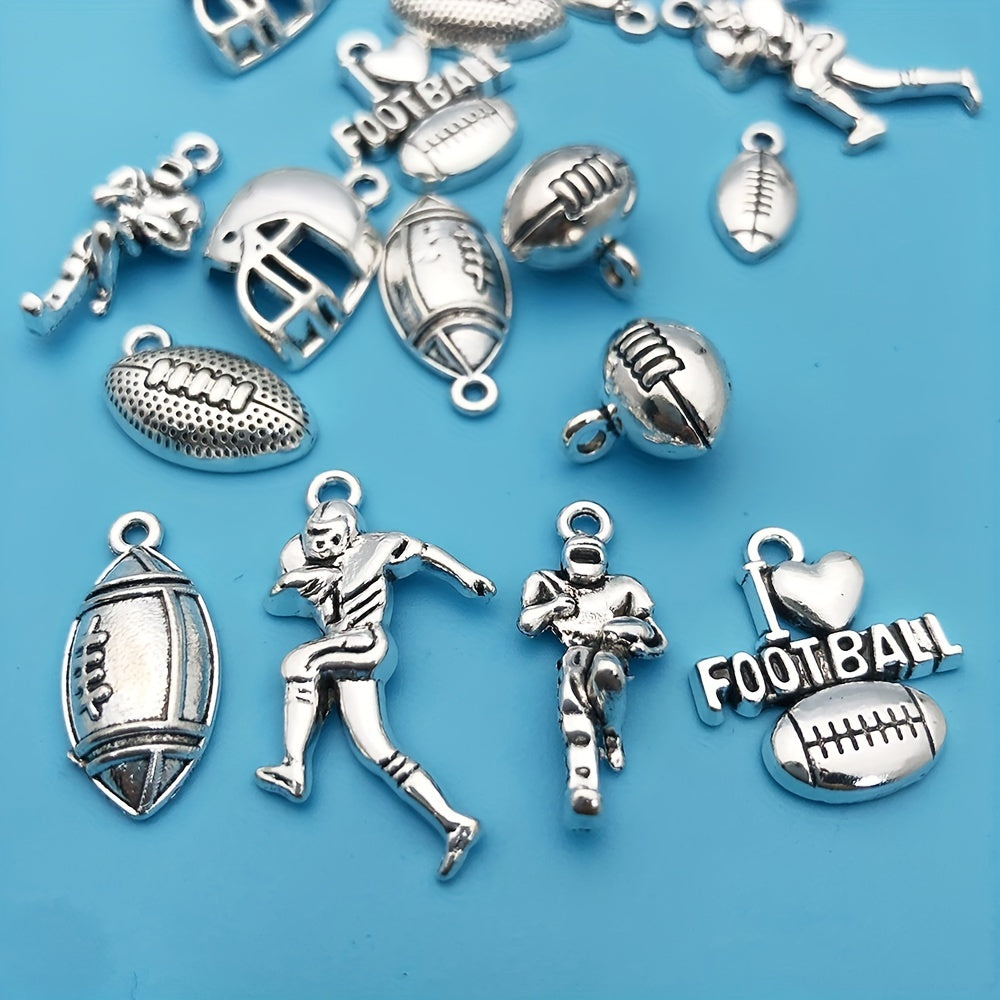 These antique silver rugby football sports charms pendants are perfect for jewelry making, findings, and crafting. They are great accessories for DIY necklaces and bracelets.