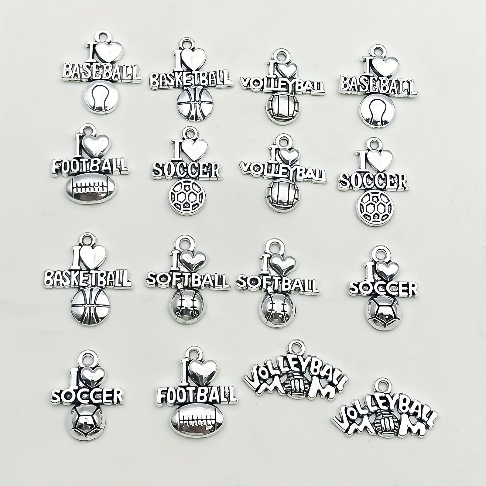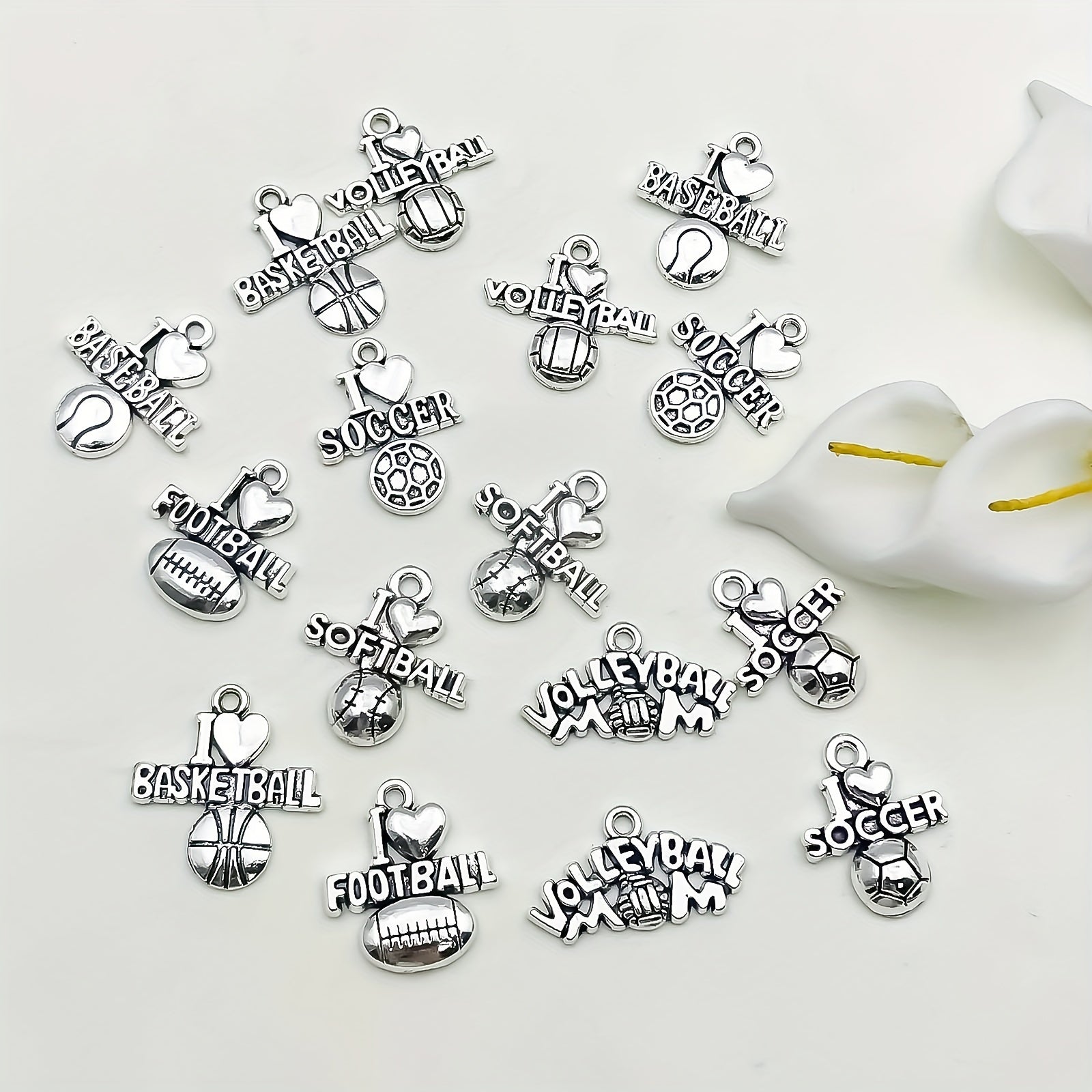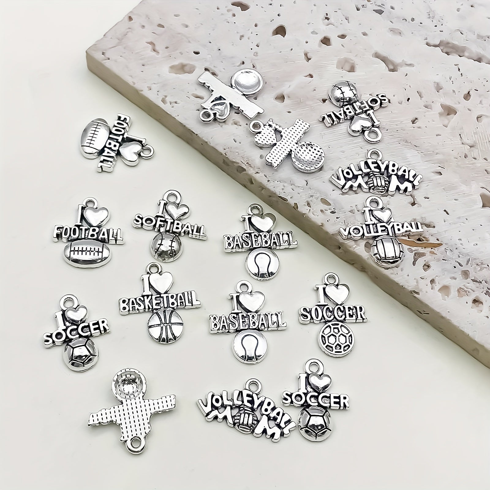 16pcs Antique Silvery Sports Series Alloy Pendants for DIY Jewelry Making