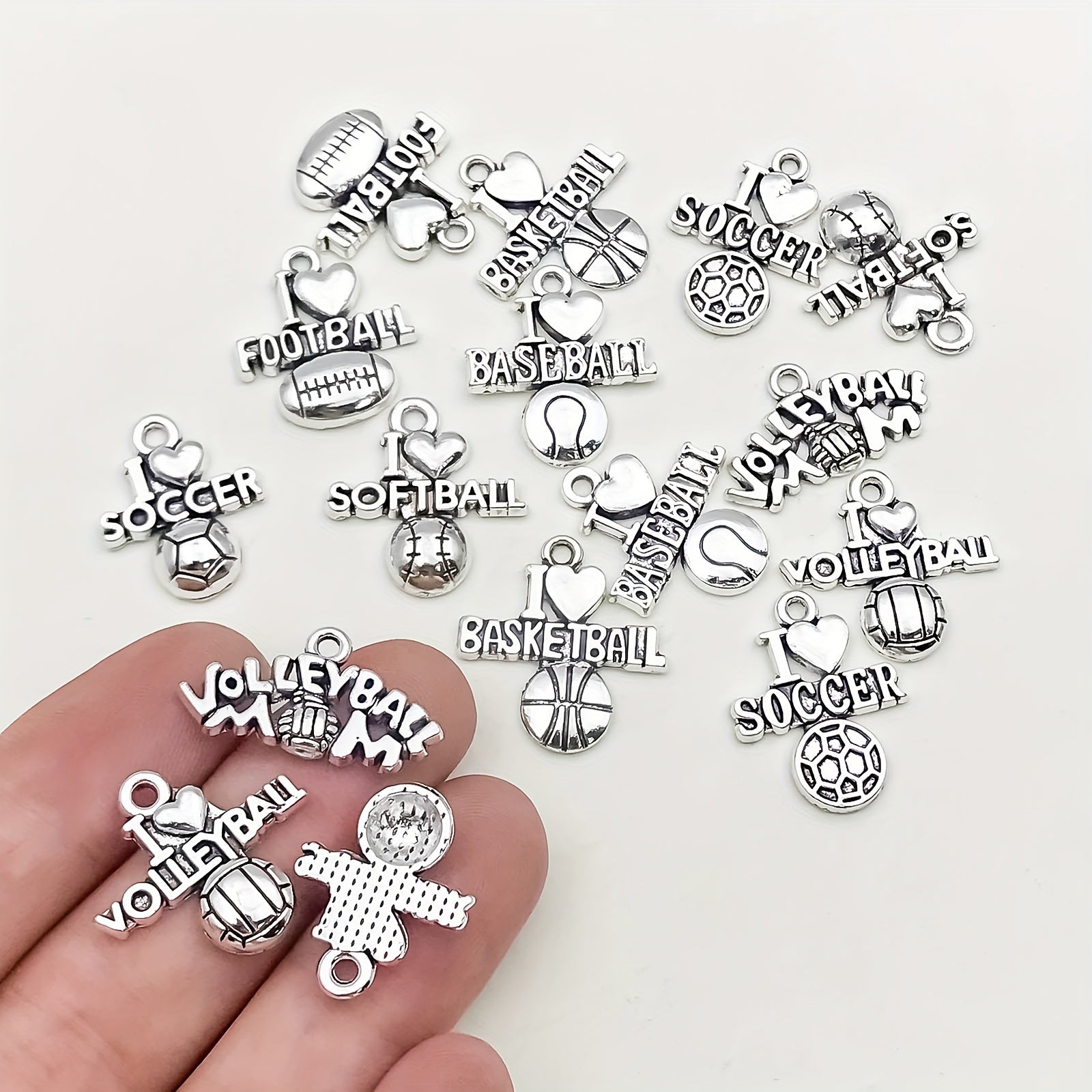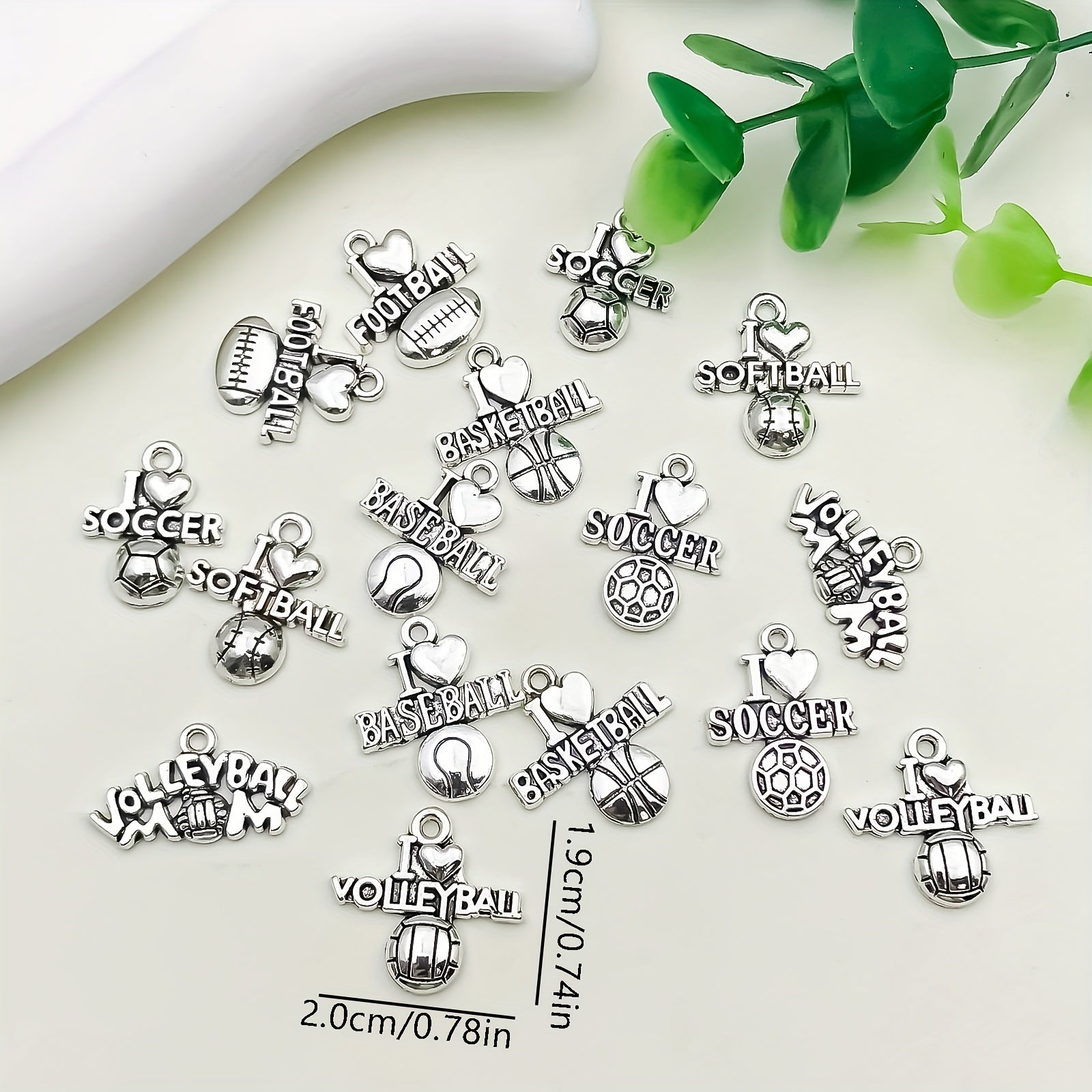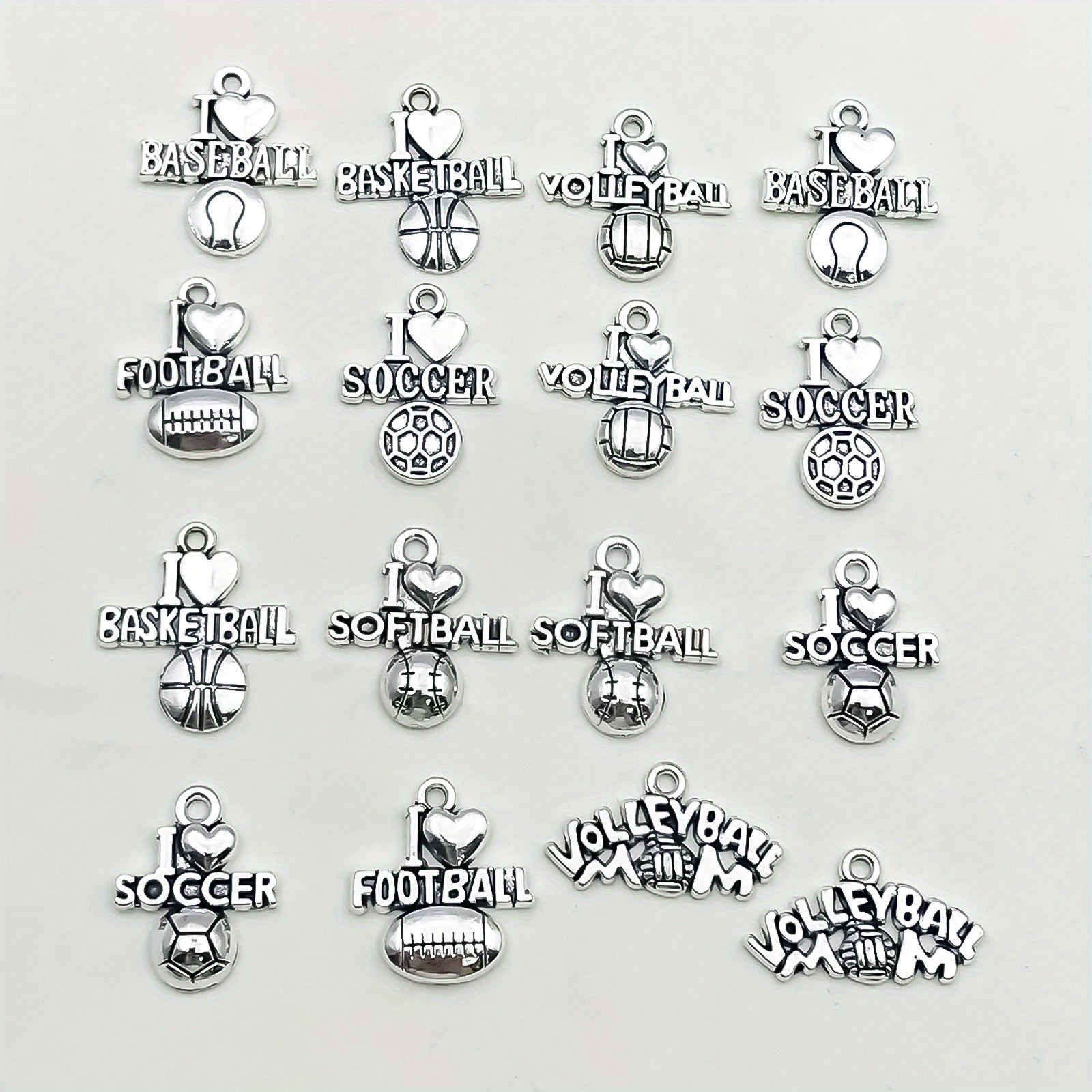 Create unique earrings, bracelets, necklaces, and accessories with this set of 16 antique silvery alloy pendants featuring sports series letters detail. Perfect for DIY projects.