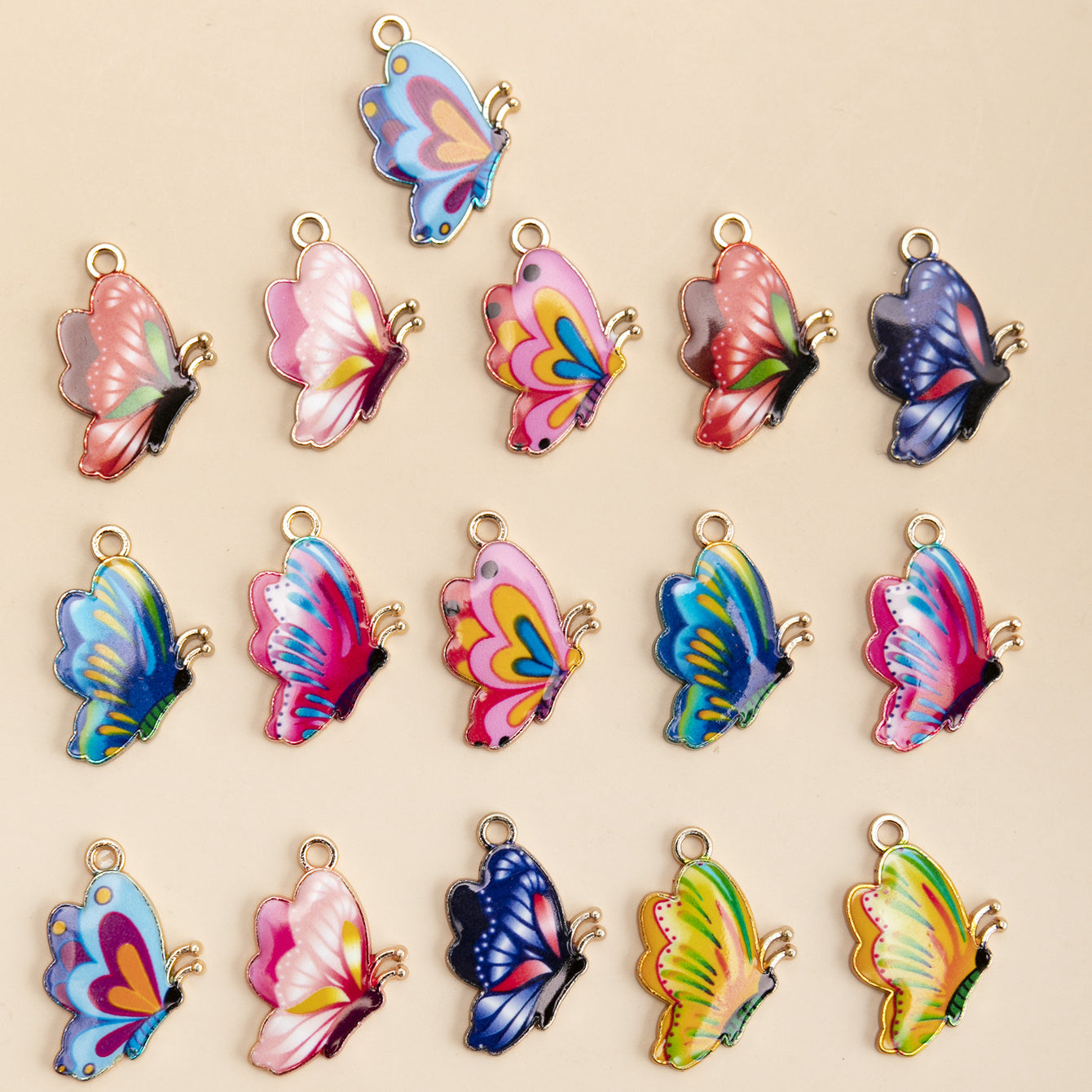 Create stunning jewelry with this set of 16 mixed enamel butterfly charms. Perfect for making earrings, necklaces, and other accessories.