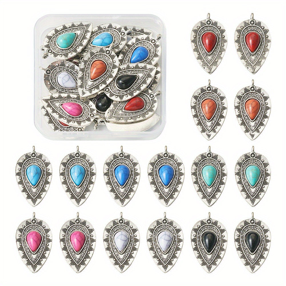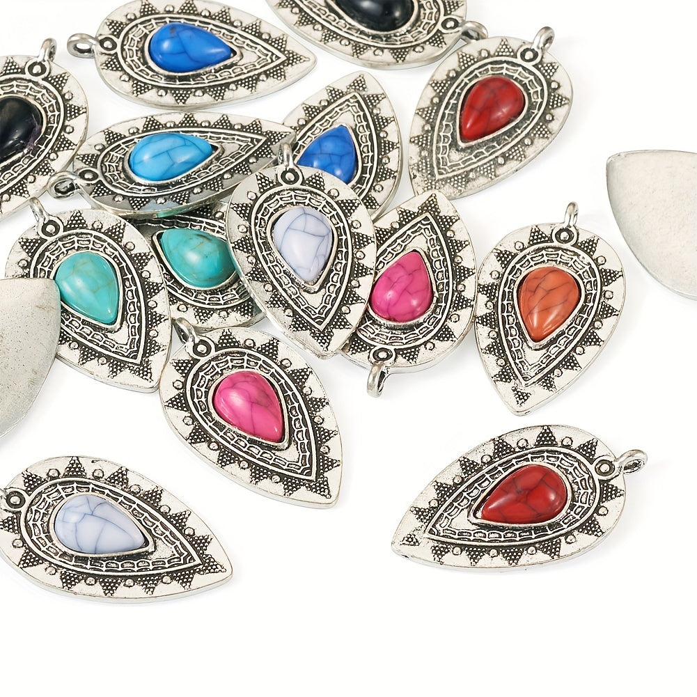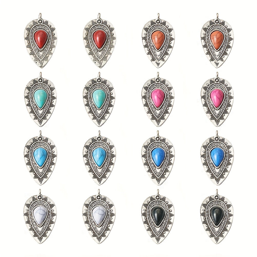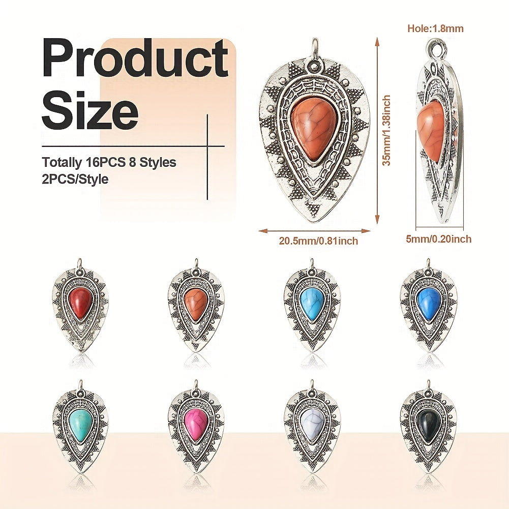 Add a touch of vintage charm to your DIY jewelry projects with these colorful gemstone teardrop shape pendants. Perfect for earrings, bracelets, necklaces, and more. Each set includes 16 pieces in 8 unique styles.