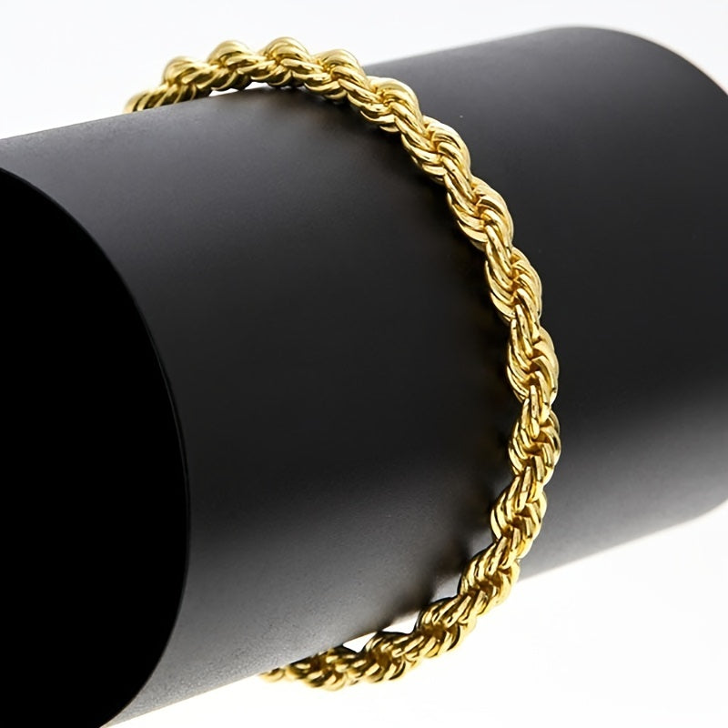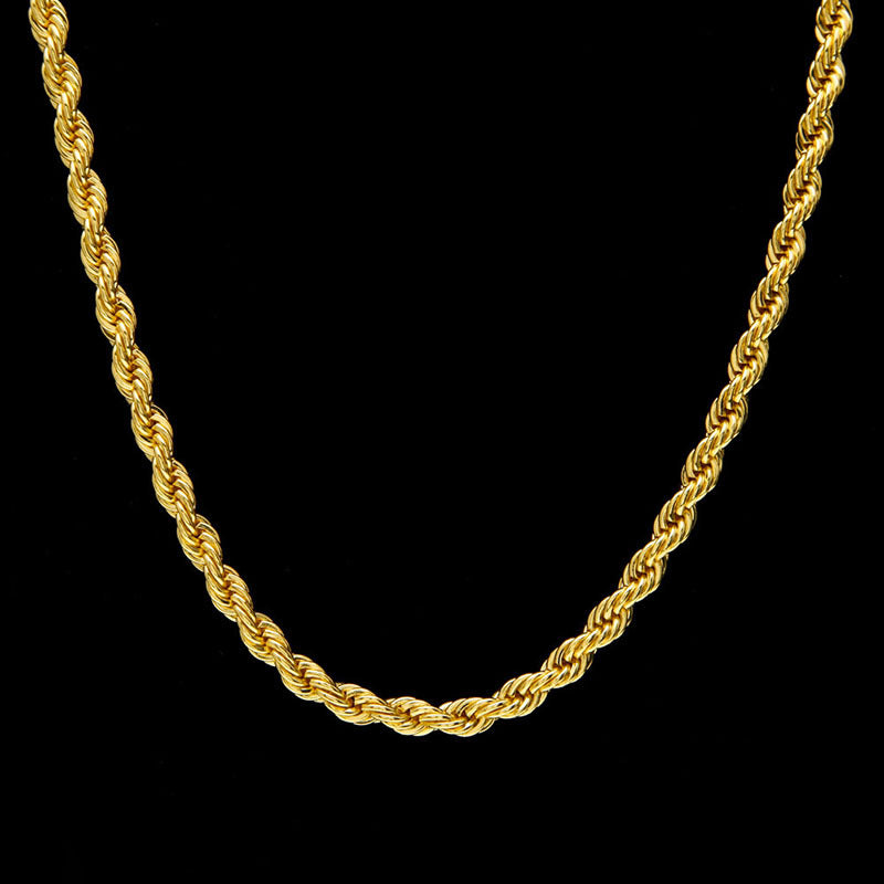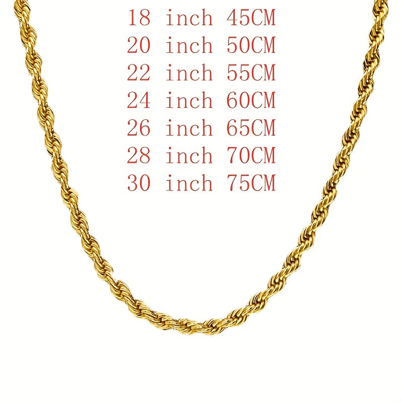 This twist chain necklace is made of golden plated 18K material, ideal for couples. The 4mm coarse twist design adds a stylish touch to any outfit.