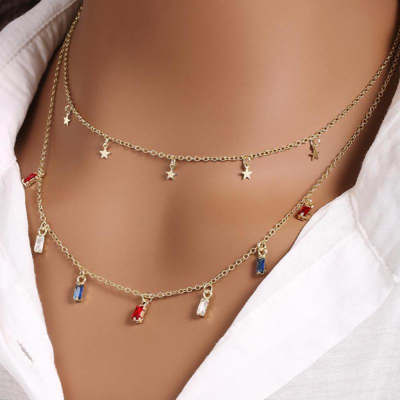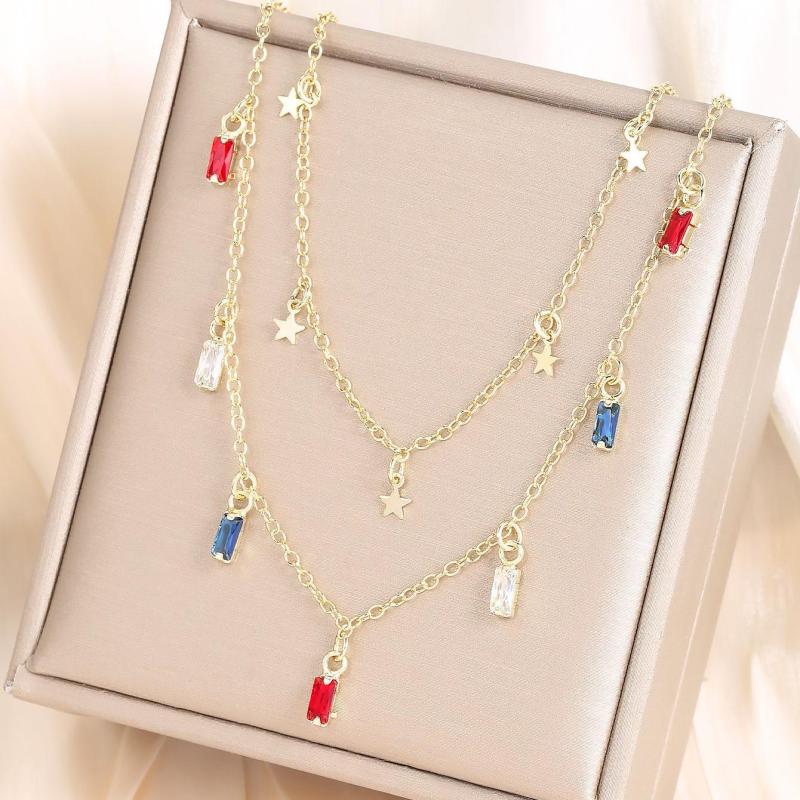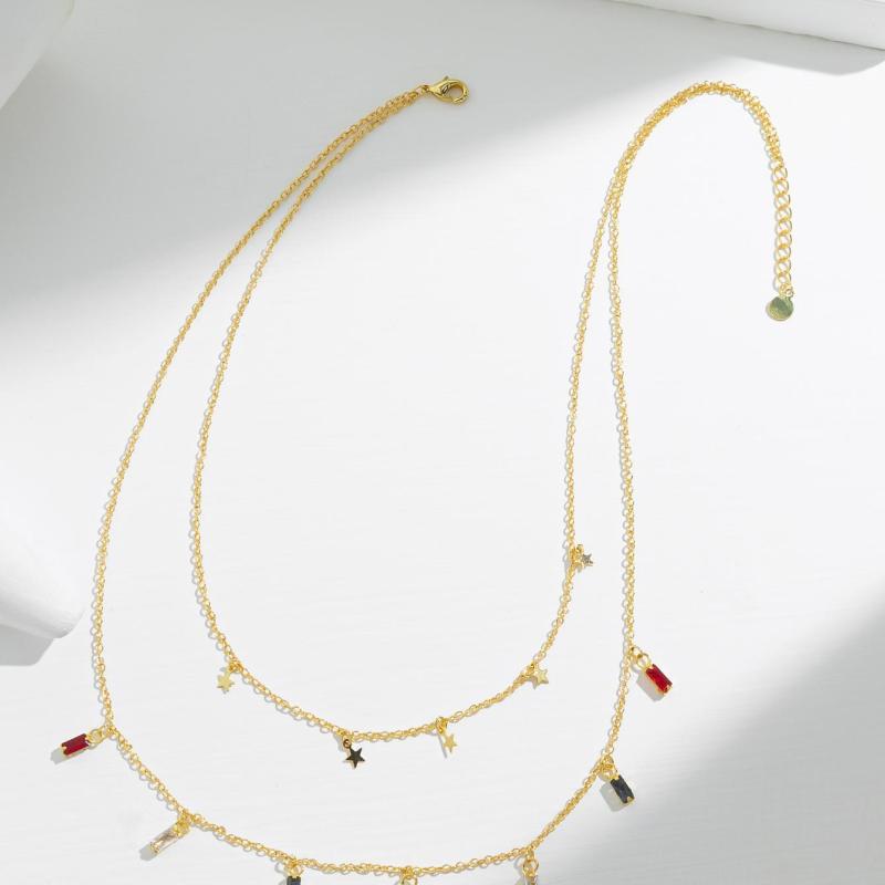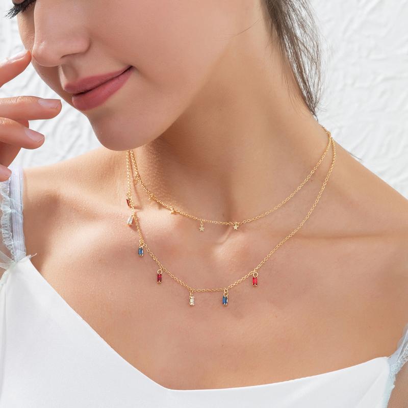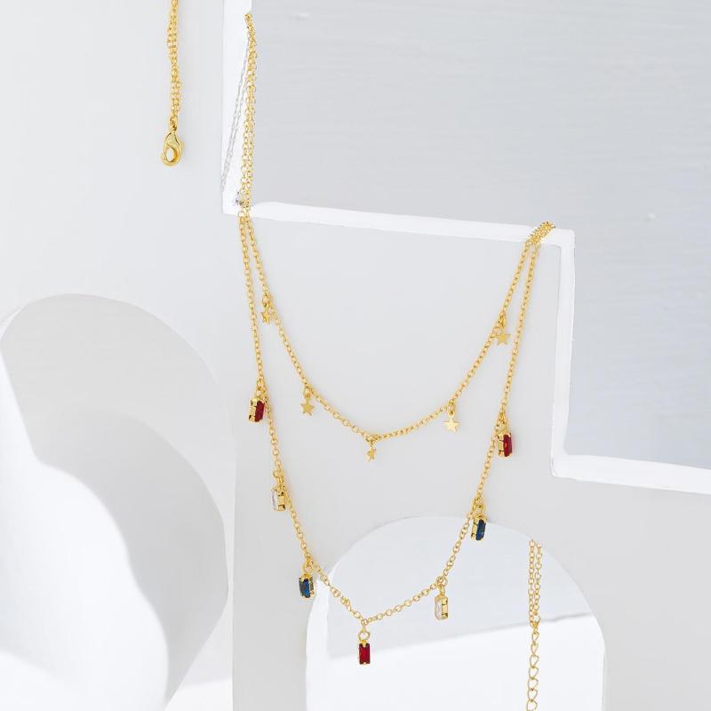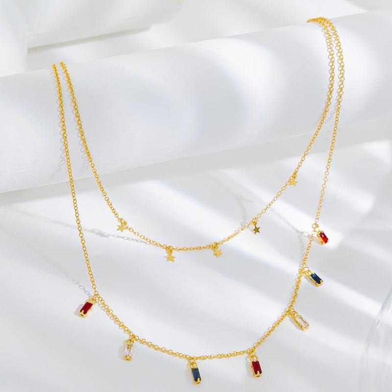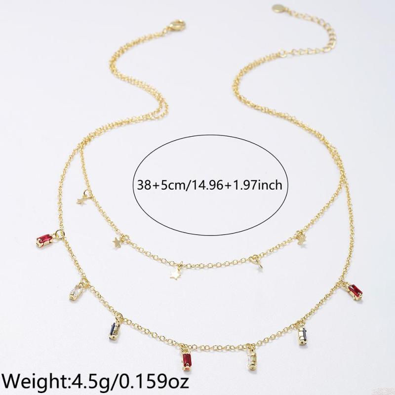 Elevate your style with this stunning double layer necklace featuring colorful synthetic zirconia tassels. The 18K golden plated copper chain adds a touch of elegance, making it perfect for daily wear in all seasons.