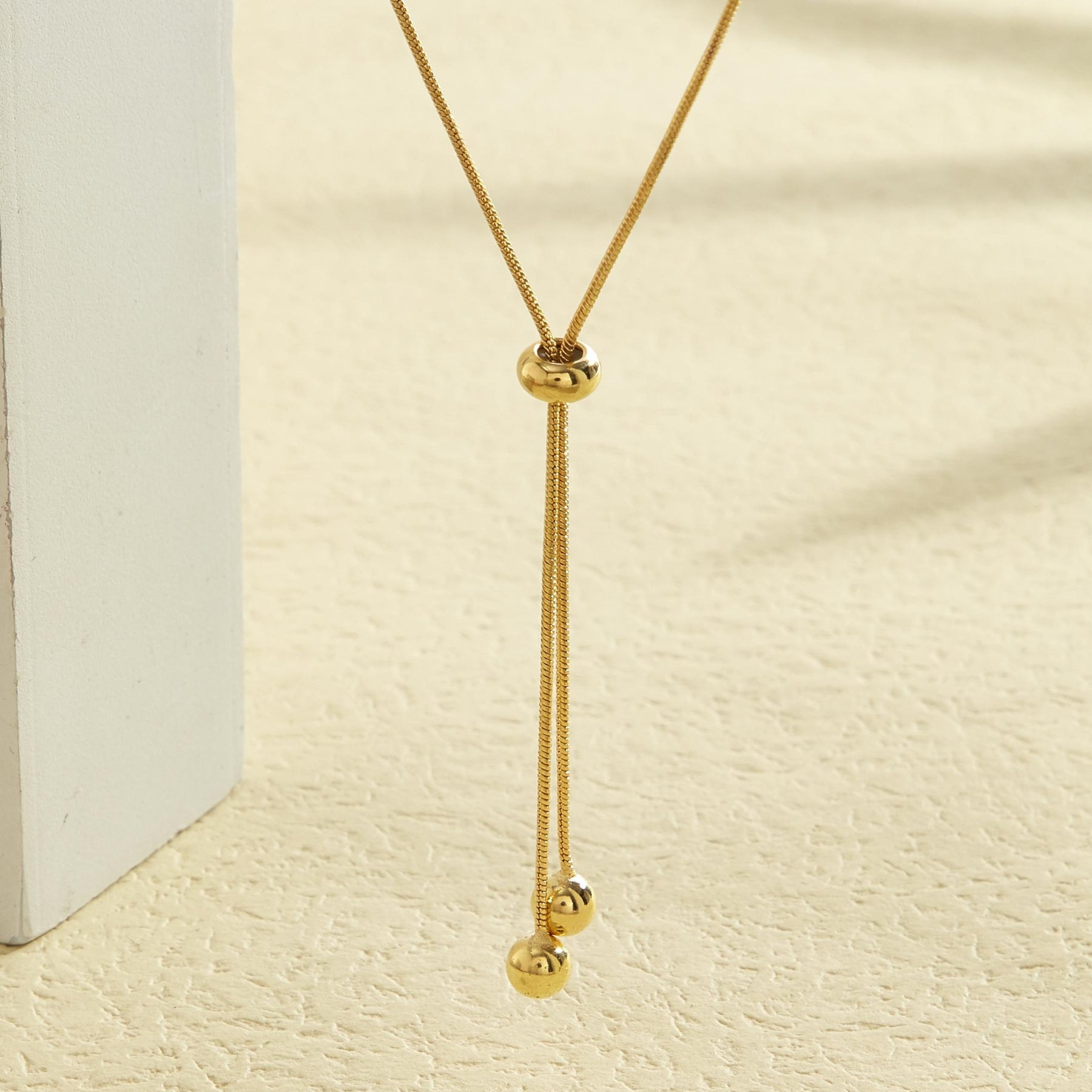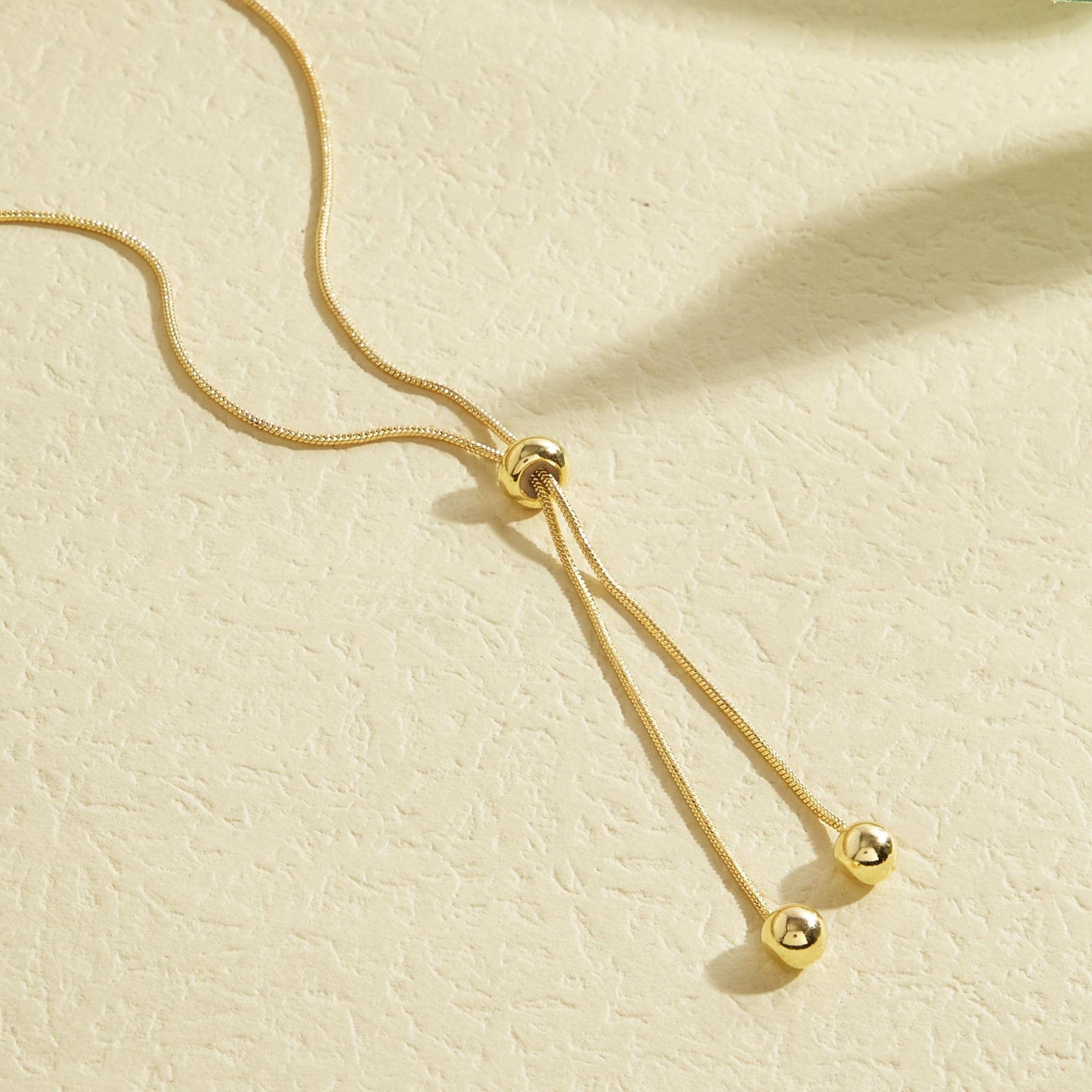 Elevate your style with this adjustable 18K gold plated necklace featuring small round beads. Tarnish resistant and durable, perfect for everyday and formal wear.