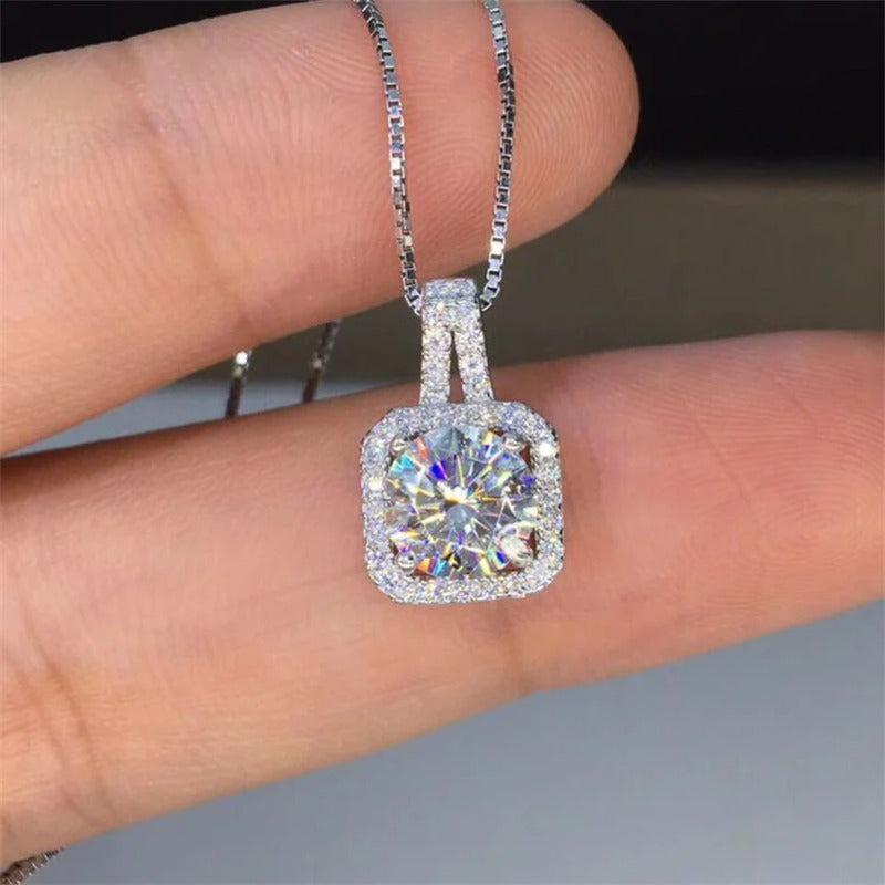 Elegant pendant necklace featuring a sparkling 1 2ct cubic zirconia square stone. Perfect for daily wear or special occasions like weddings. Makes a stunning Valentine's gift for women.
