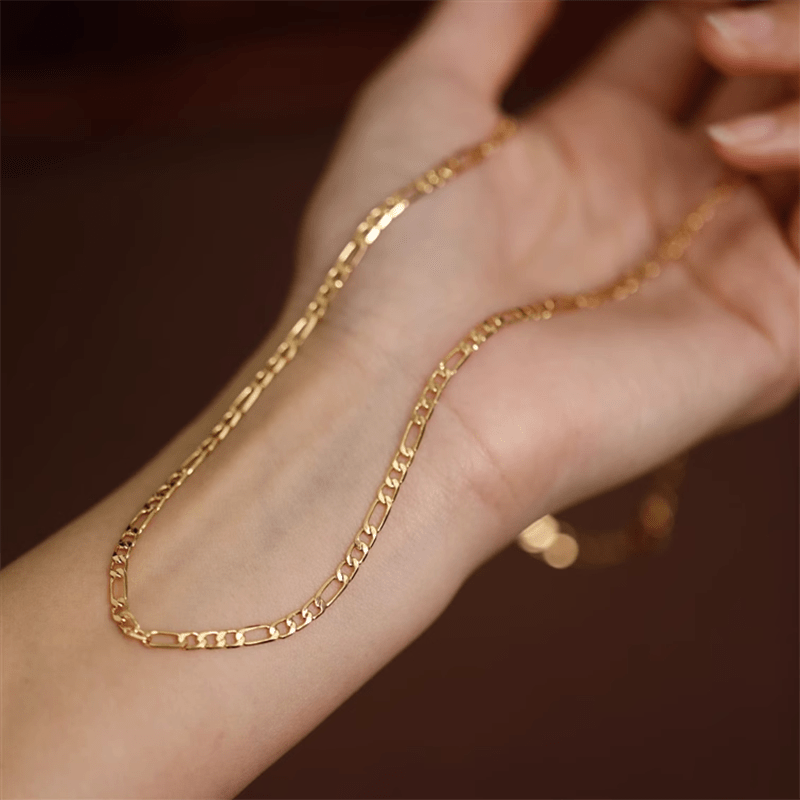 This stylish chain necklace is plated with 18K gold and made of copper, perfect for daily wear in all seasons. It makes a great Valentine's gift for her.