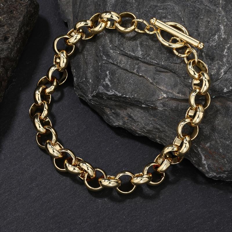 Stand out with this hip hop style bracelet featuring a trendy OT buckle. Made of copper with 18K gold plating. Perfect for music festivals and vacations, suitable for all seasons.