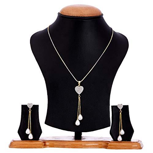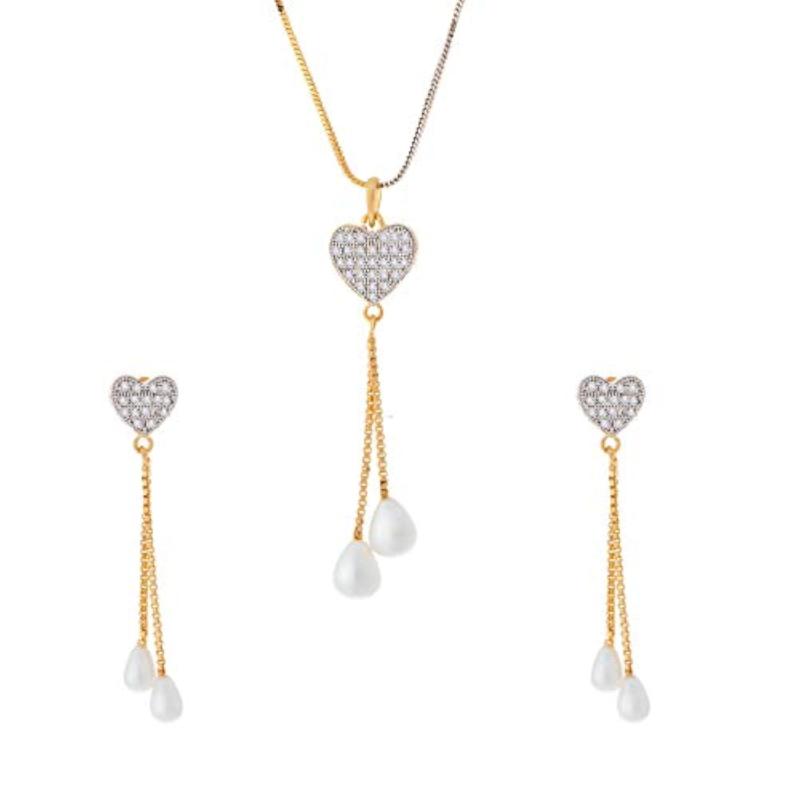 Add a touch of elegance to your look with this stunning 18K gold-plated heart pendant and earrings set featuring sparkling cubic zirconia stones.