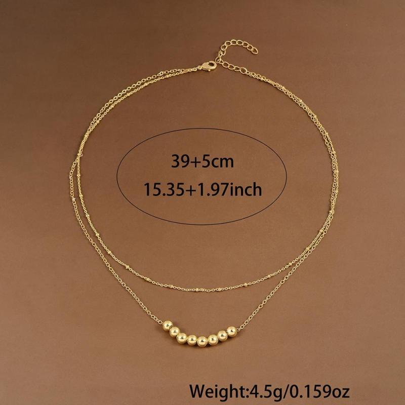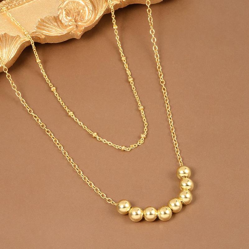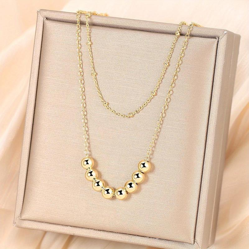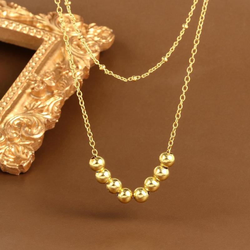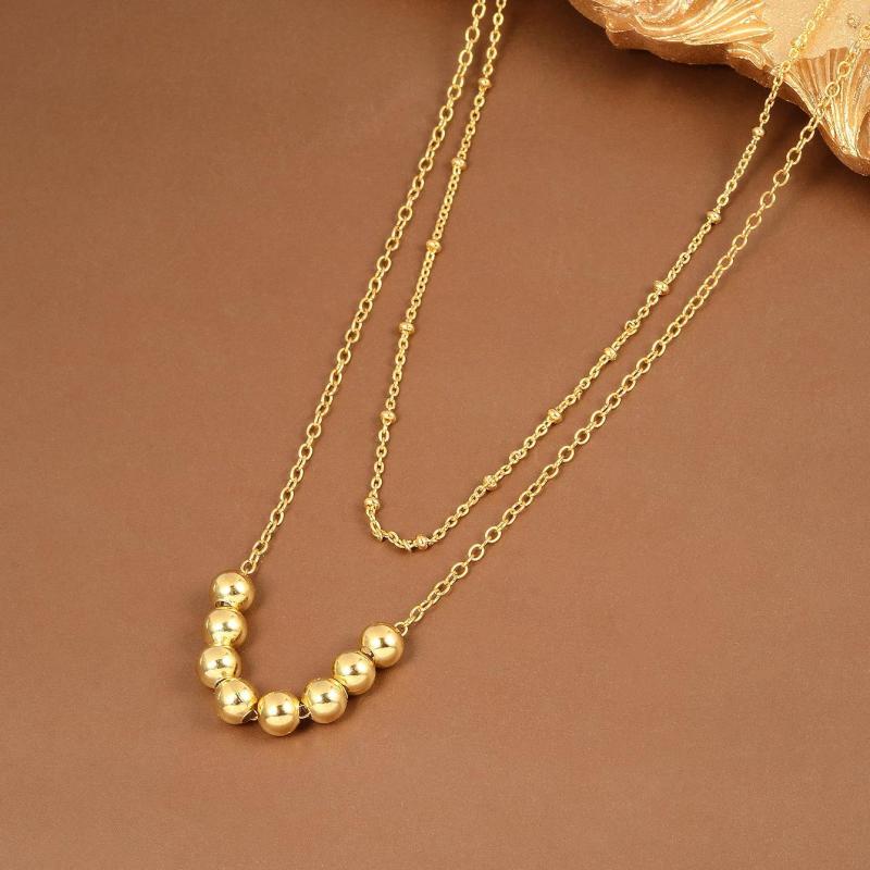 Elevate your style with this stunning 18K gold plated double layered necklace featuring rotating beads. Made of high-quality copper, this elegant jewelry piece is sure to make a statement.