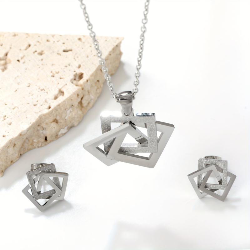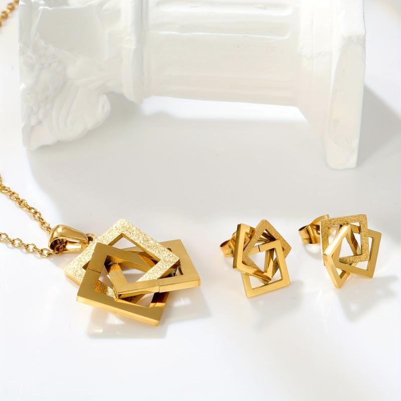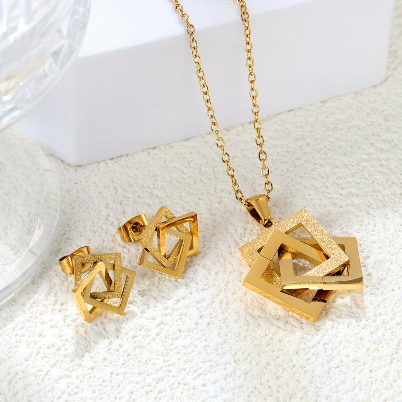 Add a touch of modern elegance to your summer look with this golden plated titanium steel jewelry set. Perfect as a gift for mothers or a festive accessory for any occasion.