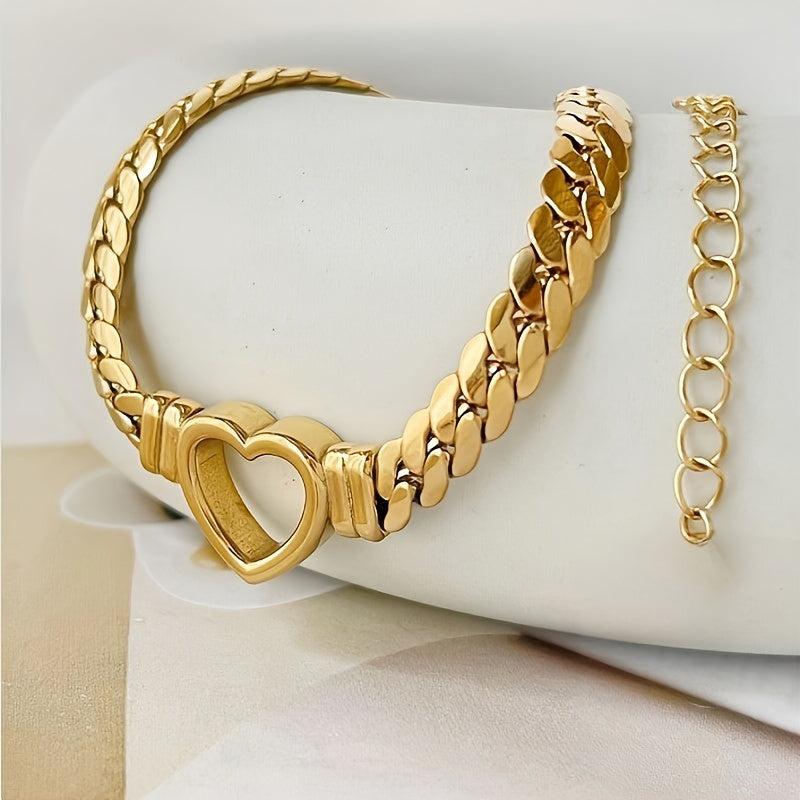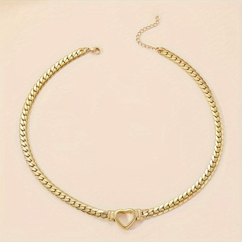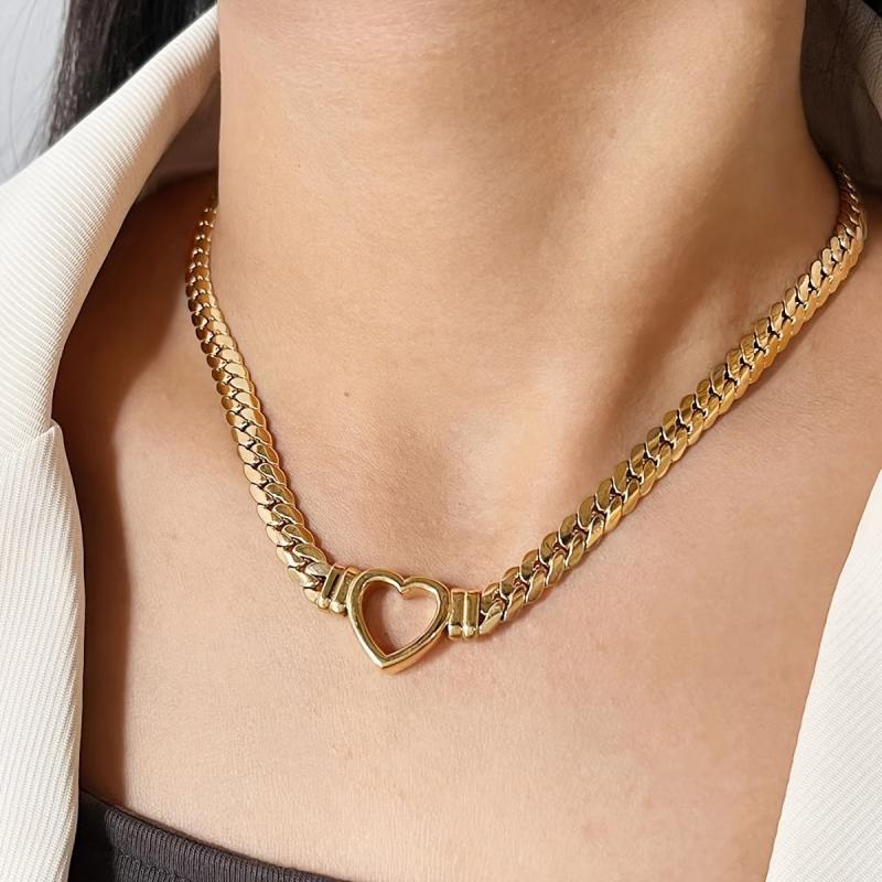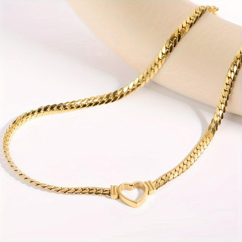 Elegant flat chain necklace with heart pendant, perfect for weddings or casual attire. This necklace is a great Christmas gift for your girlfriend.