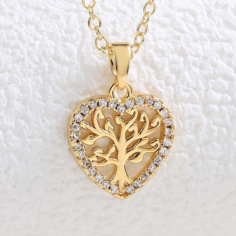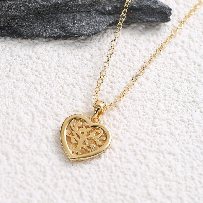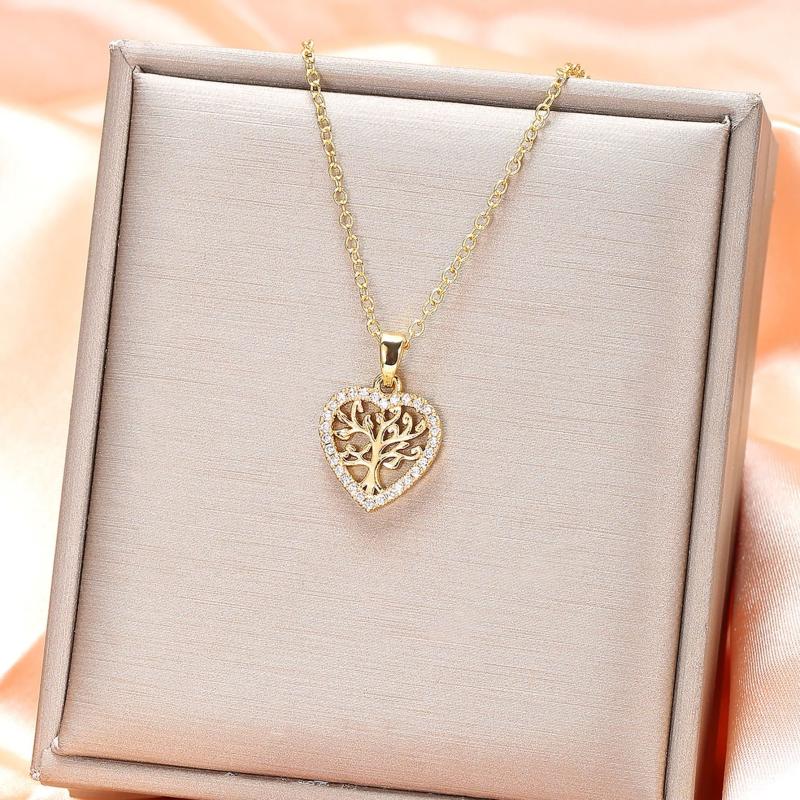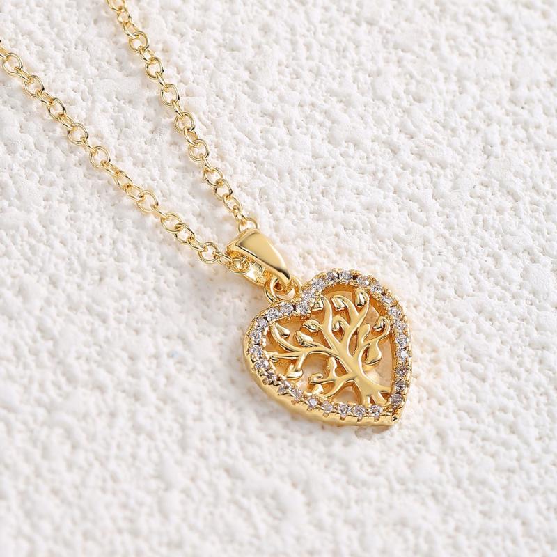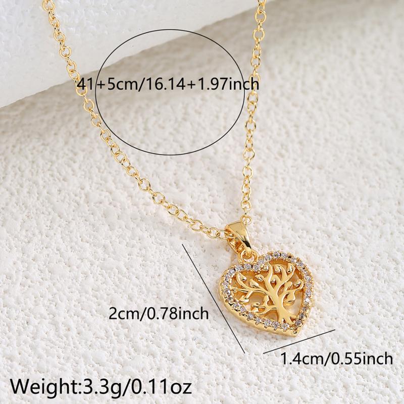 This elegant necklace features a heart-shaped tree of life design with synthetic cubic zirconia accents. Perfect for daily wear or special occasions.