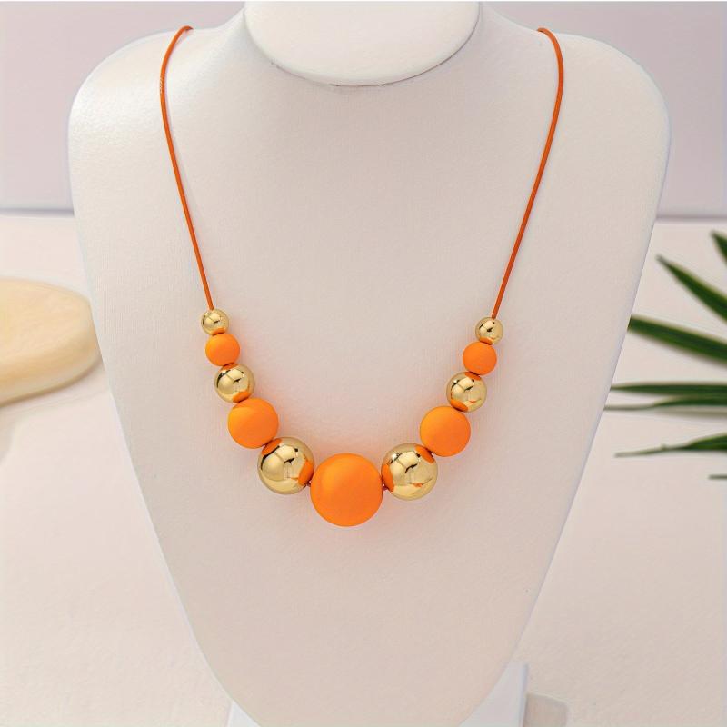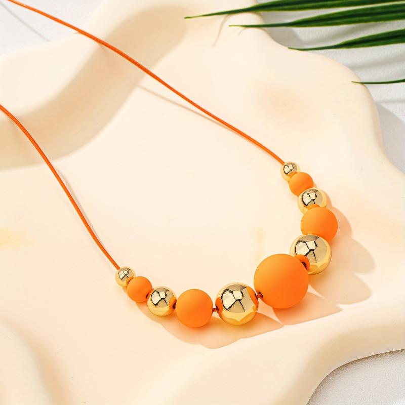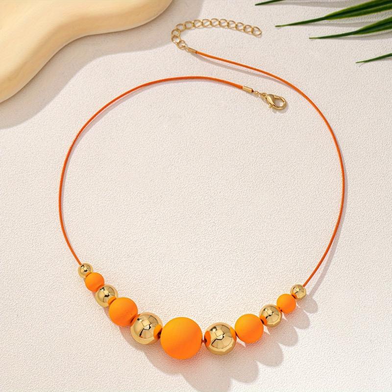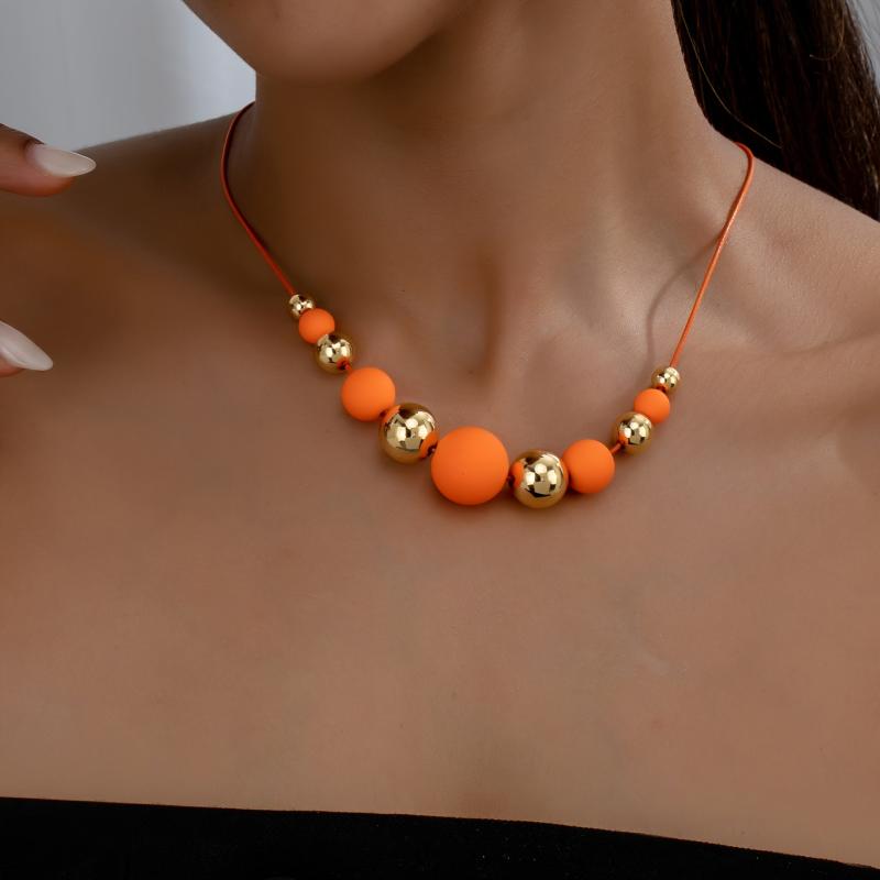 Elegant and stylish choker necklace with beautiful orange acrylic beads. The 18K gold plating adds a touch of luxury.