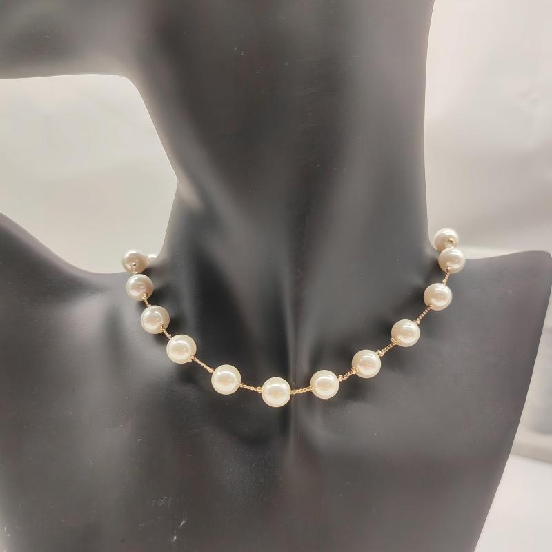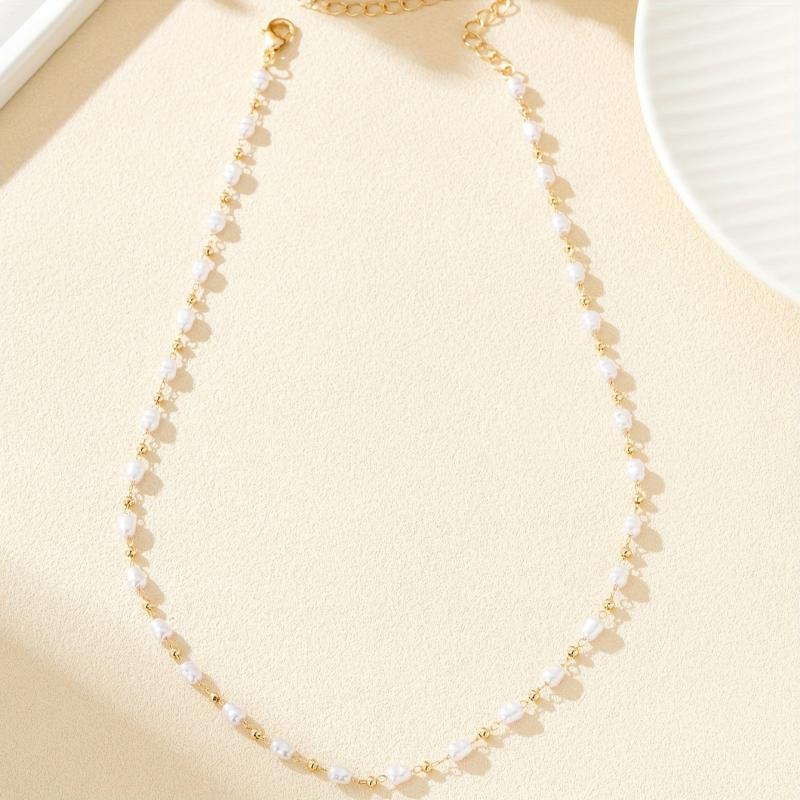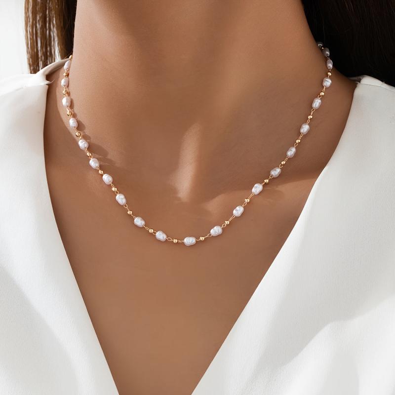 Elegant 18K gold plated copper necklace with pearls, perfect for daily wear.