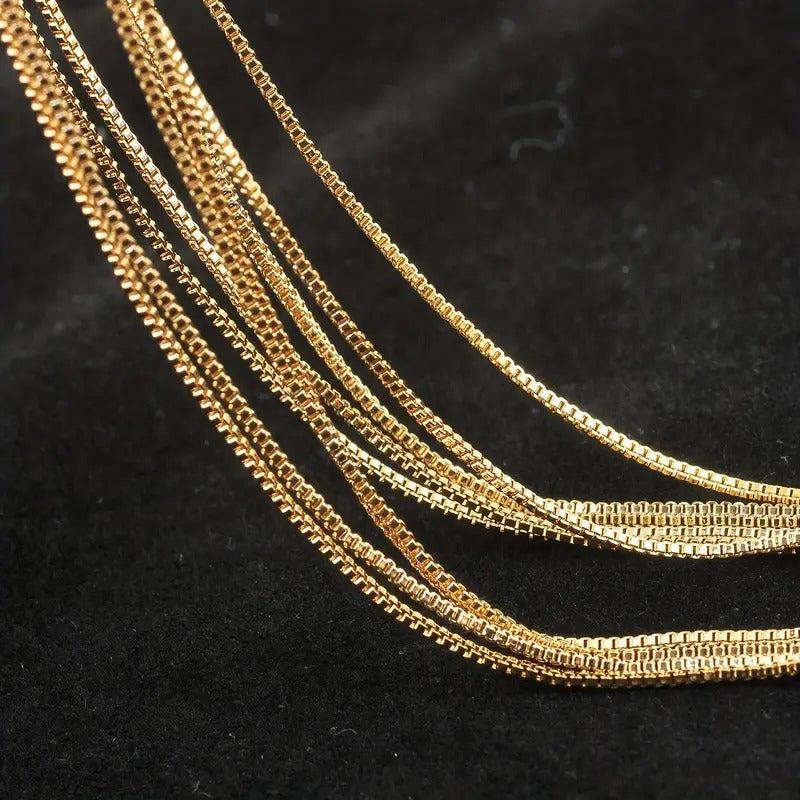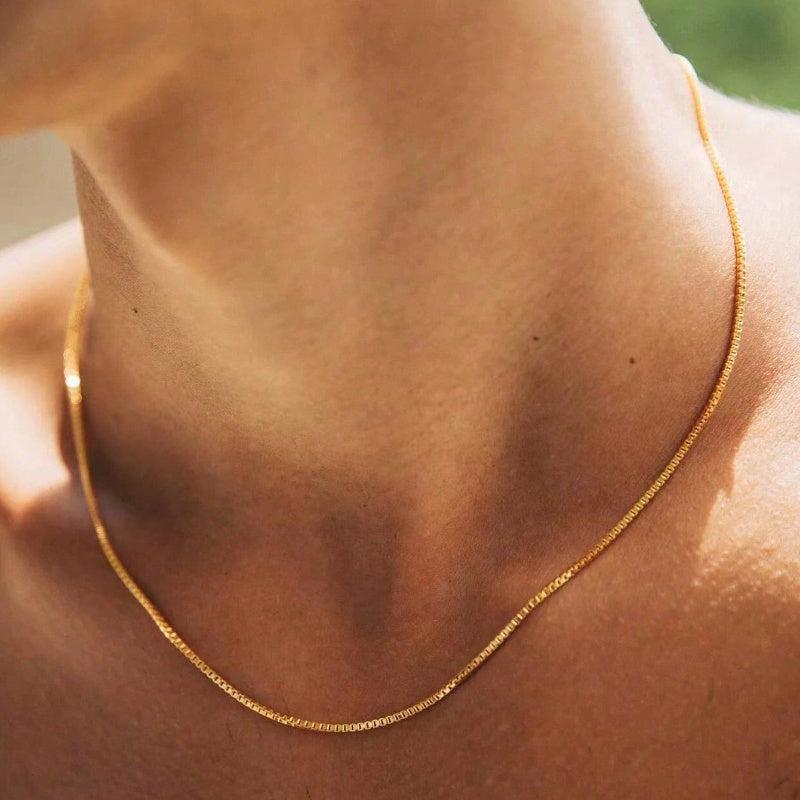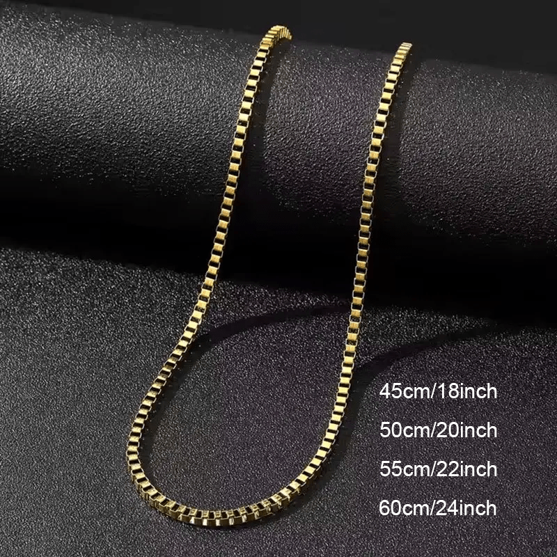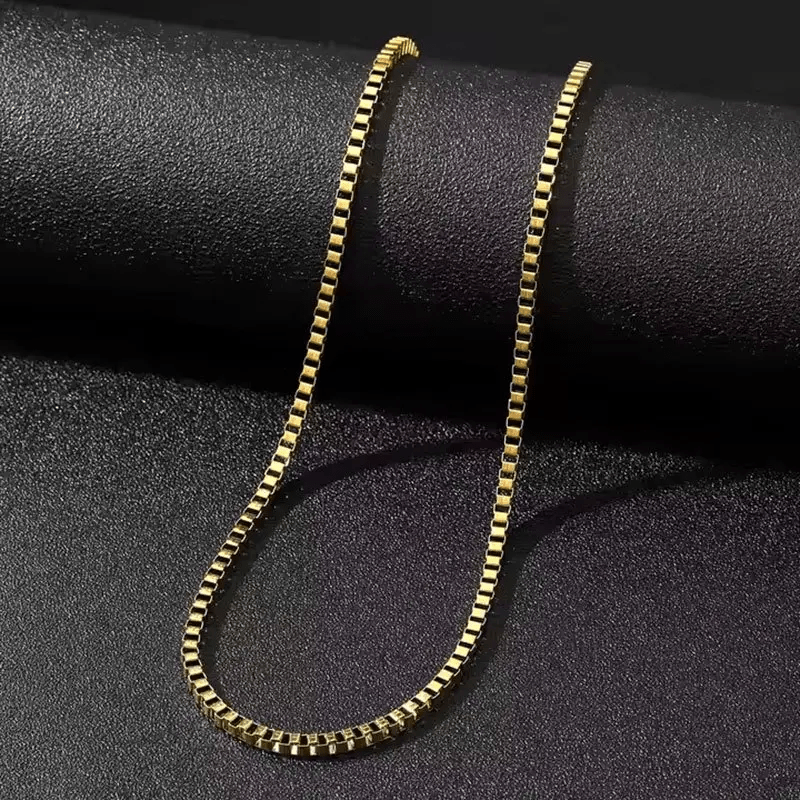 18K Gold Plated Stainless Steel 2mm Box Chain Necklace Y2K Hip Hop Minimalist Un